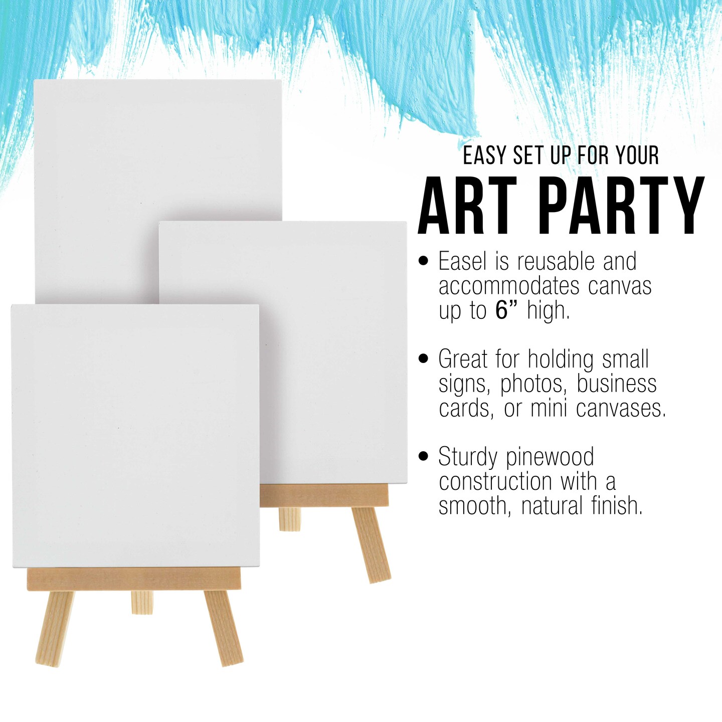 5" x 5" Stretched Canvas with 8" High Small Natural Wooden Easel (12 Pack), A-Frame Canvas Stand Tripod, Small Painting Easels - Tabletop Easel for Painting, Canvases, Student Crafts