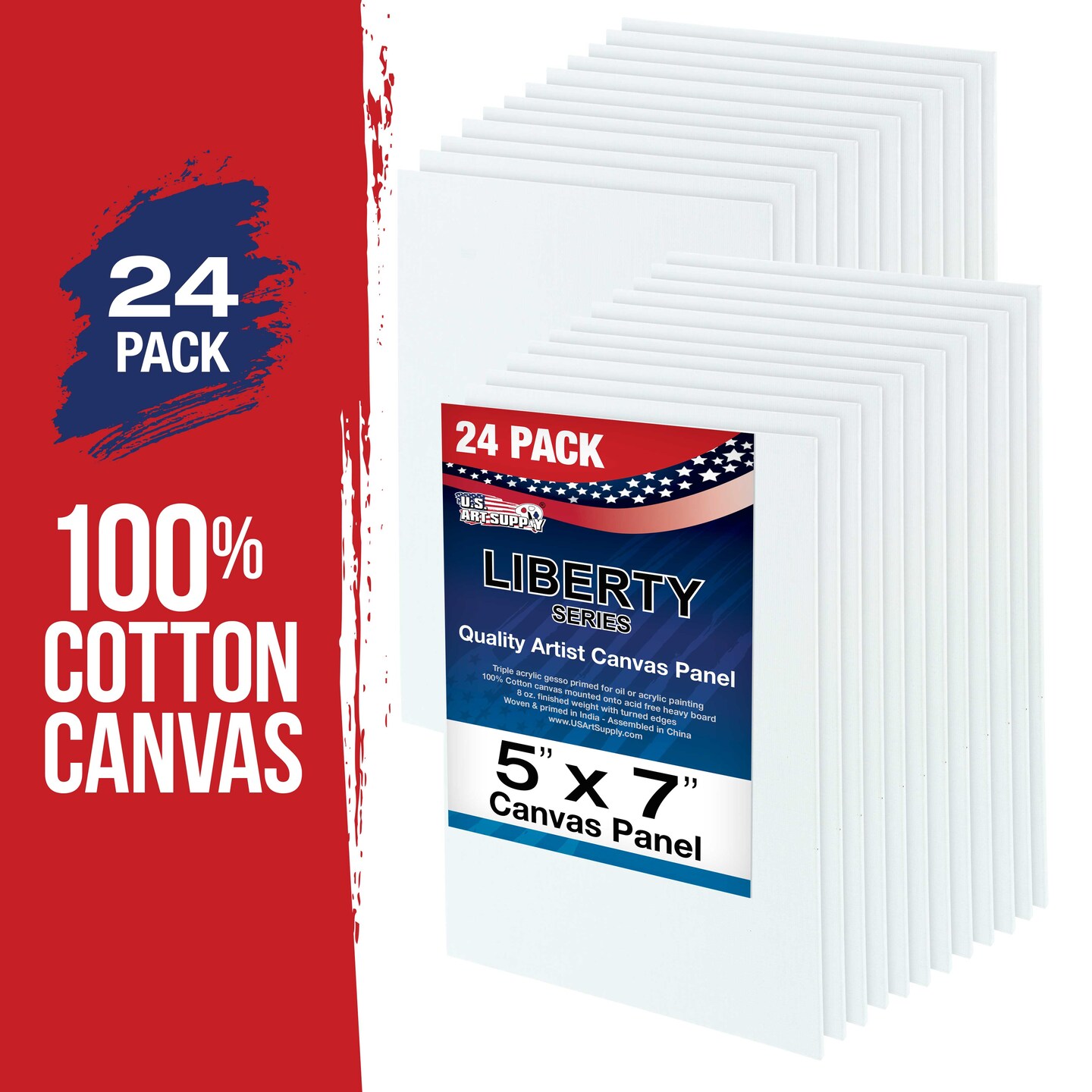 5 X 7 Inch Professional Art Canvas Board Panels 24 Pack - 8 Ounce Heavyweight Cotton Acid Free Canvases for Painting Acrylics and Watercolor (1 Case of 24 Single Canvas Painting Panels)