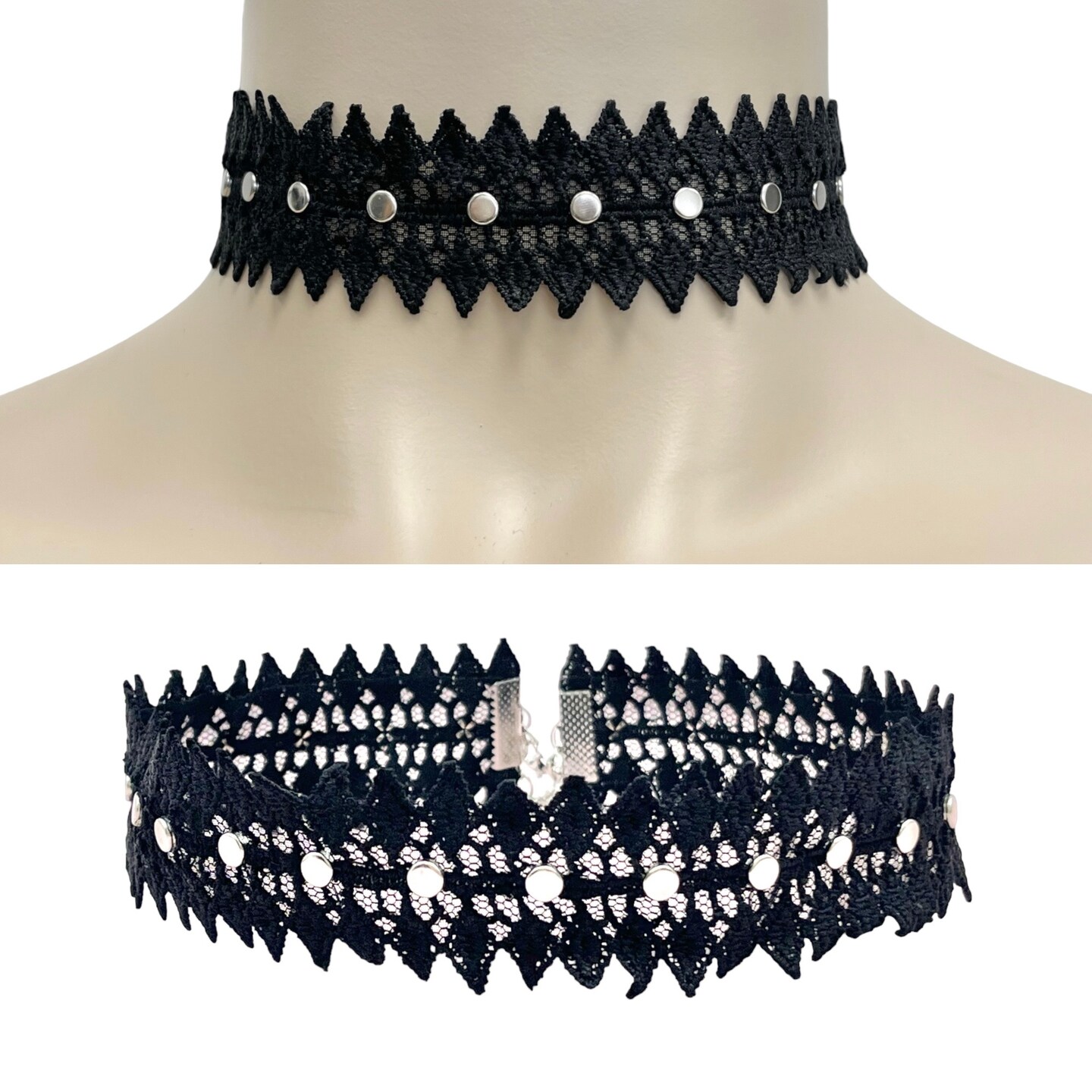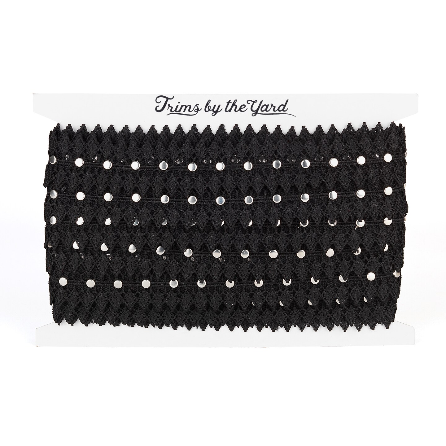 5 Yards of Annalise Lace Trim Embellished With 3MM Round Silver Studs | 5 yard cut