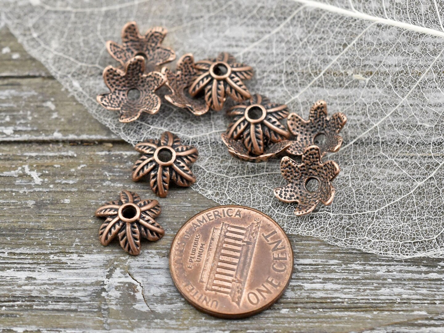 *50* 10mm Antique Copper Leaf Bead Caps