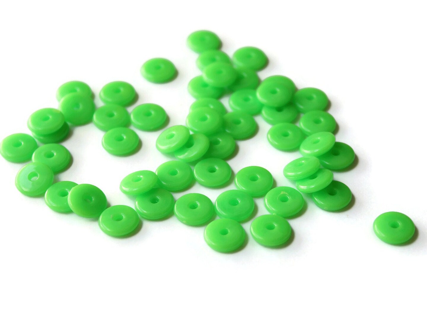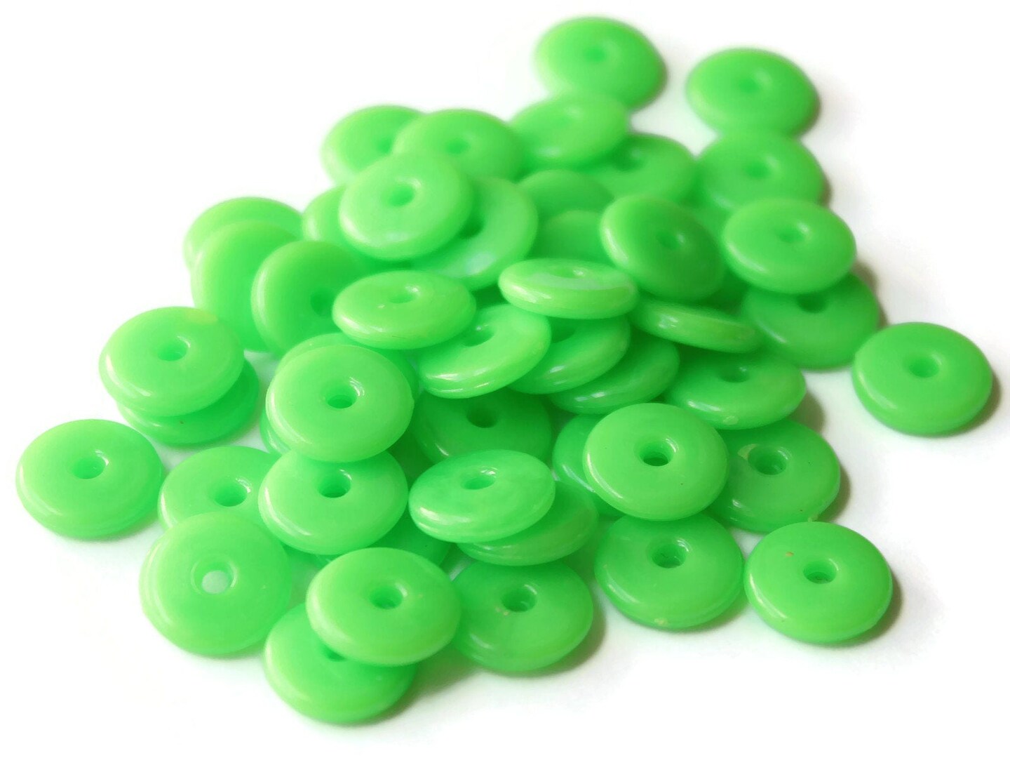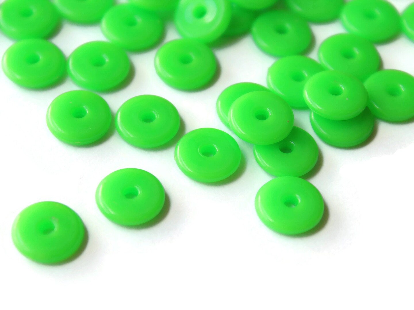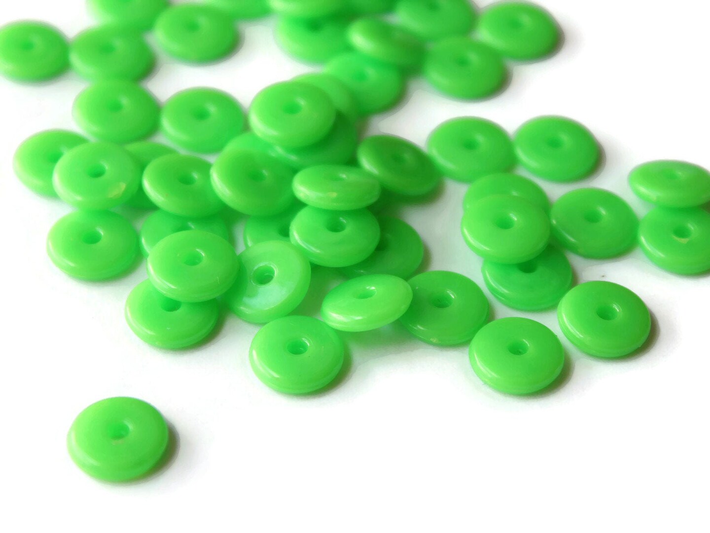 50 10mm Green Disc Beads, Vintage Plastic Flat Round Beads