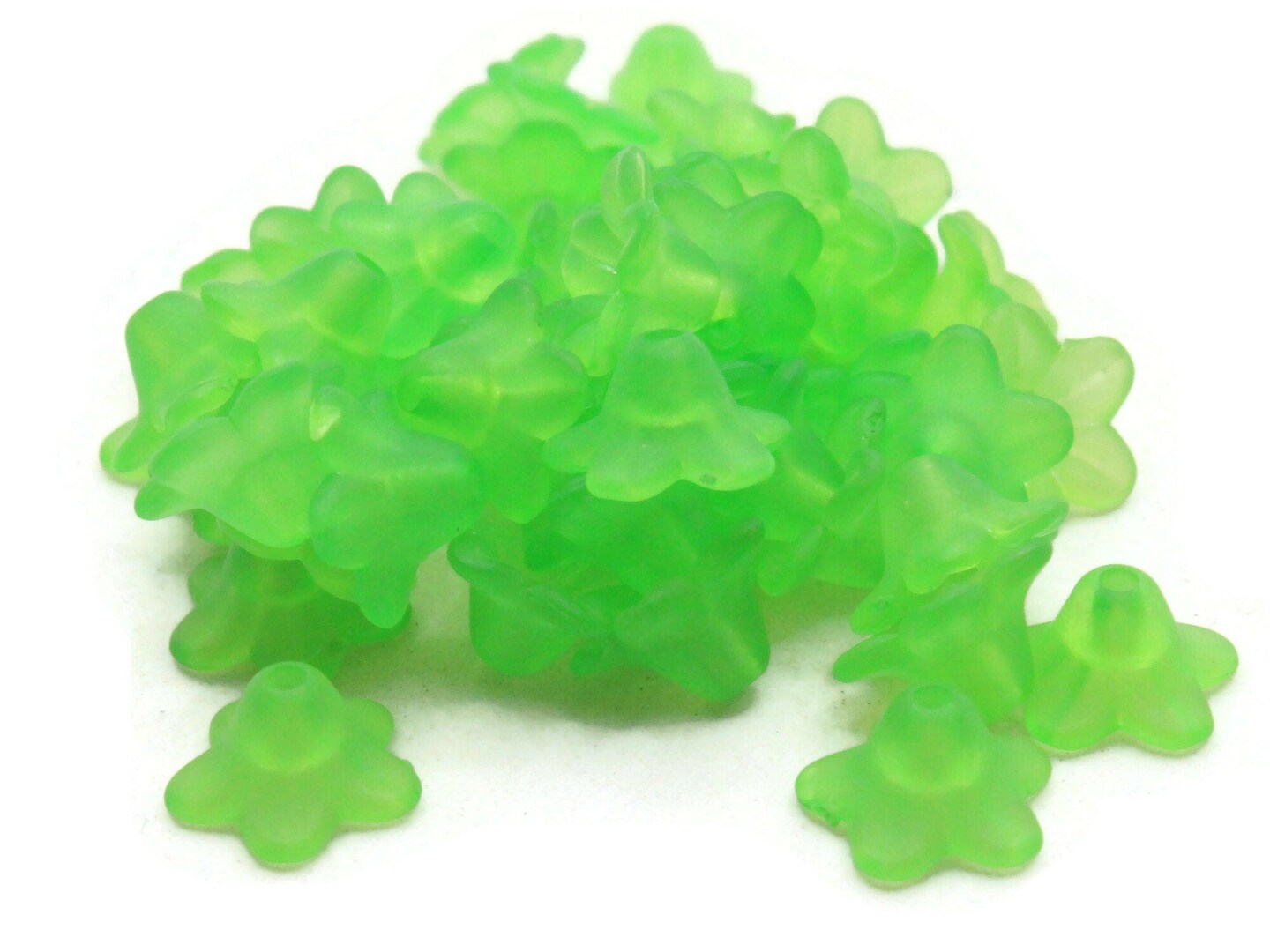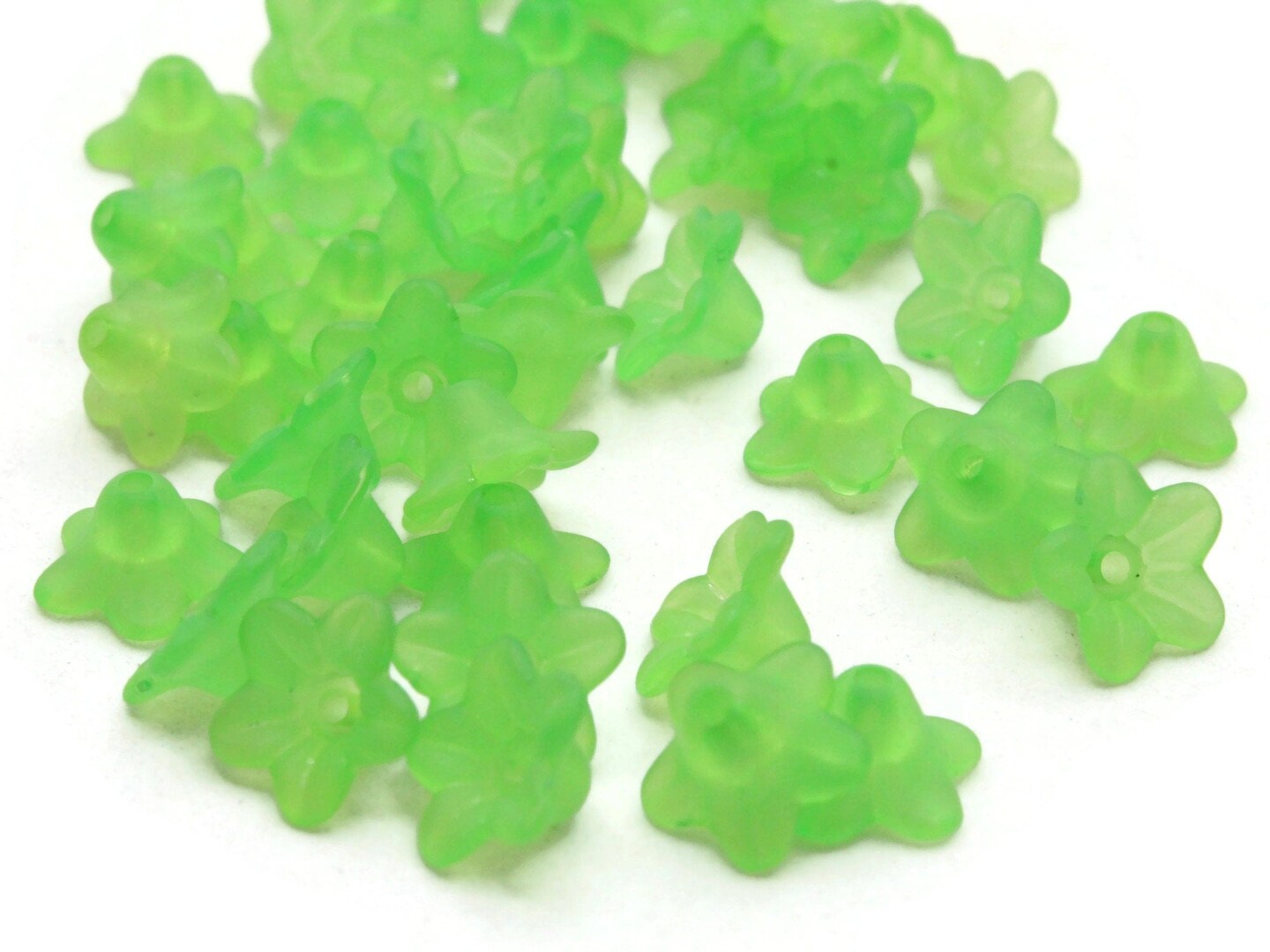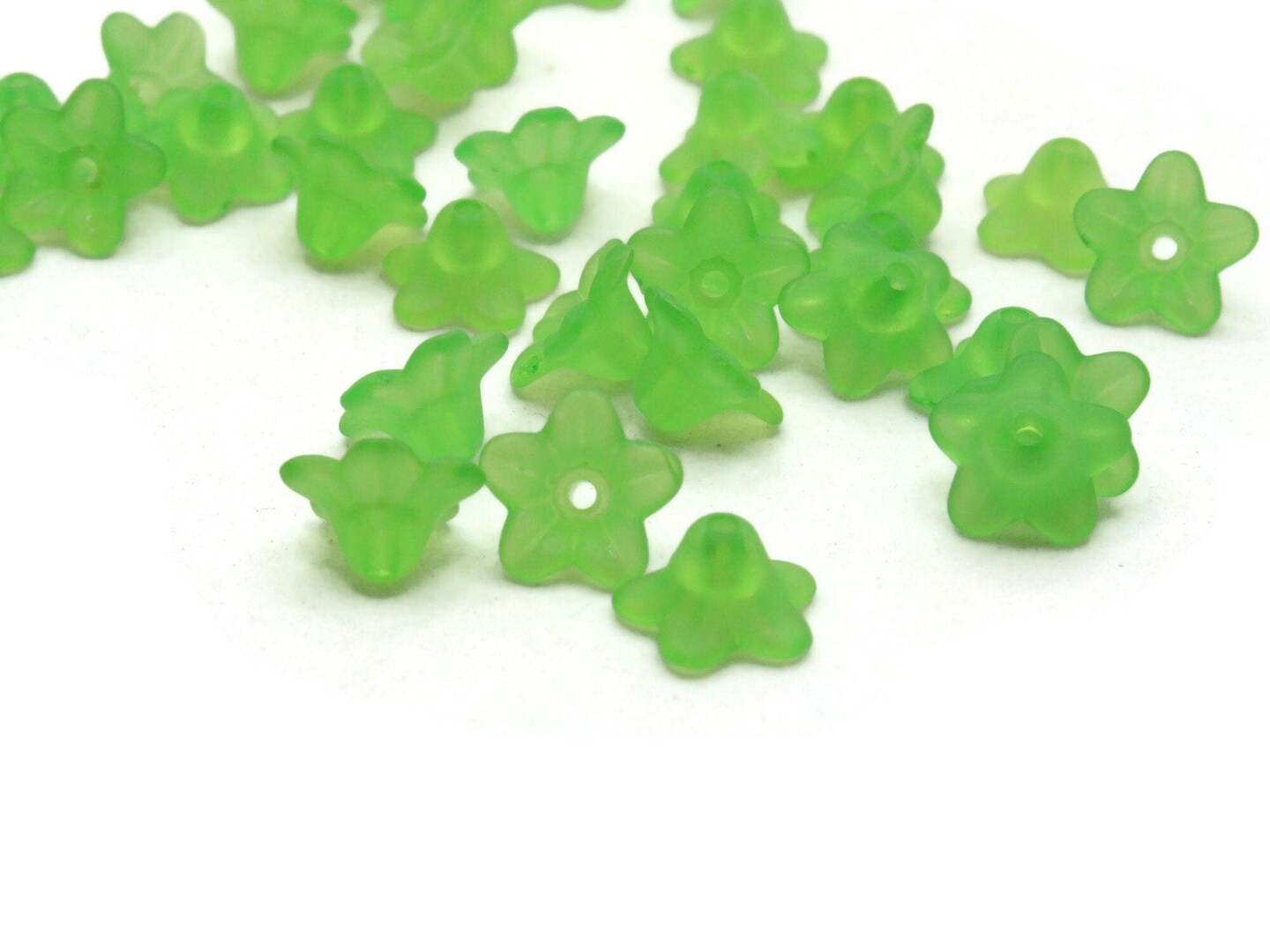 50 10mm Small Green Flower Lily Translucent Acrylic Beads