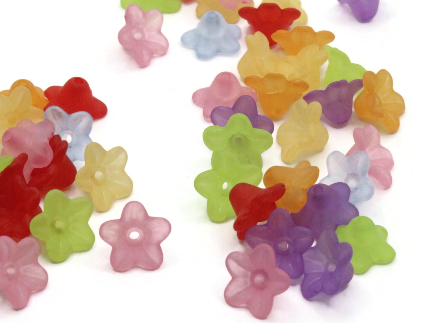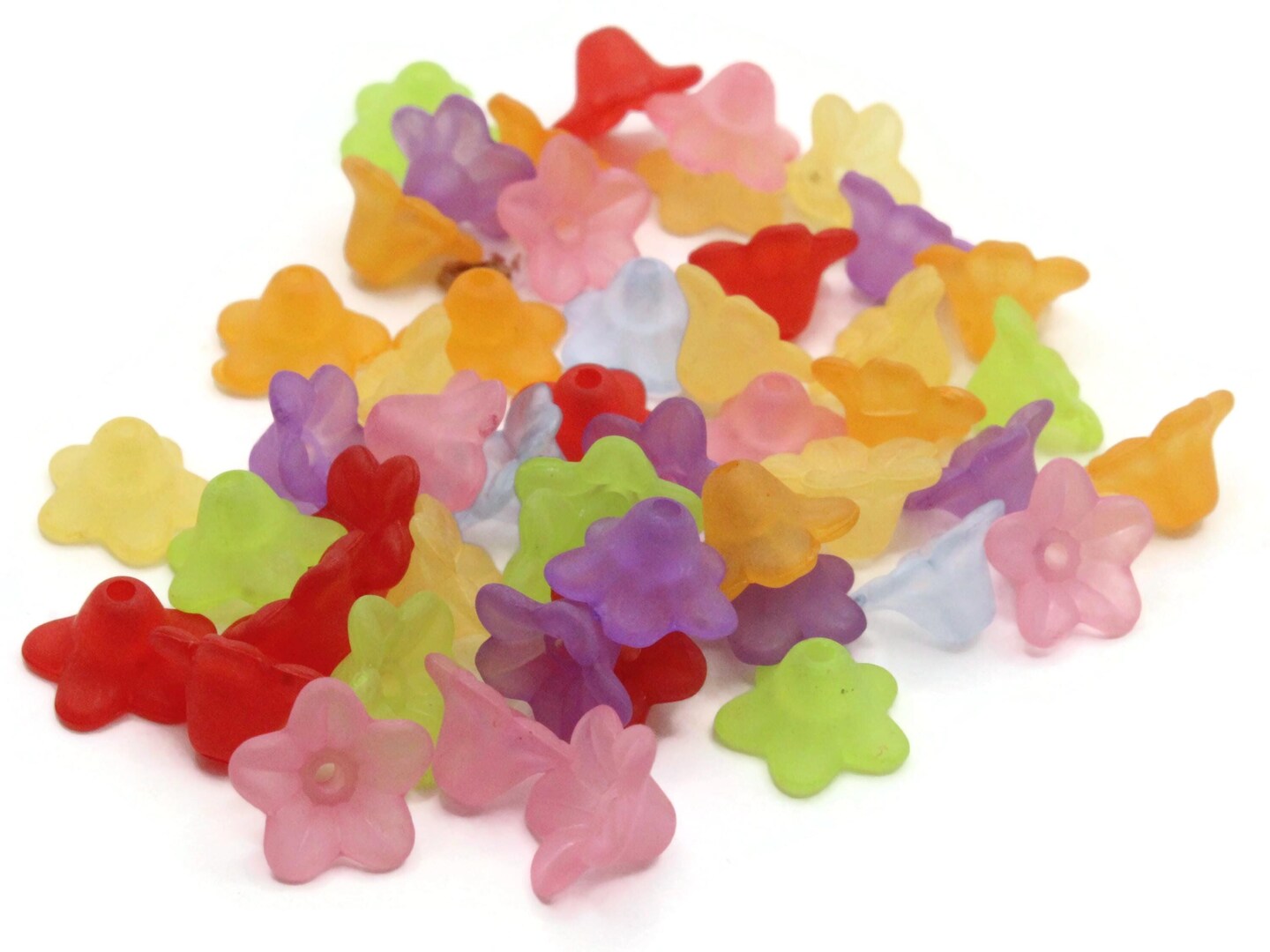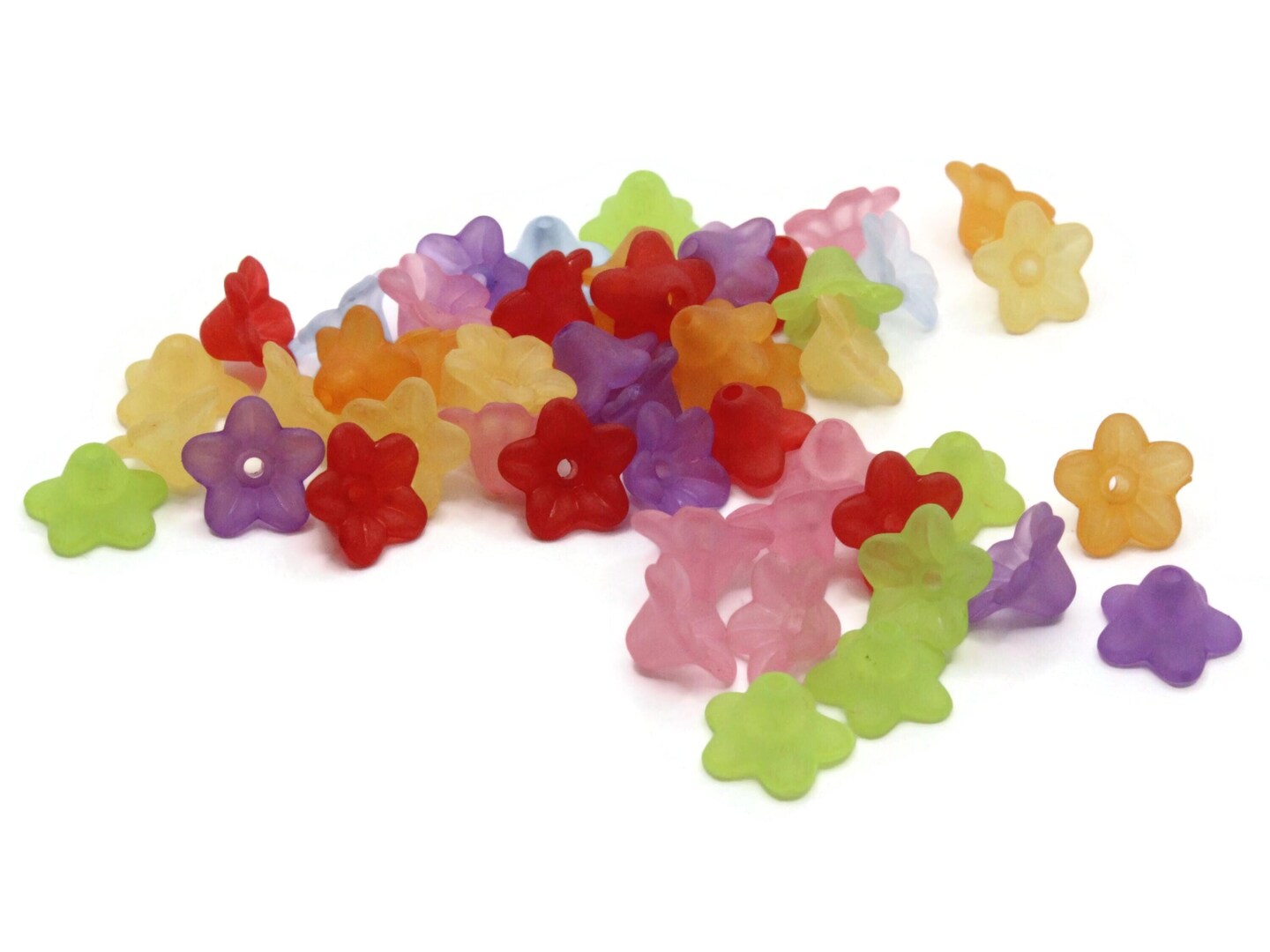 50 10mm Small Mixed Color Lily Flower Lucite Plastic Beads