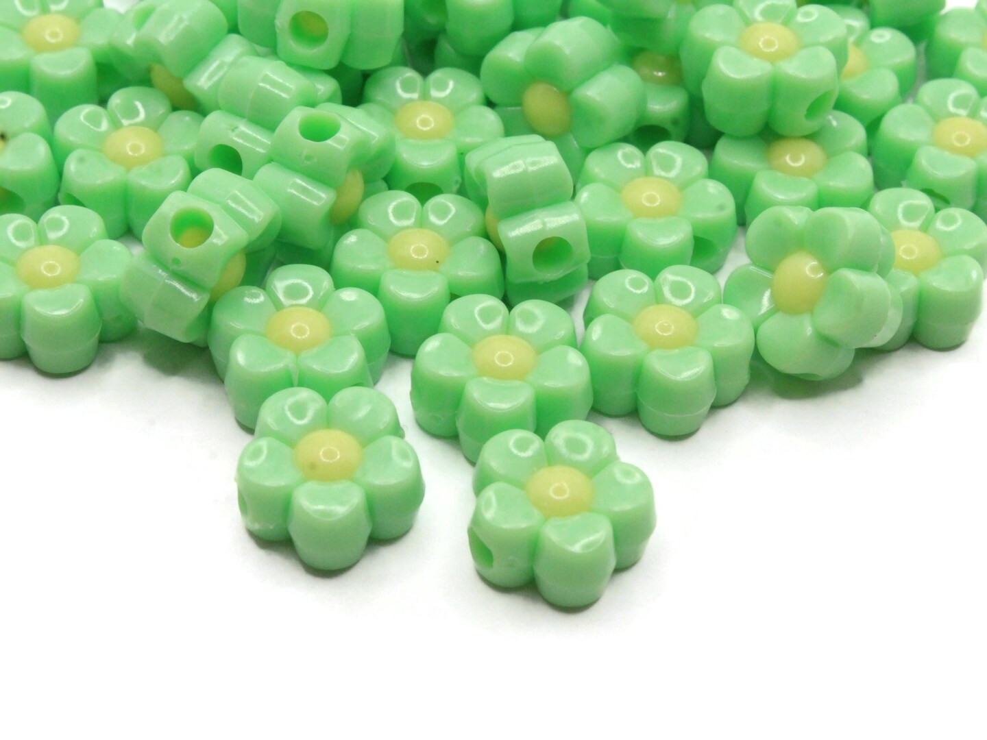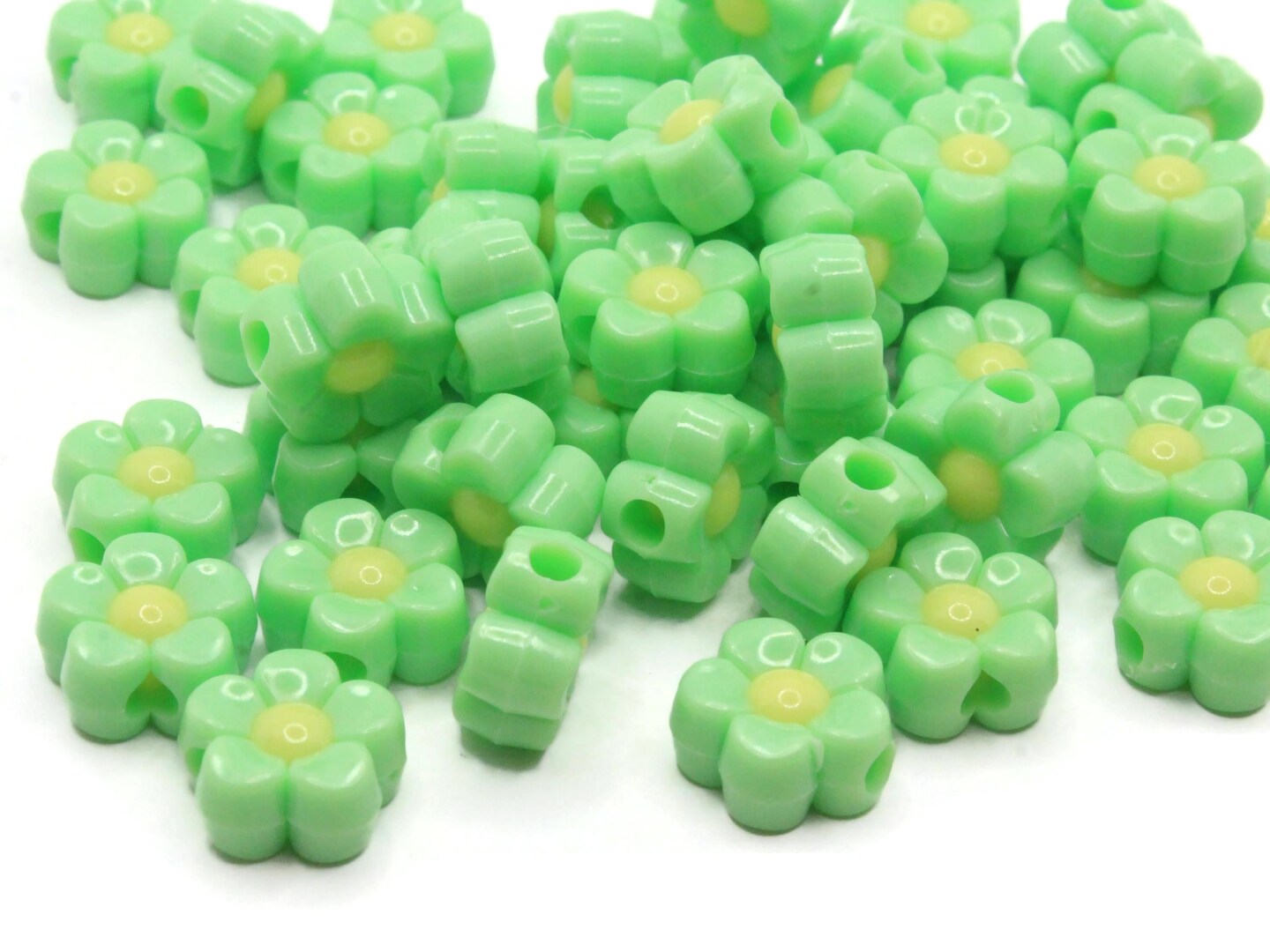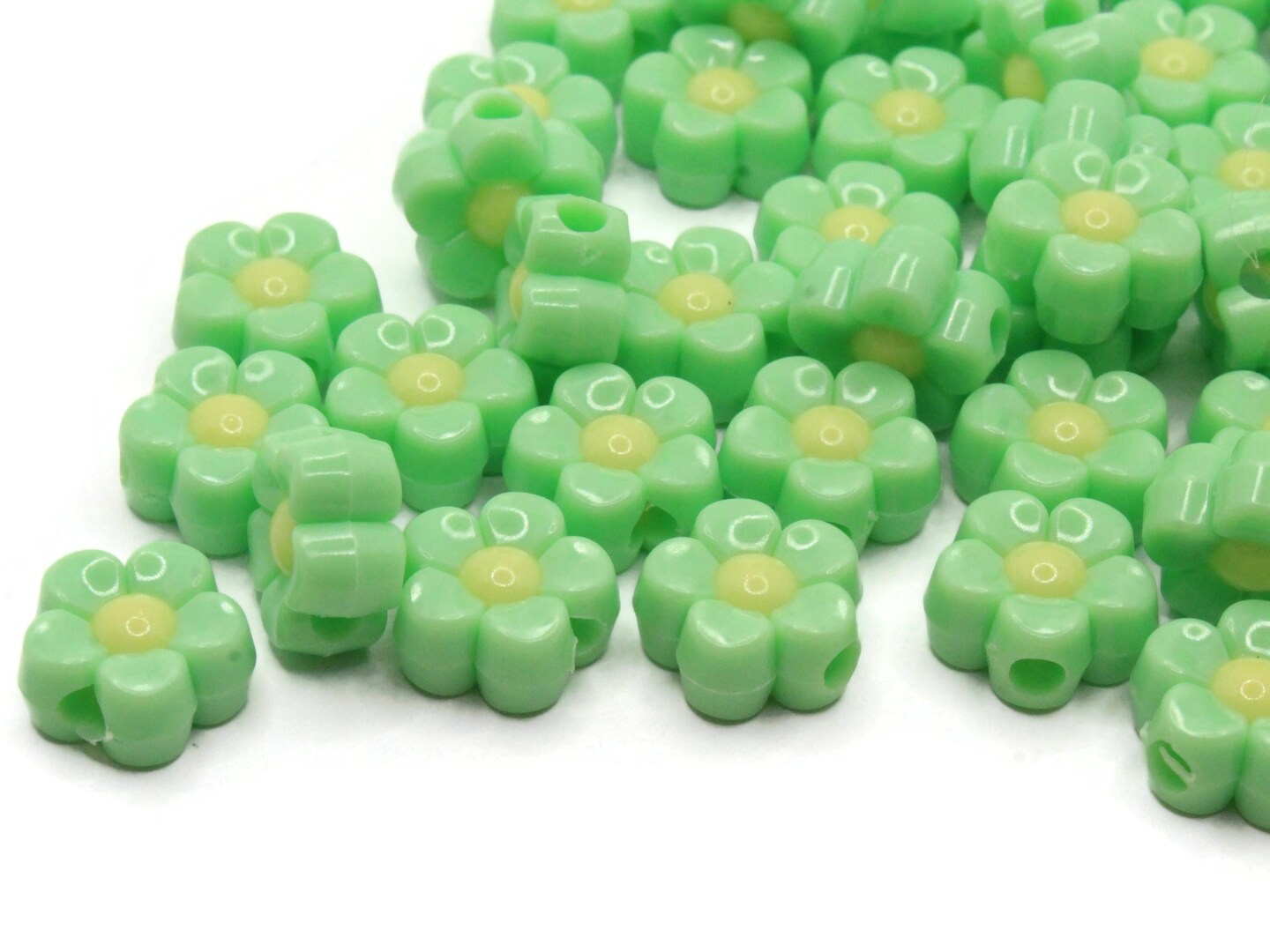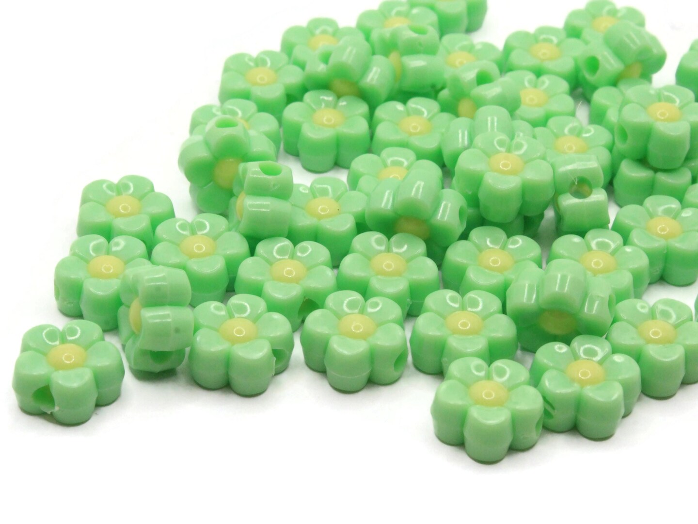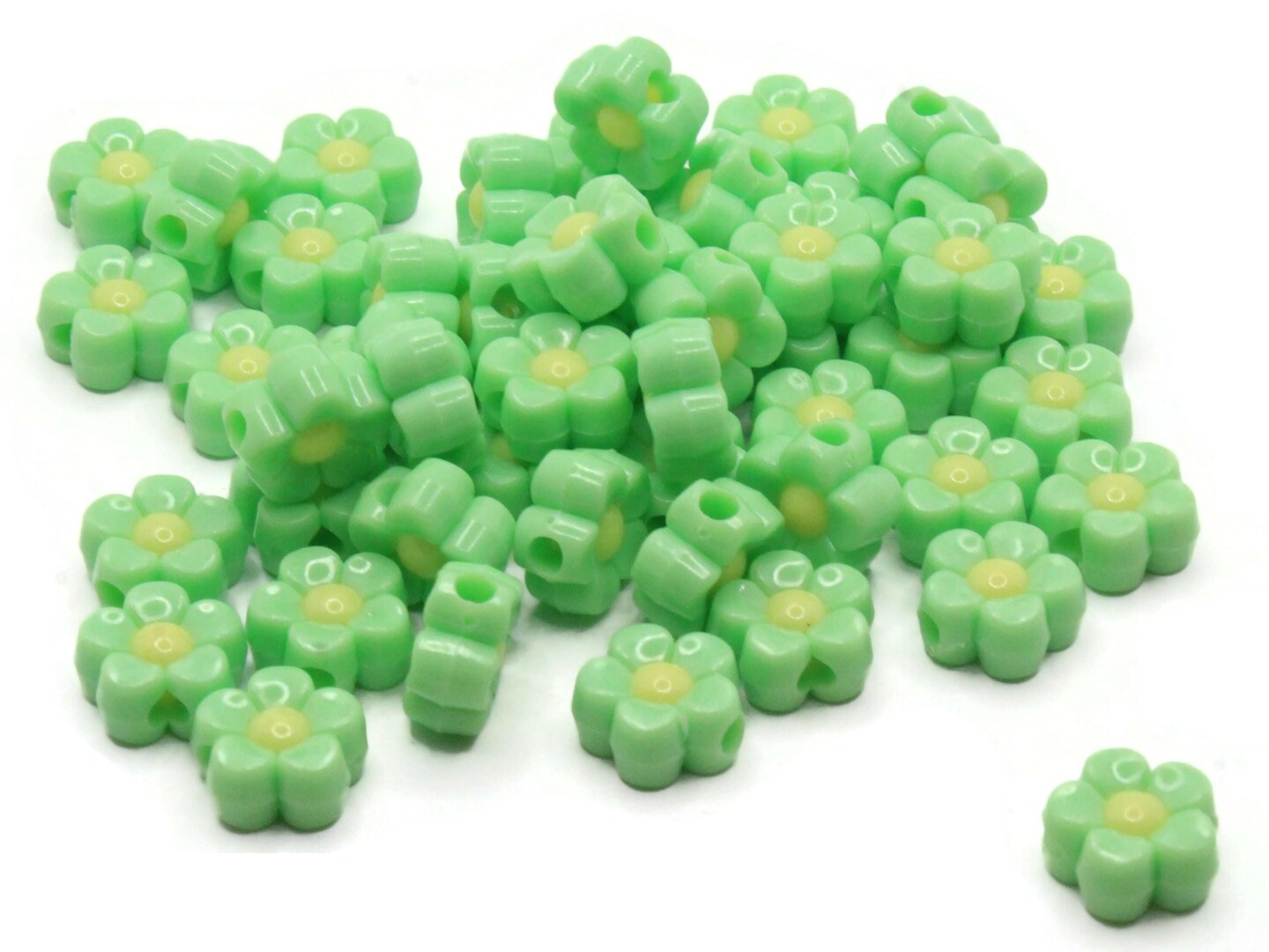 50 11mm Green and Yellow Two-Tone Daisy Flower Plastic Beads