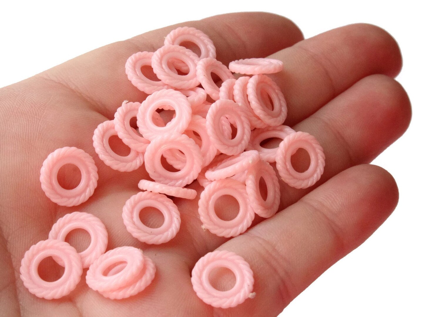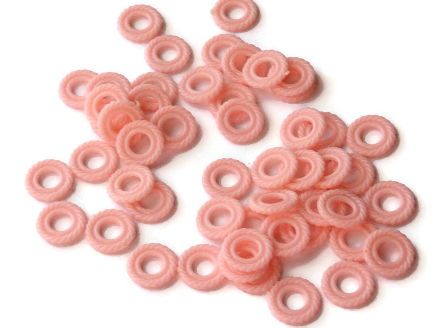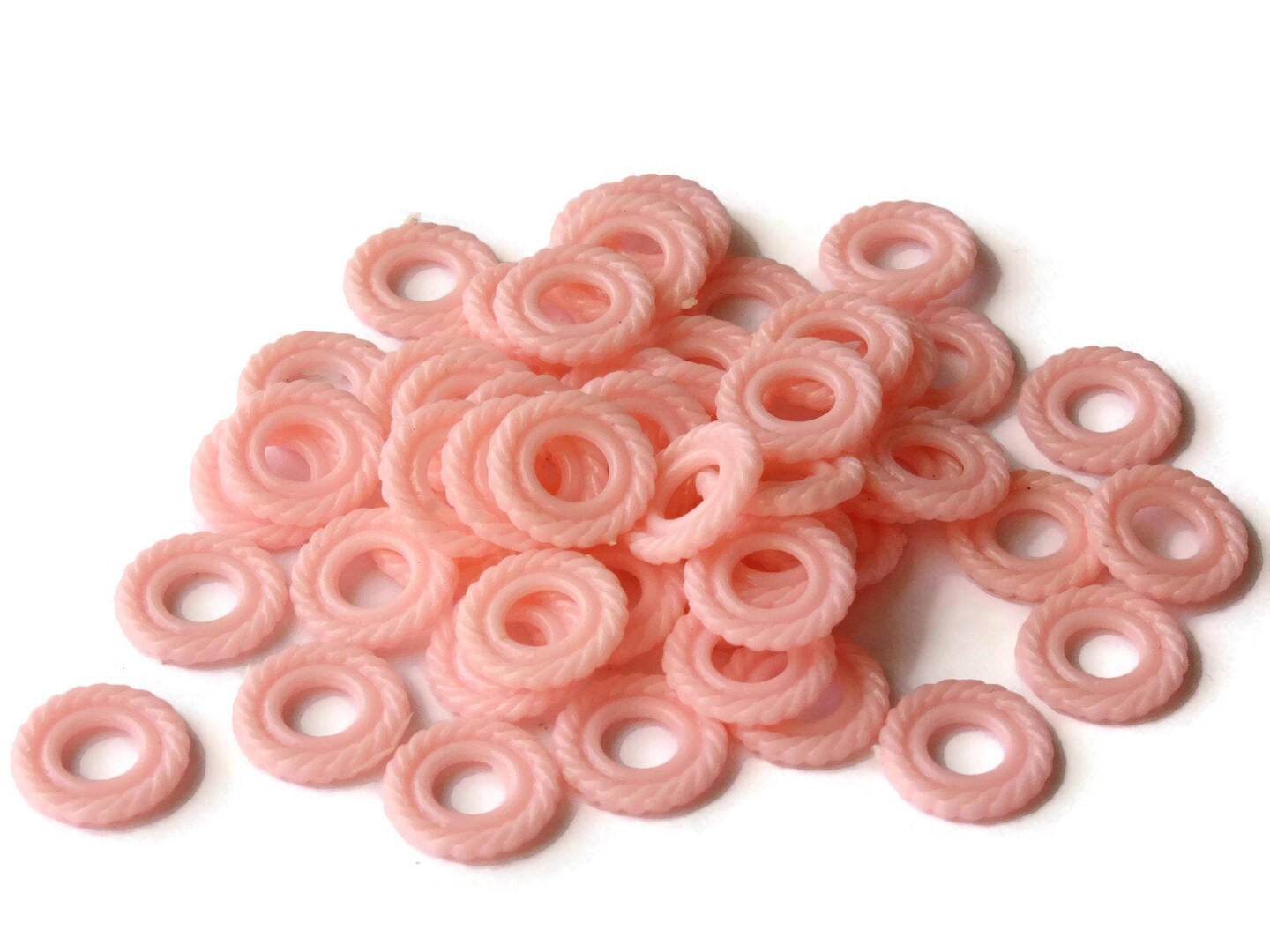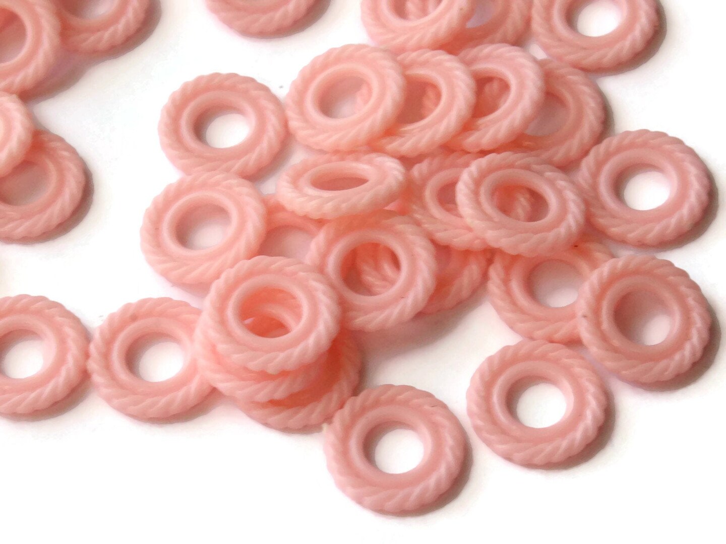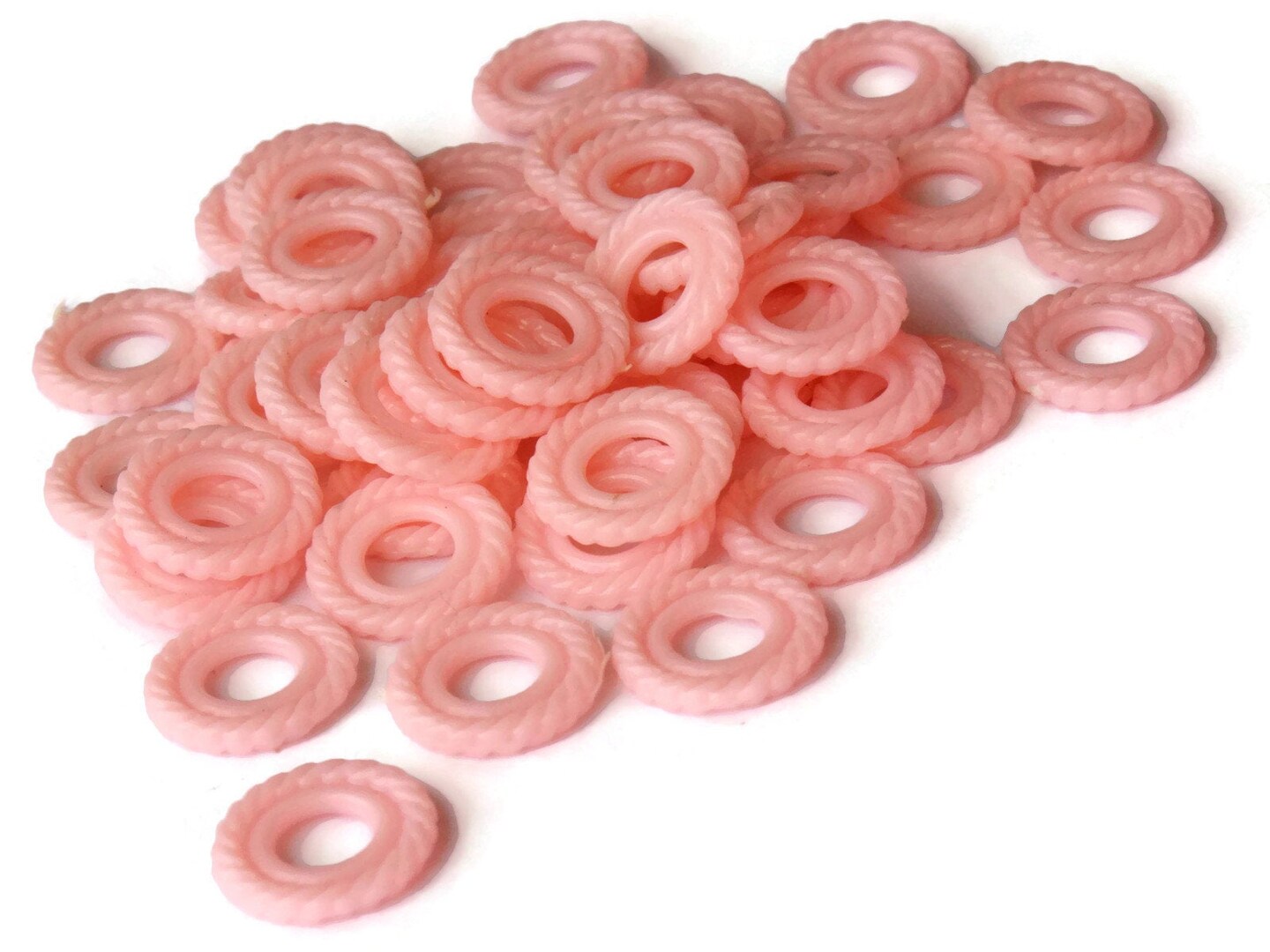 50 11mm Pastel Pink Ring Beads Vintage Plastic Links