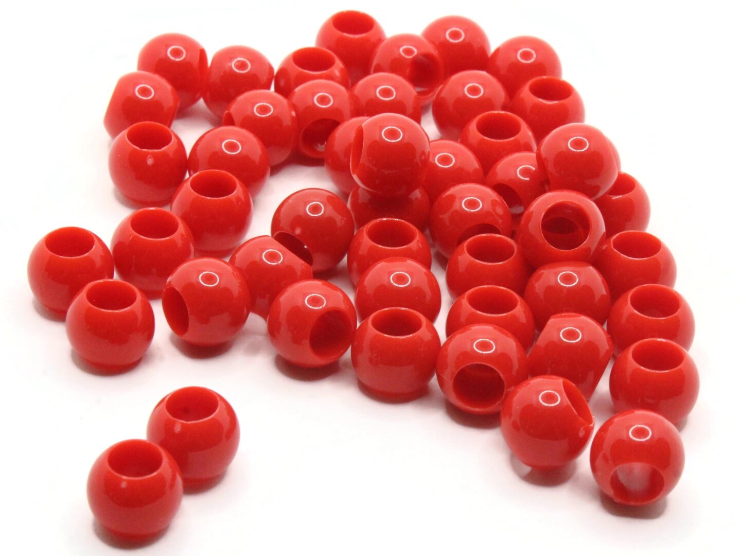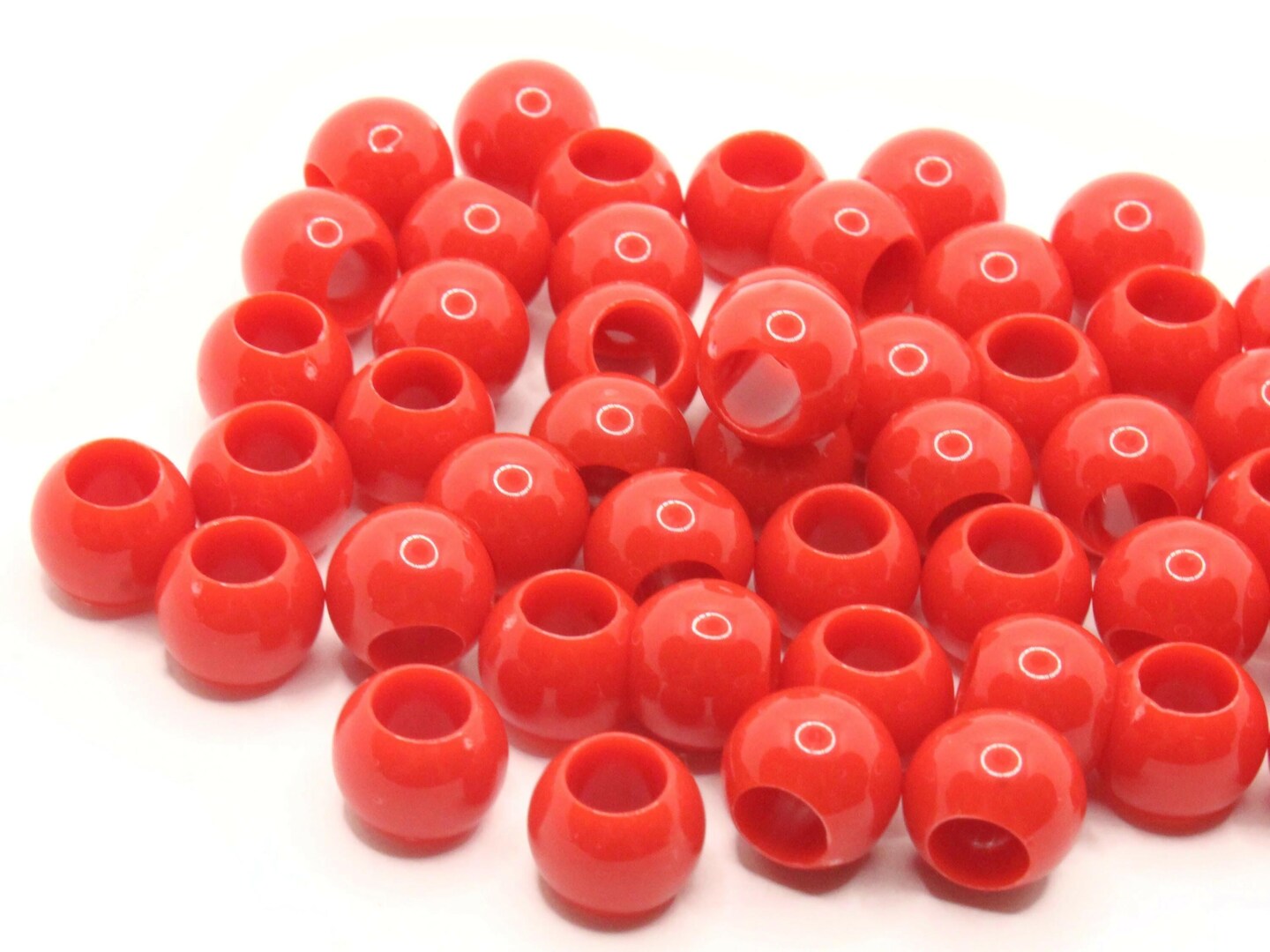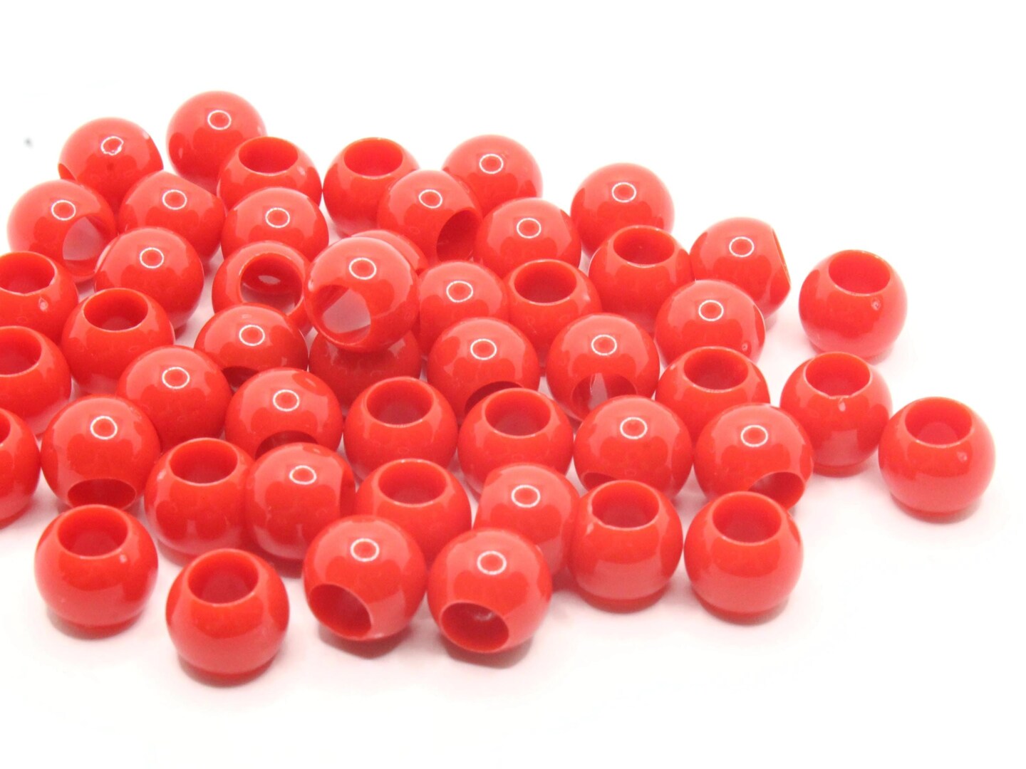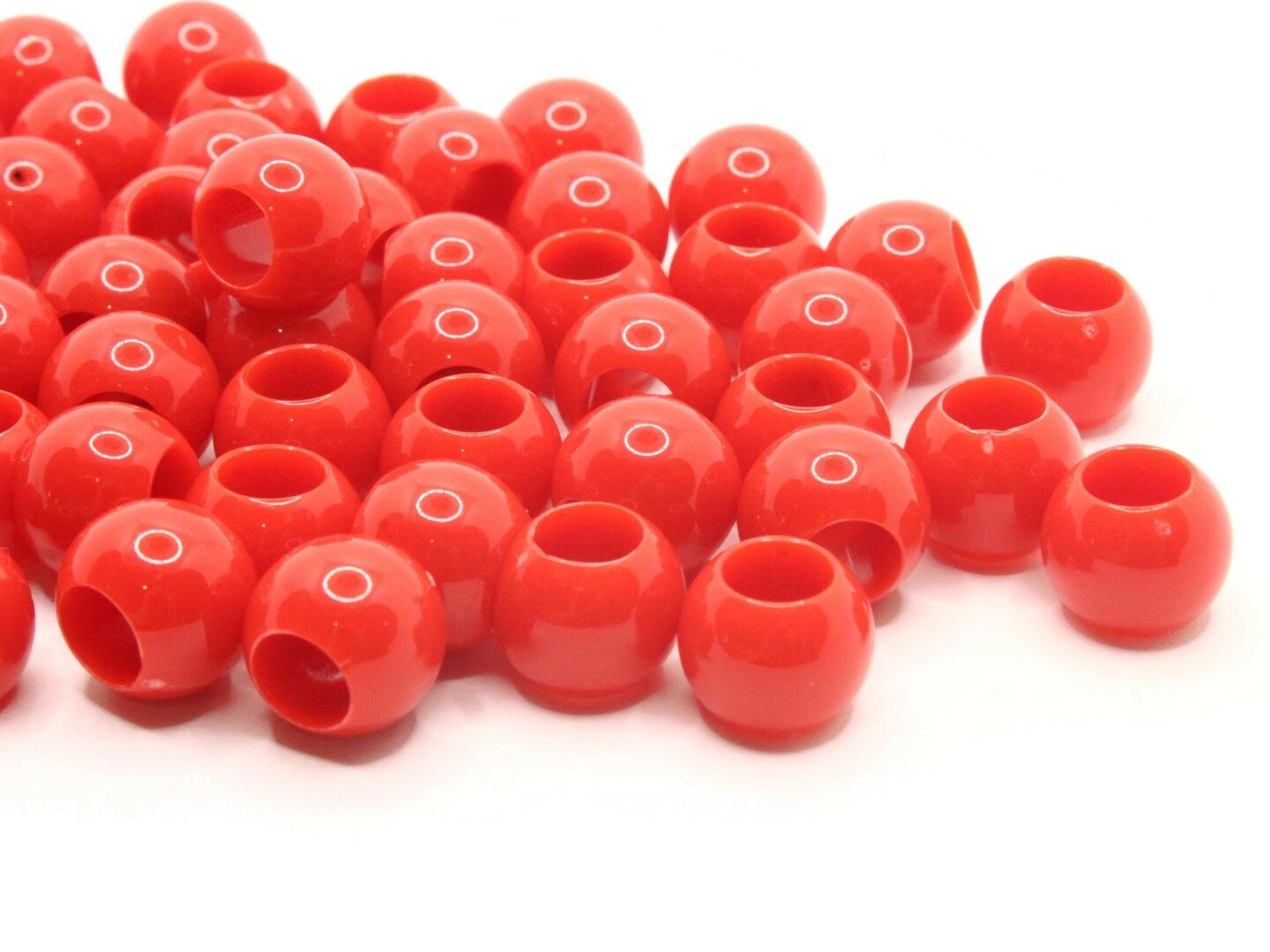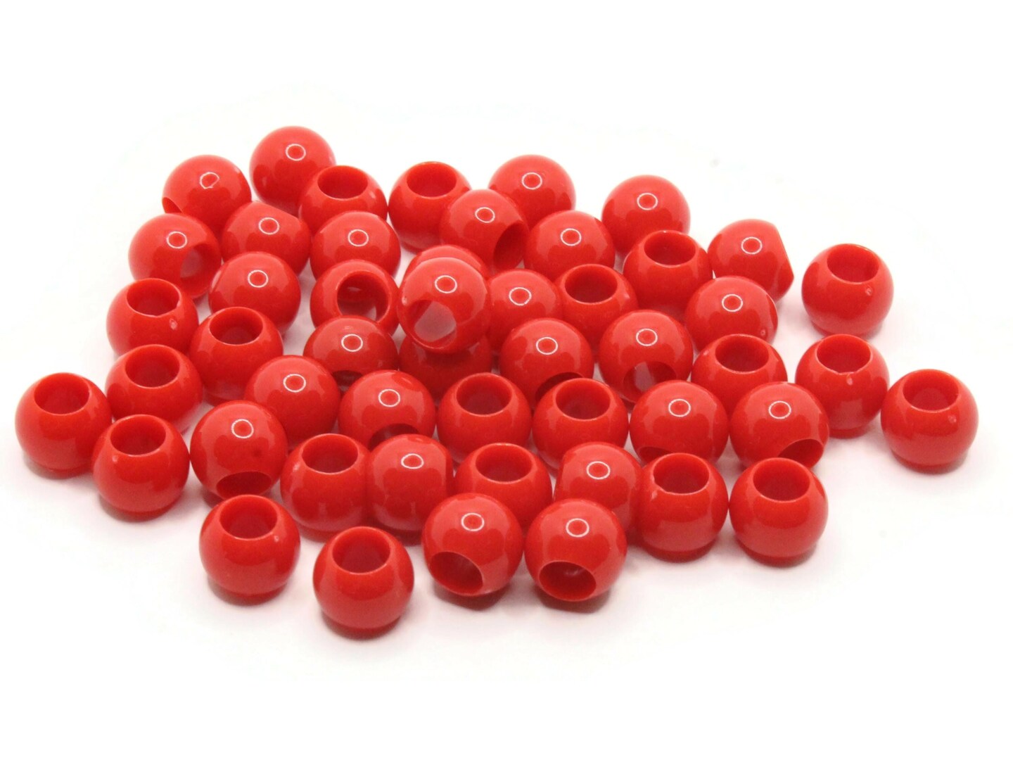 50 11mm Red Large Hole Round Plastic Beads