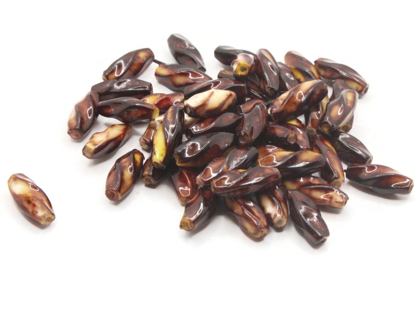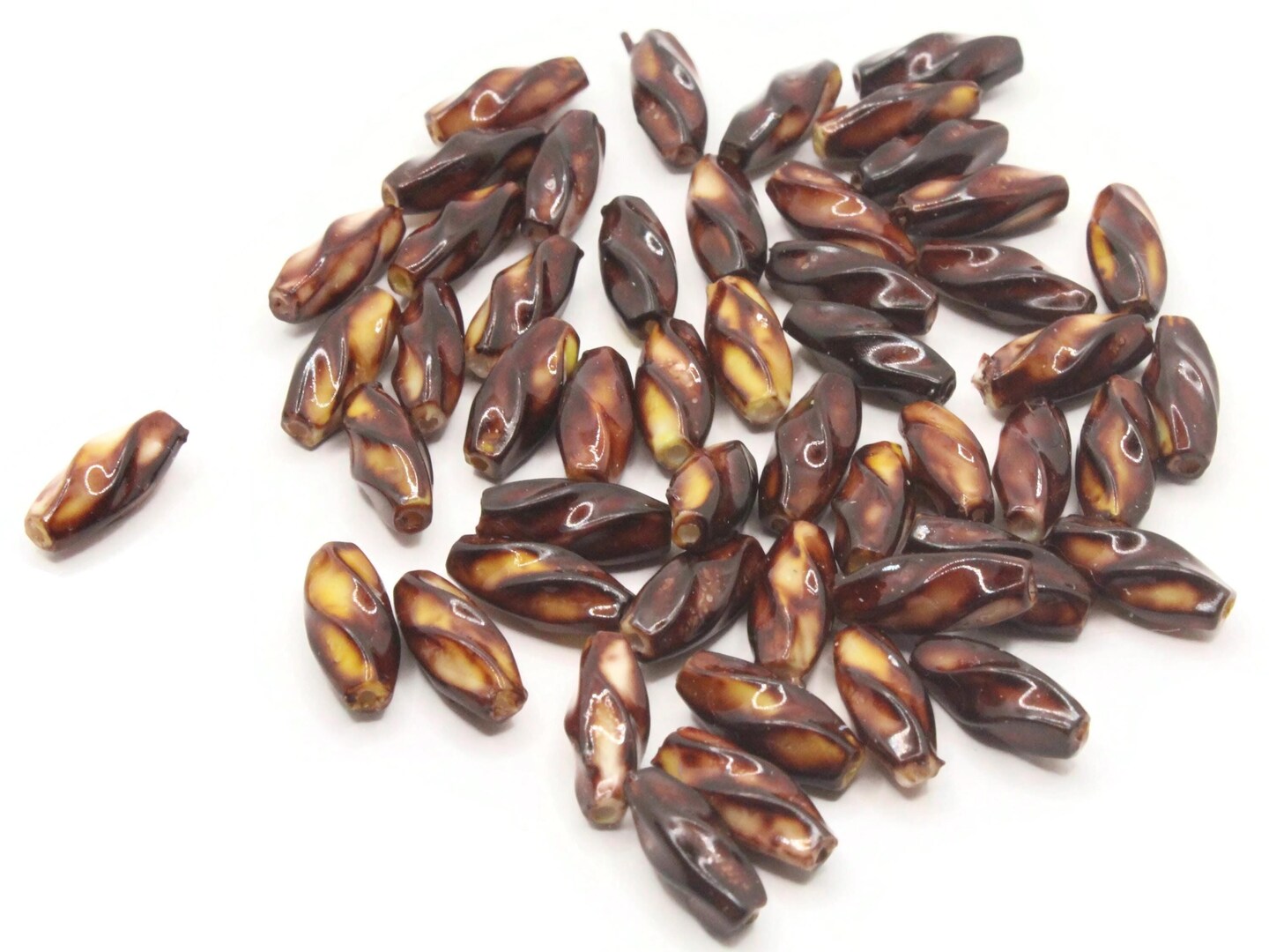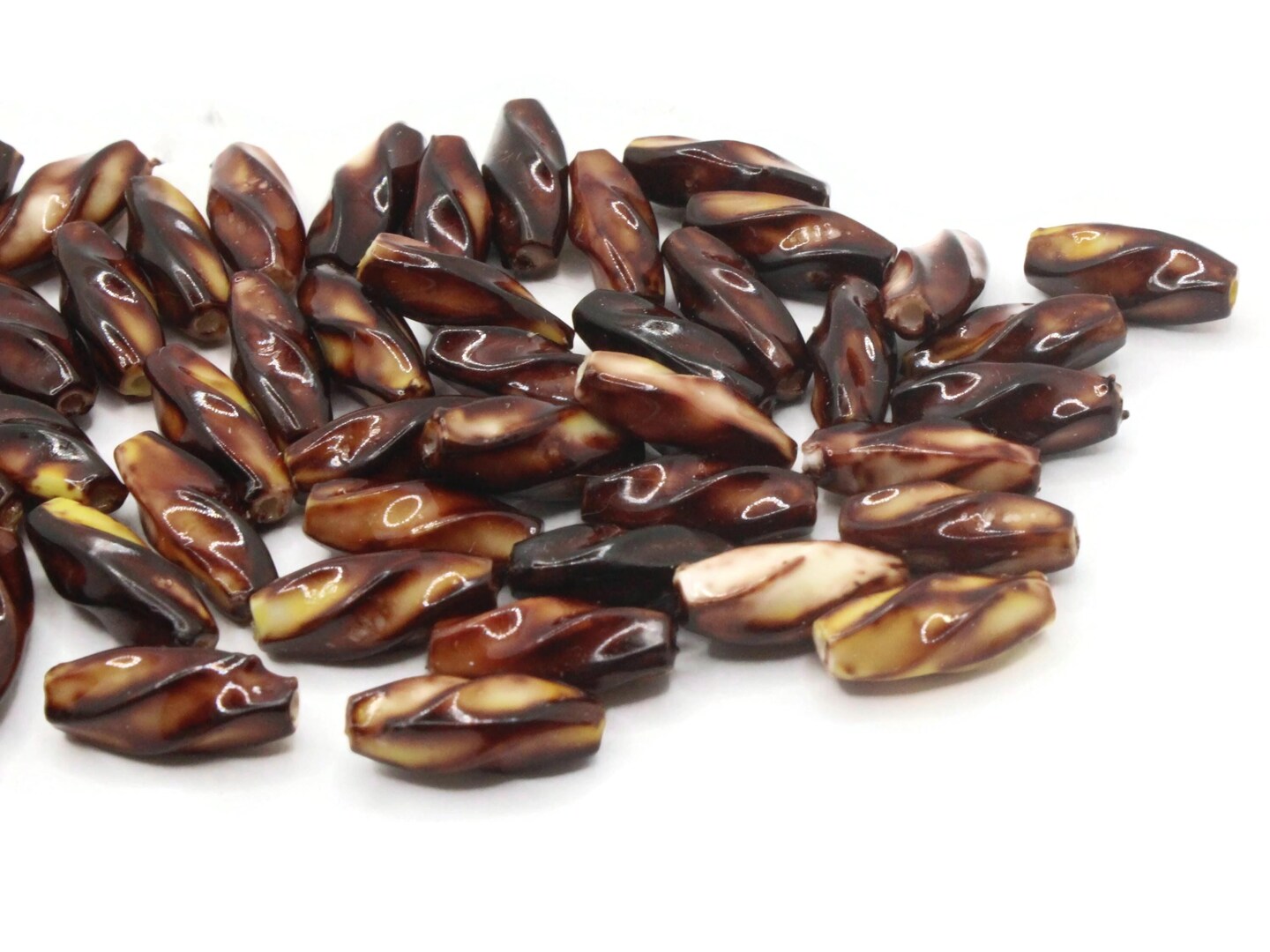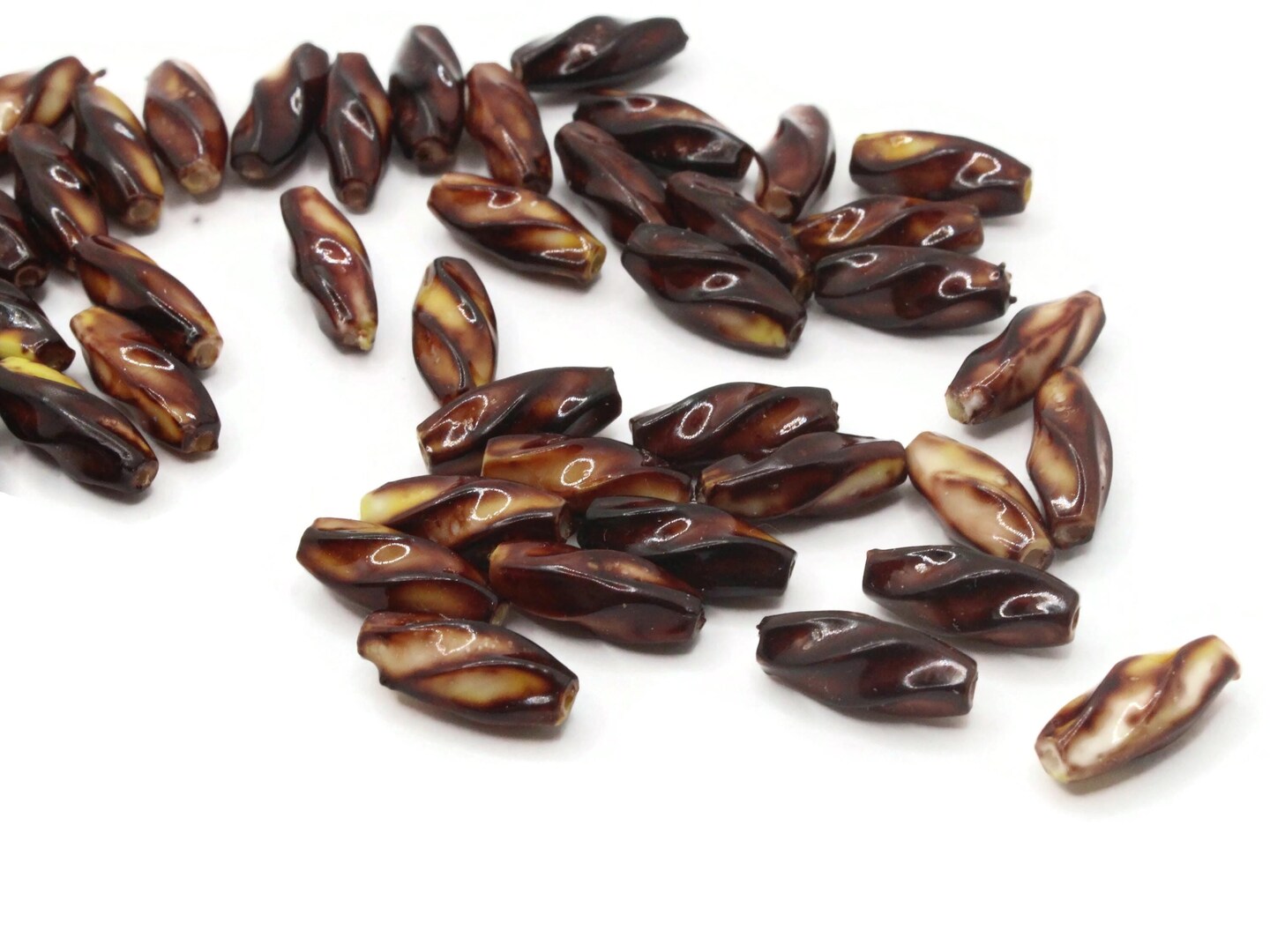 50 12mm Brown Vintage Plastic Twisted Tube Beads