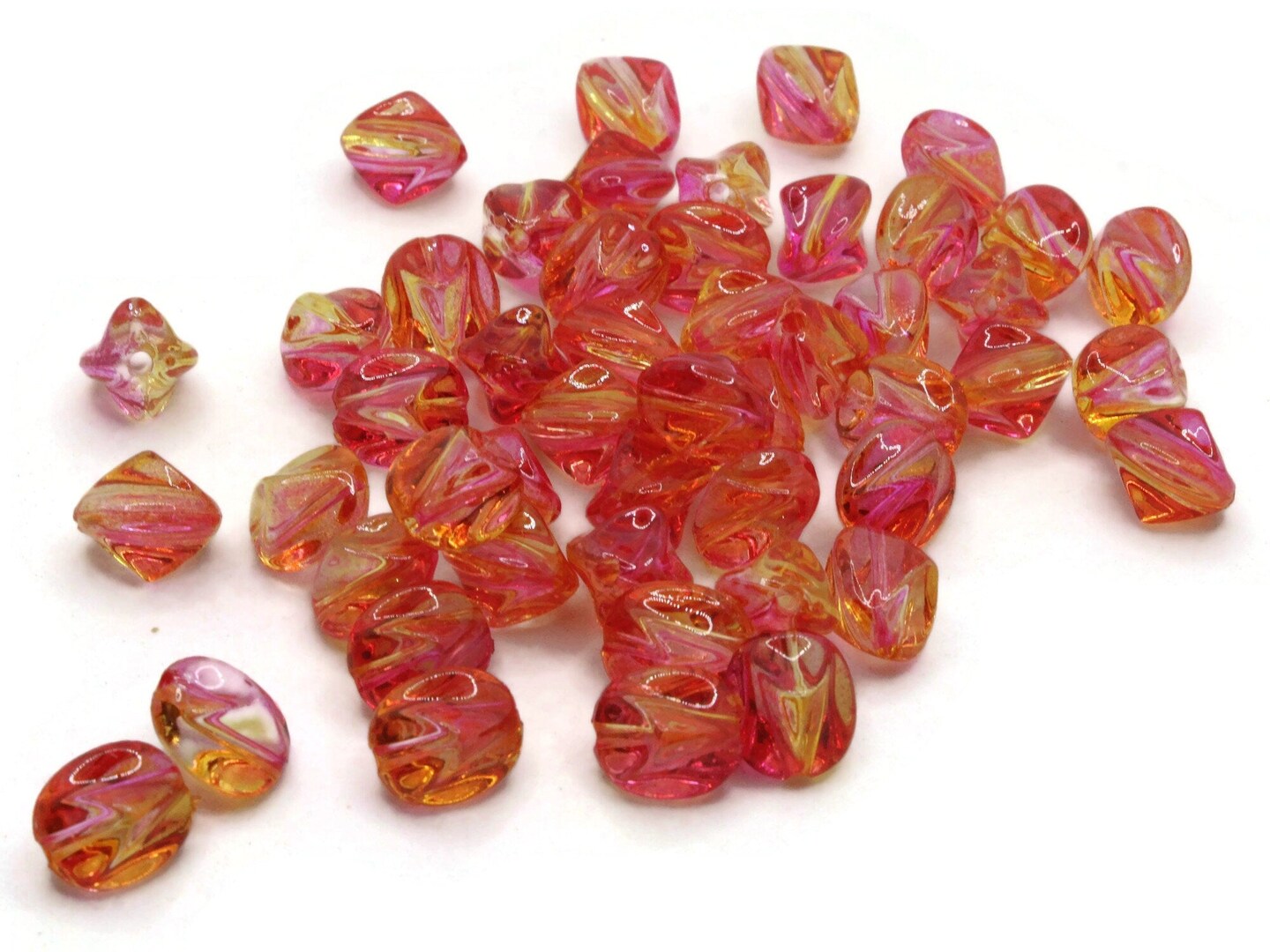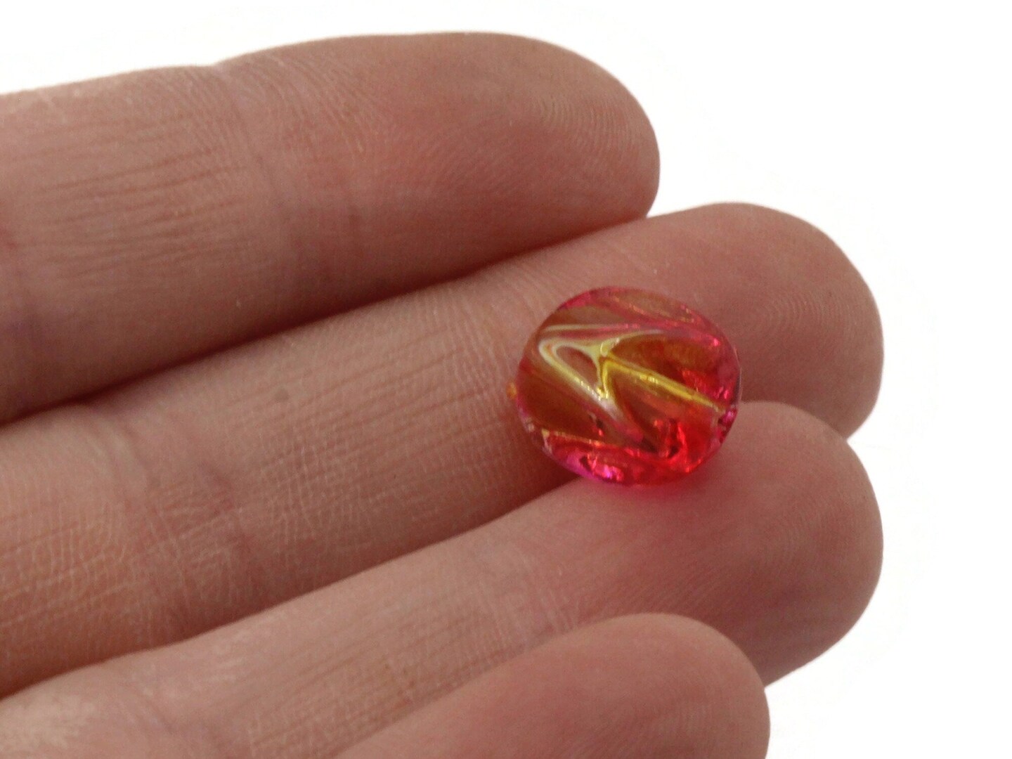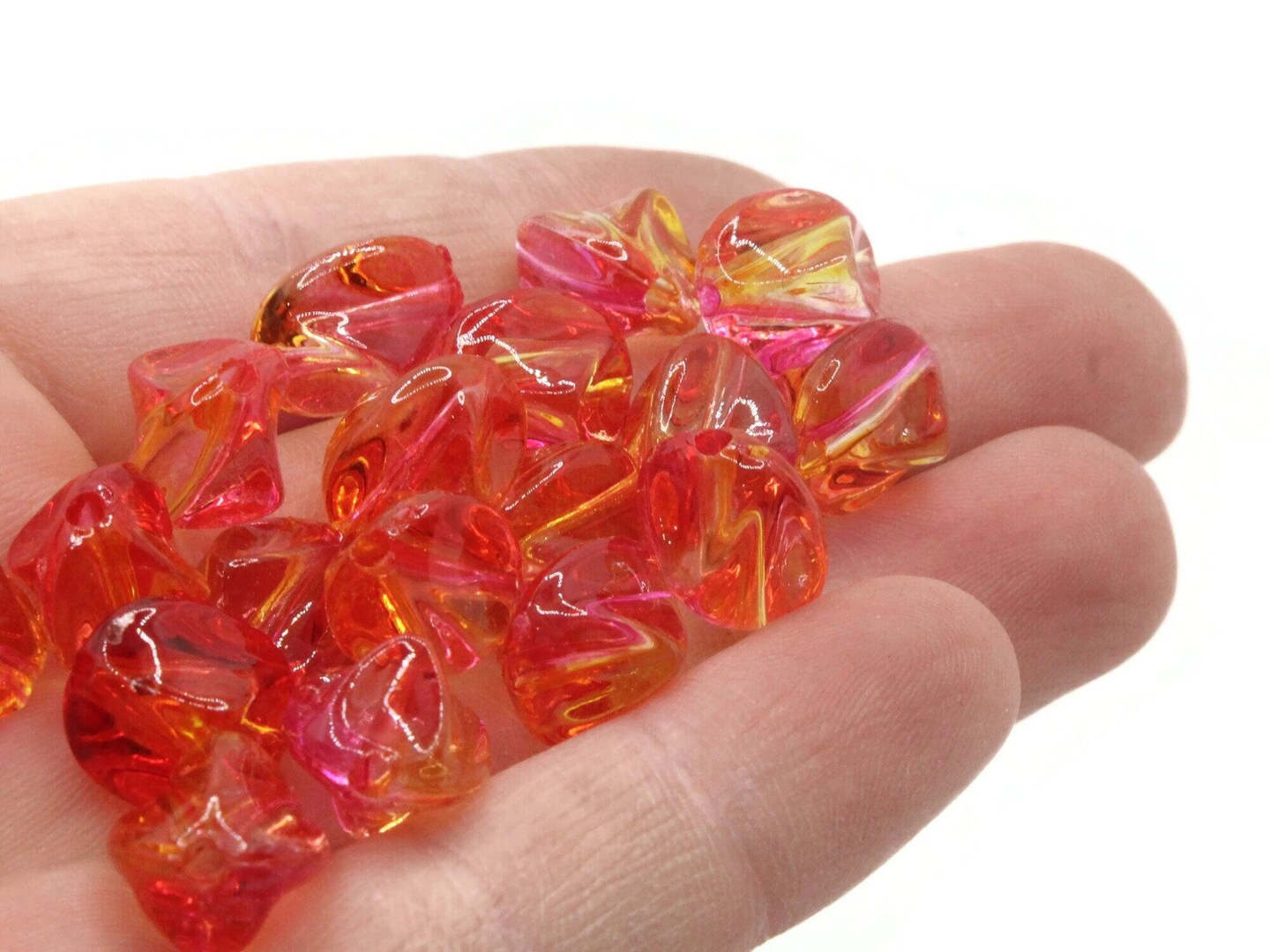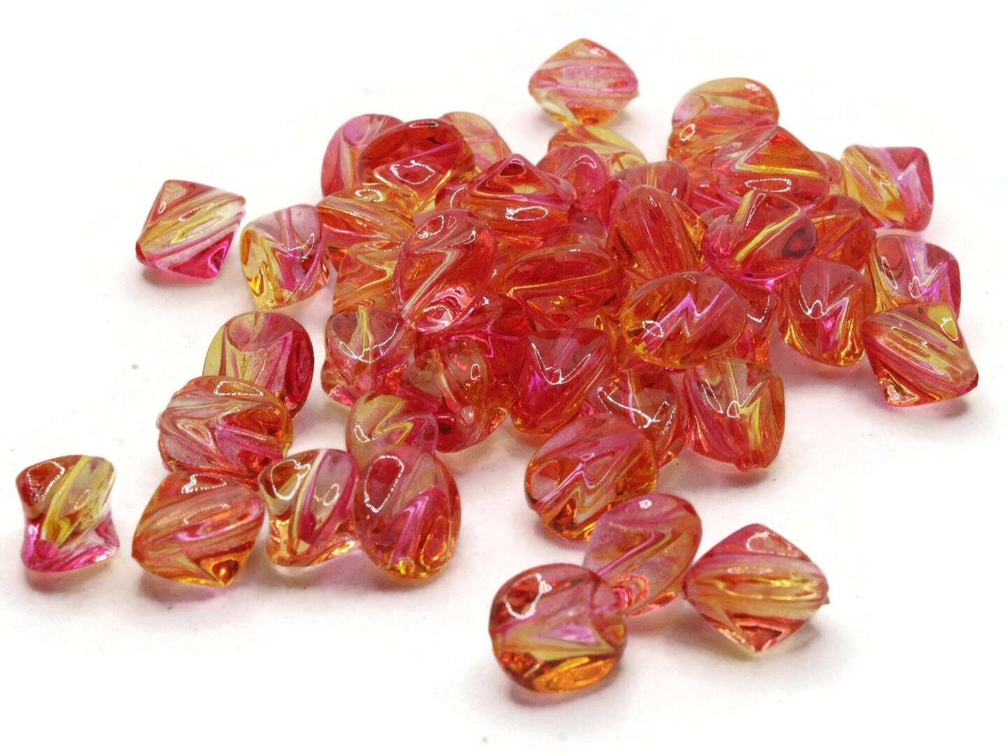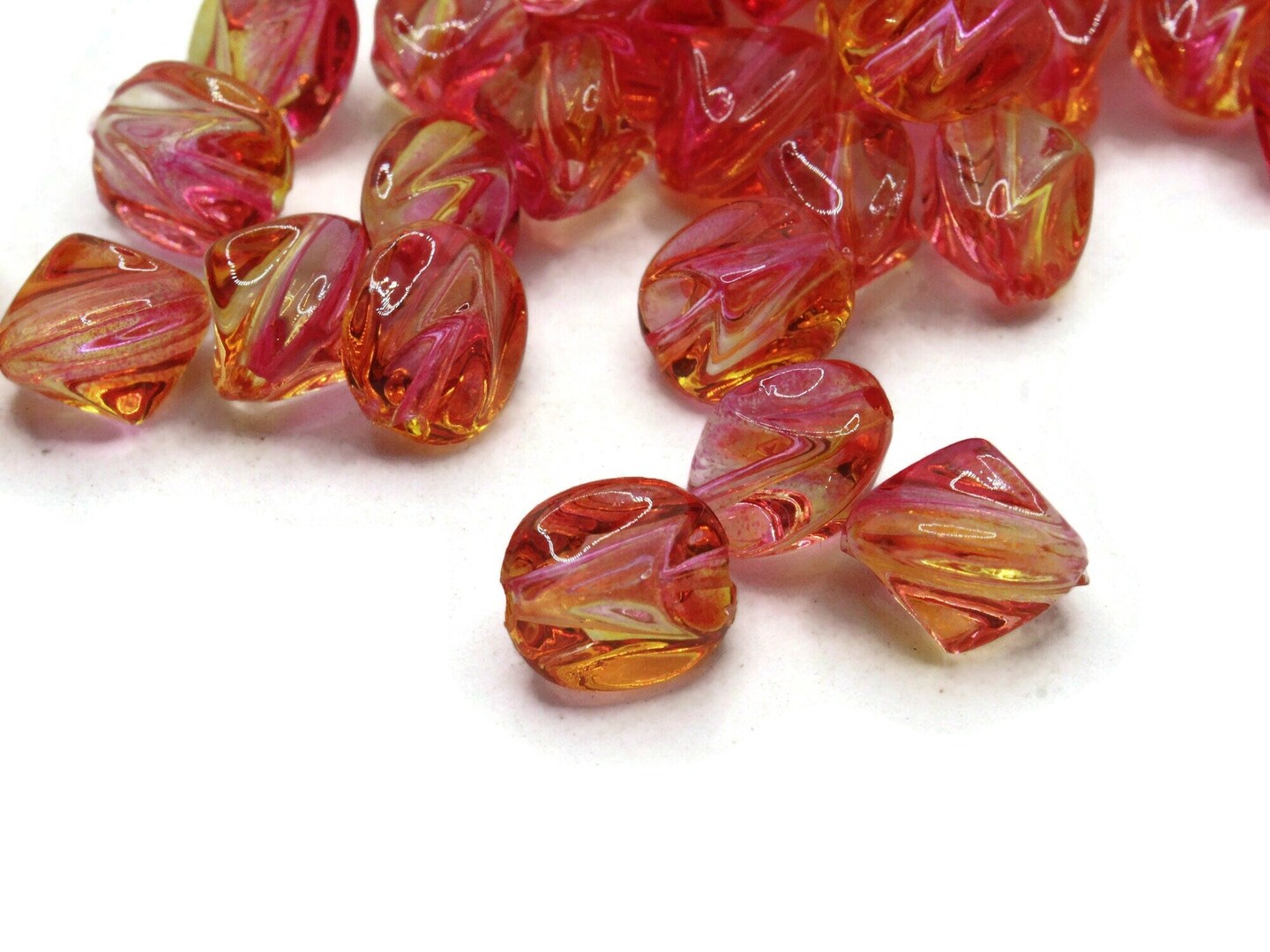 50 12mm Pink and Yellow Two Tone Faceted Oval Acrylic Beads