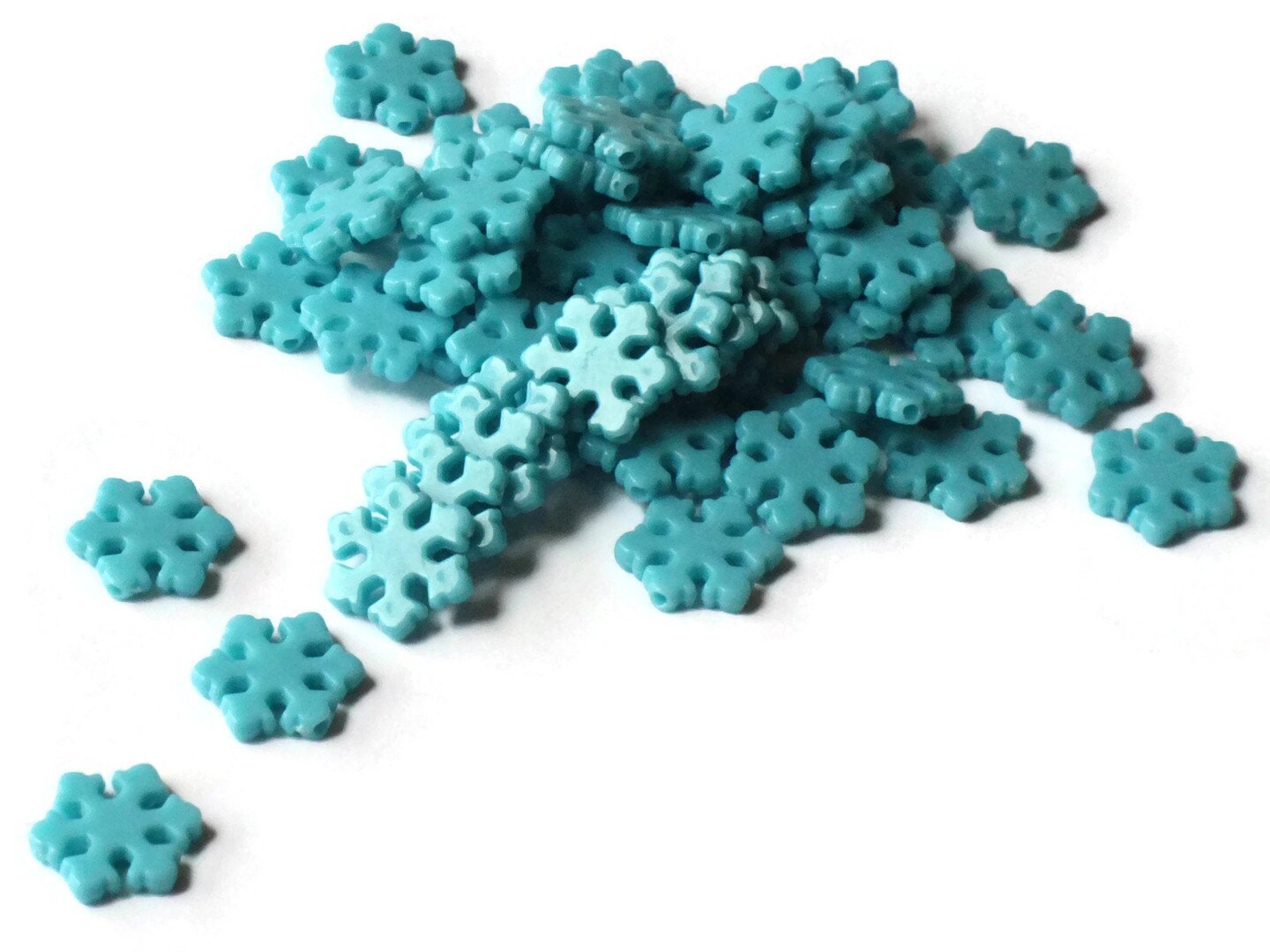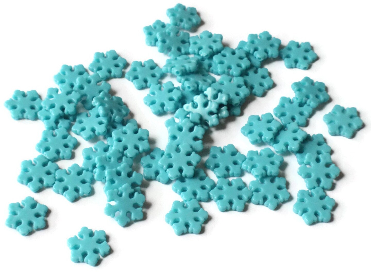 50 13mm Blue Flat Snowflake Plastic Beads