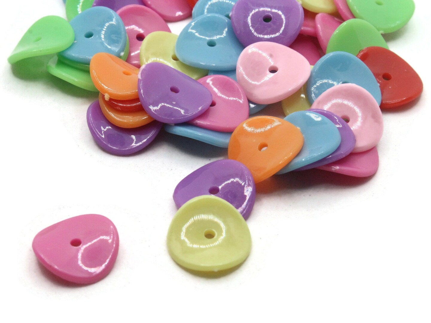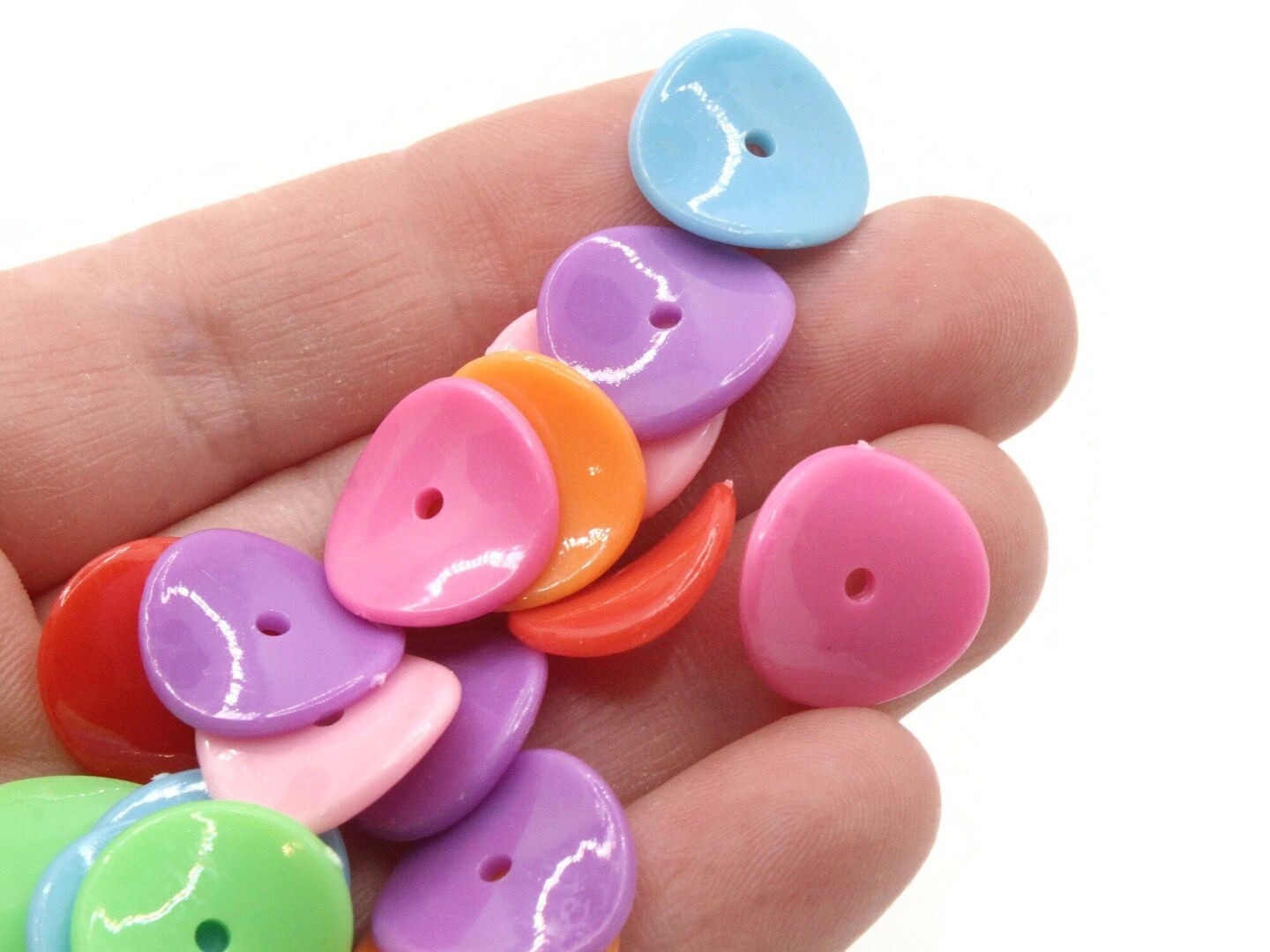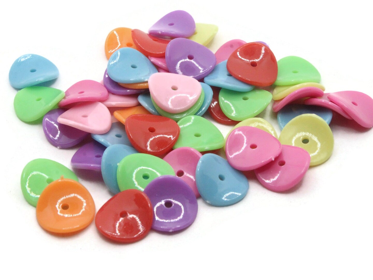 50 15mm Bright Color Mixed Wavy Disc Flat Round Coin Plastic Beads