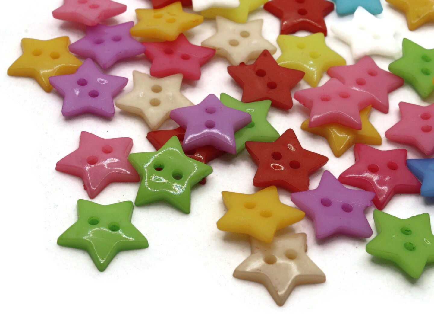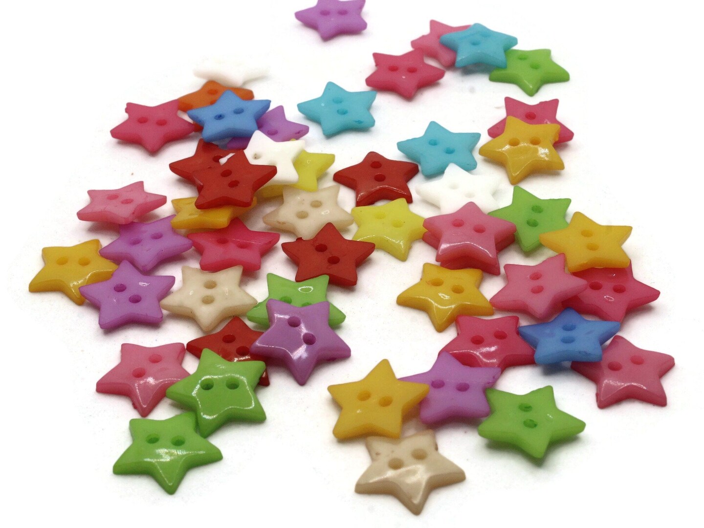 50 15mm Mixed Color Star Plastic Two Hole Buttons