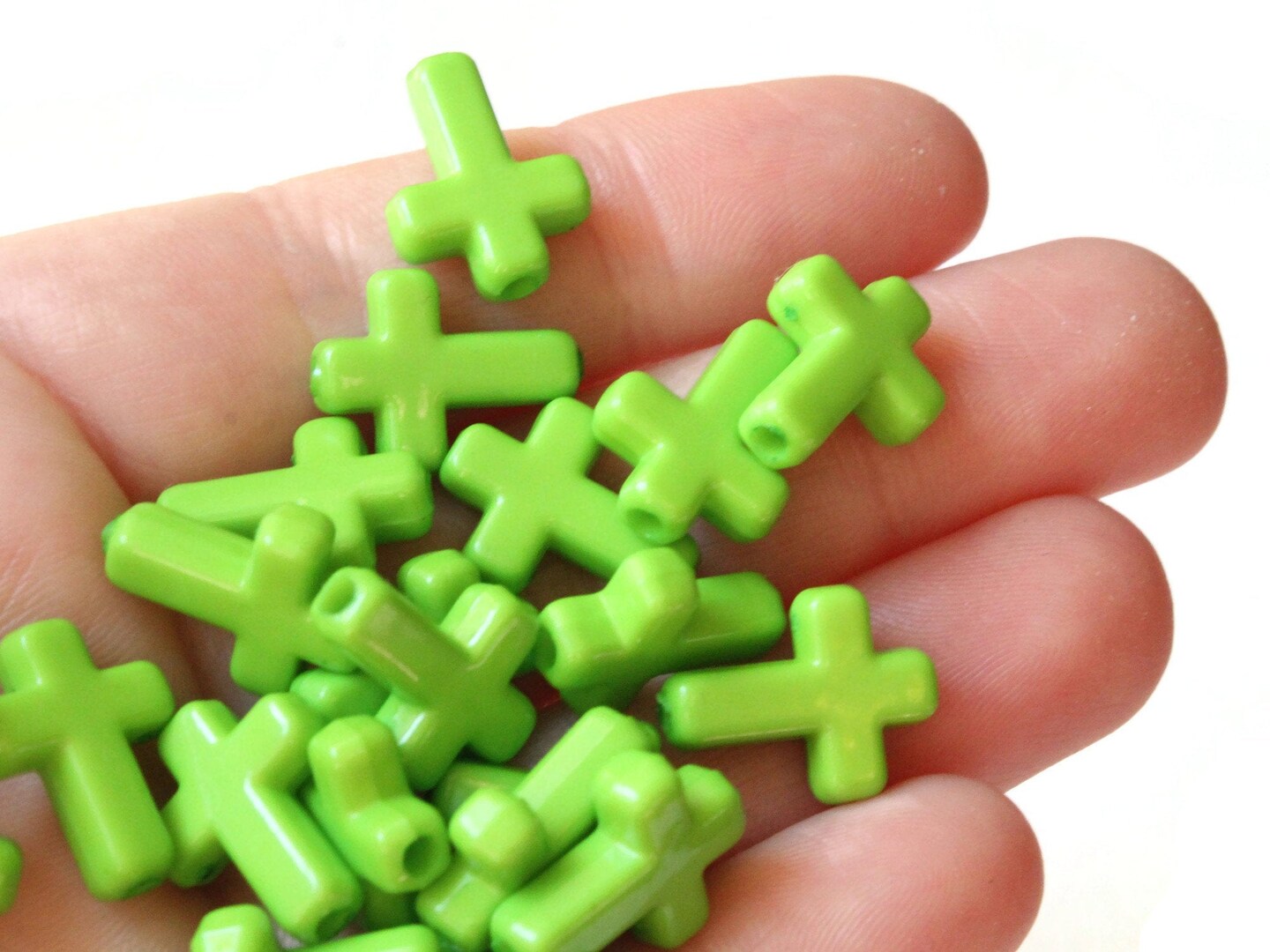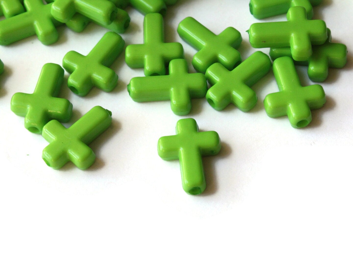 50 16mm Green Plastic Cross Beads Christian Beads