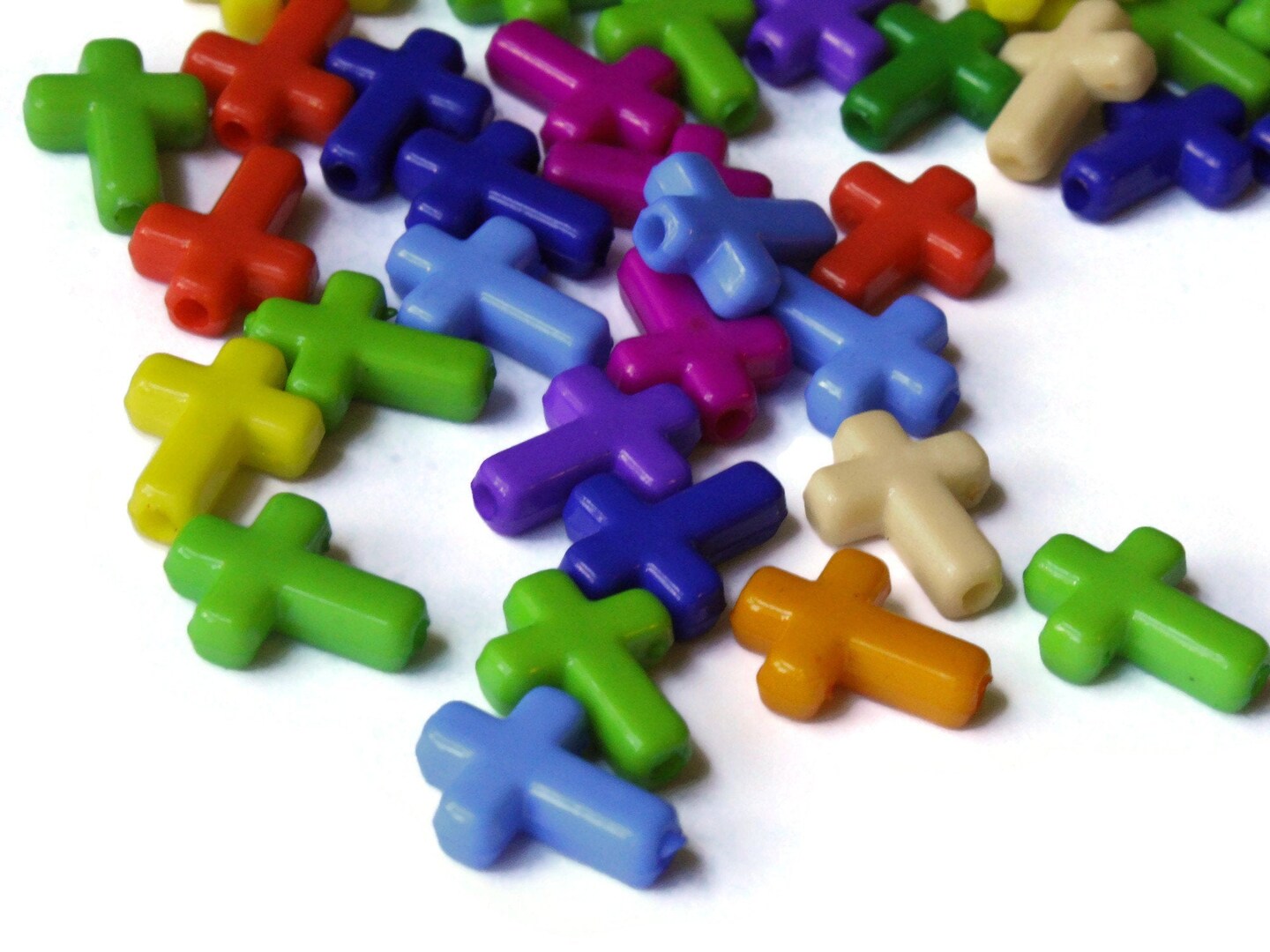 50 16mm Mixed Color Plastic Cross Beads Christian Beads