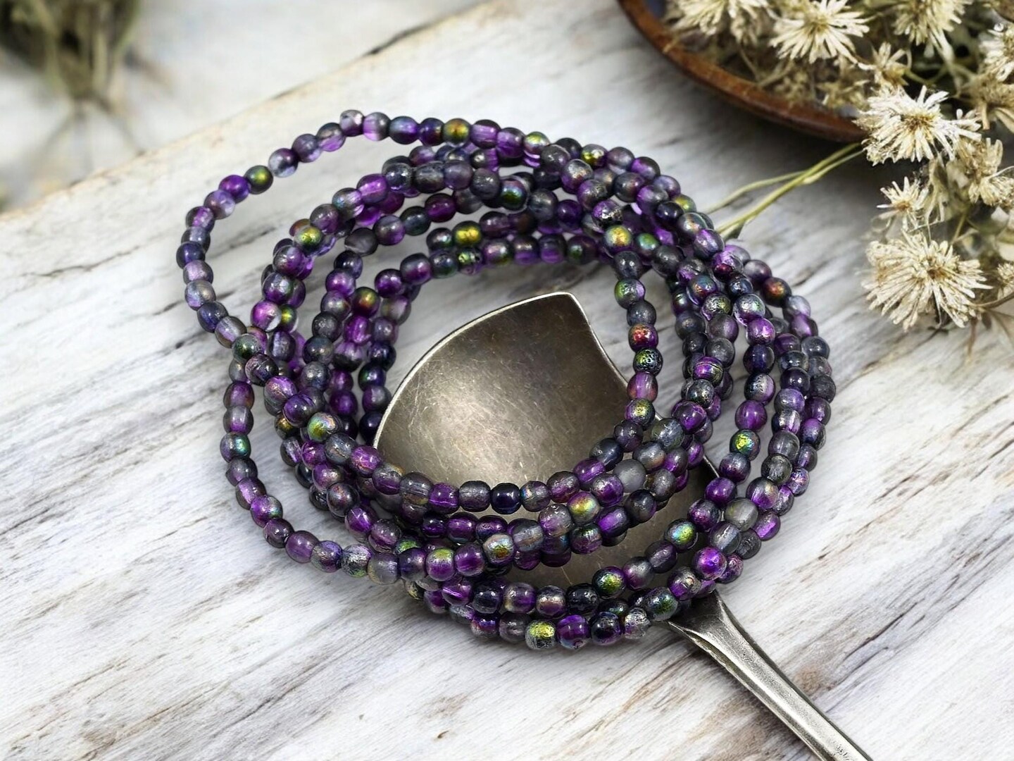 *50* 3mm Etched Mystic Purple Round Druk Beads