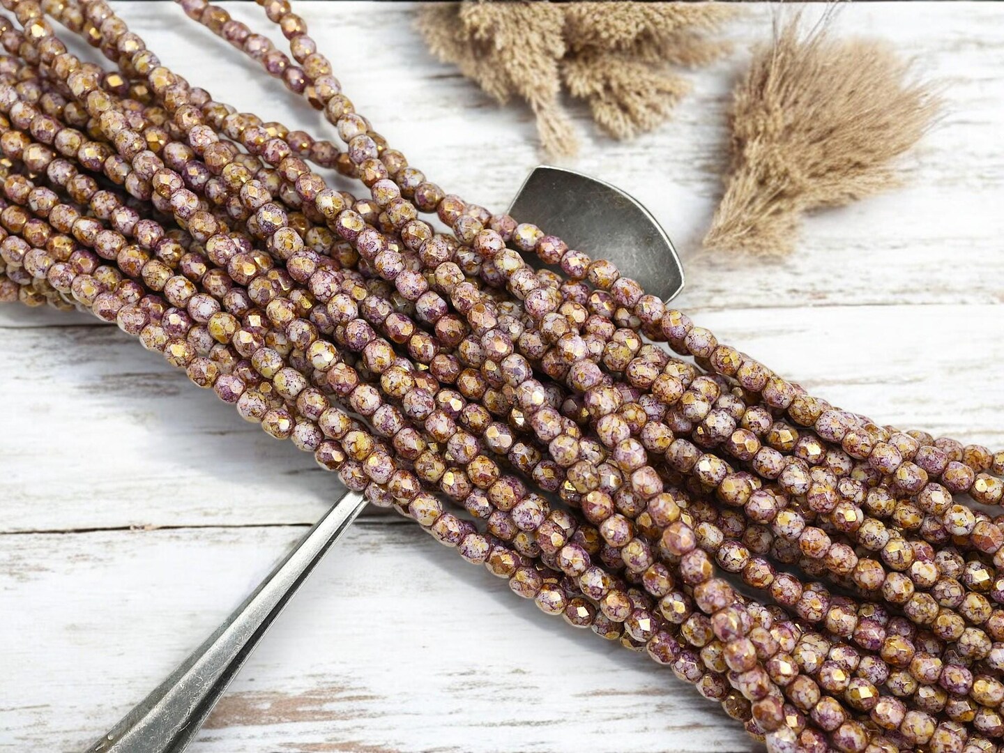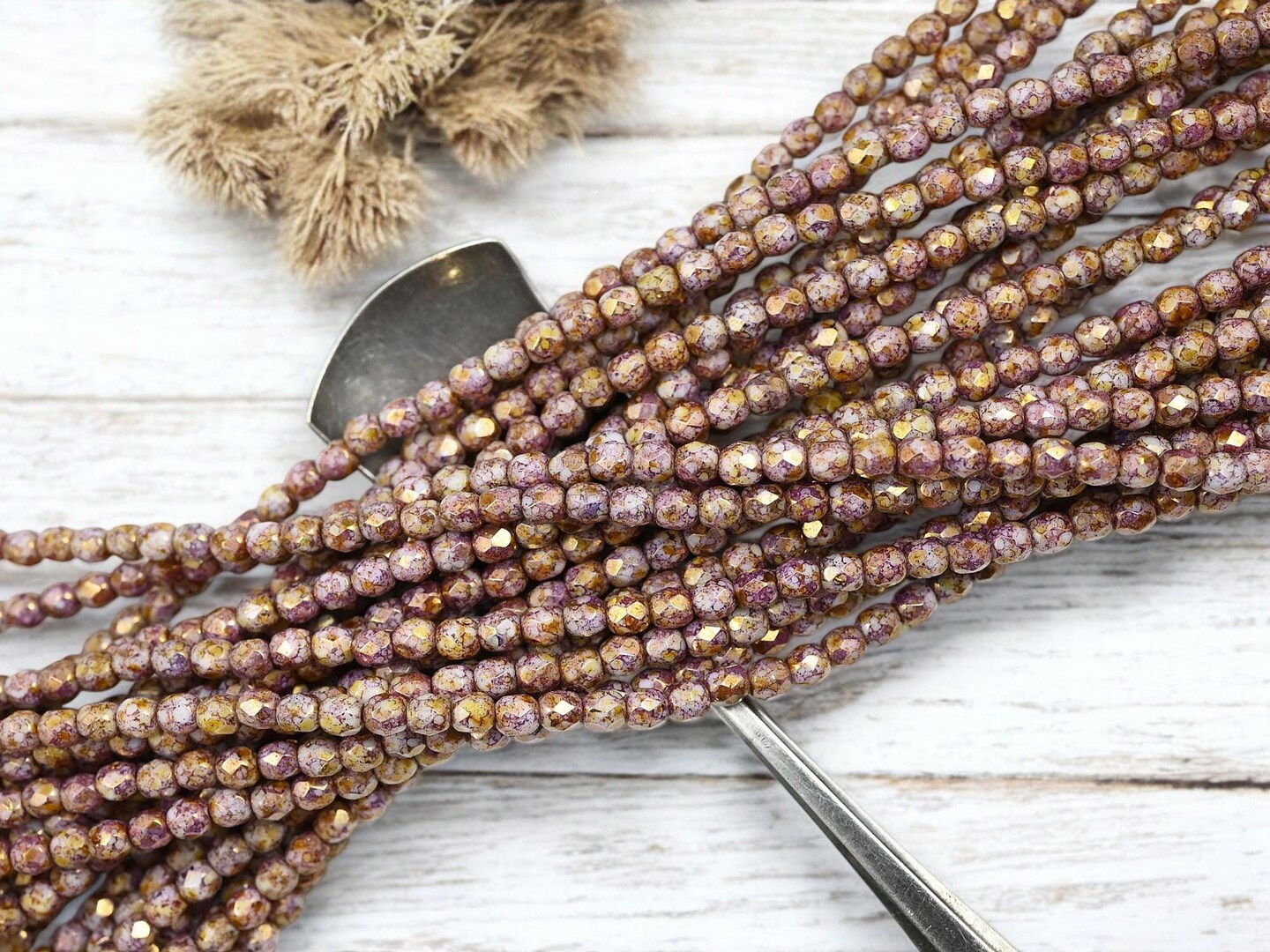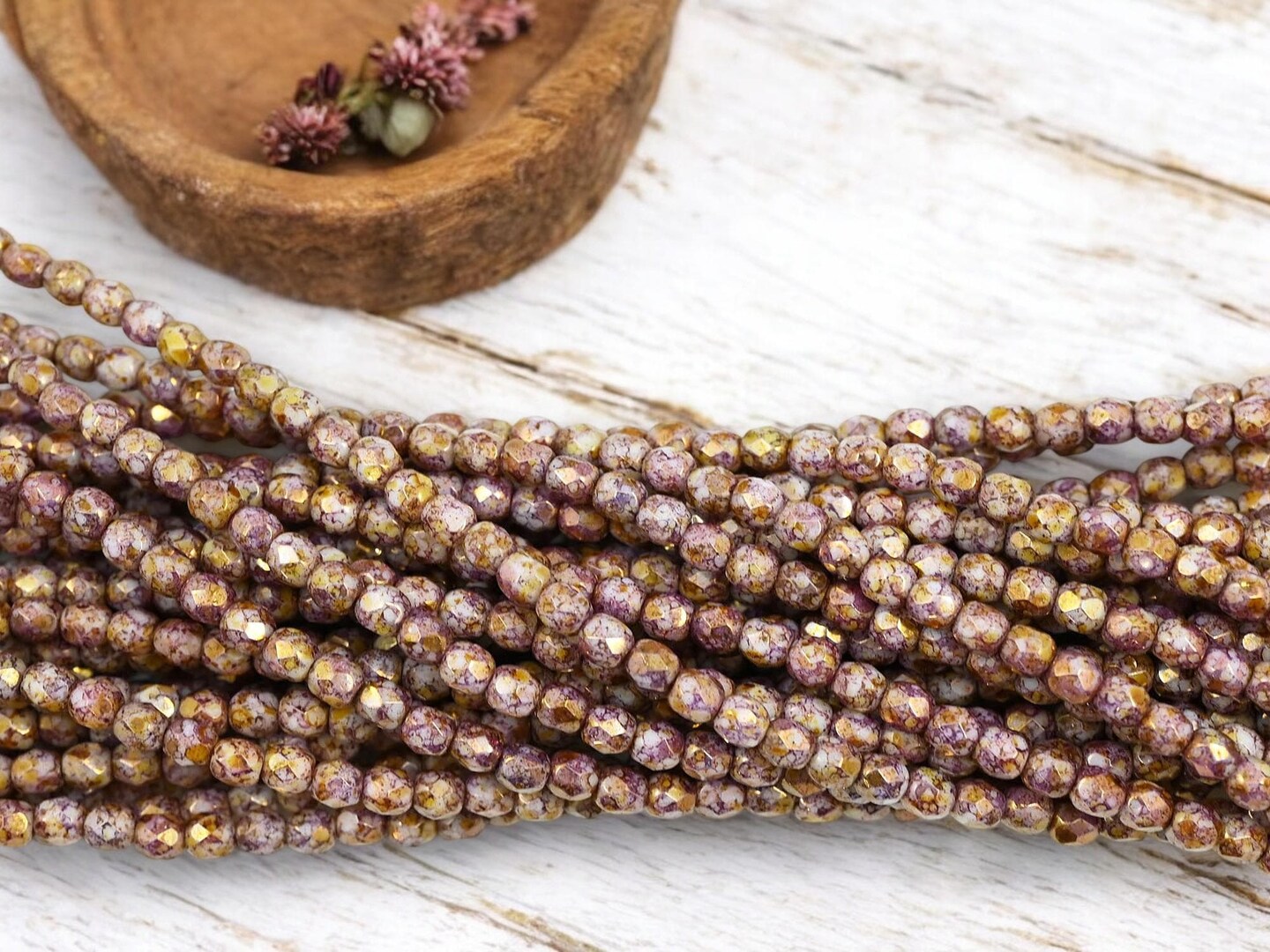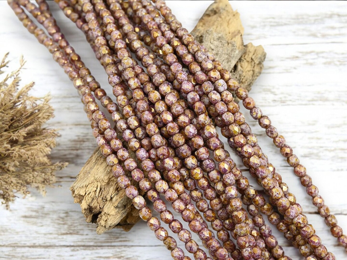 *50* 4mm Pink Topaz Luster Picasso Fire Polished Round Beads