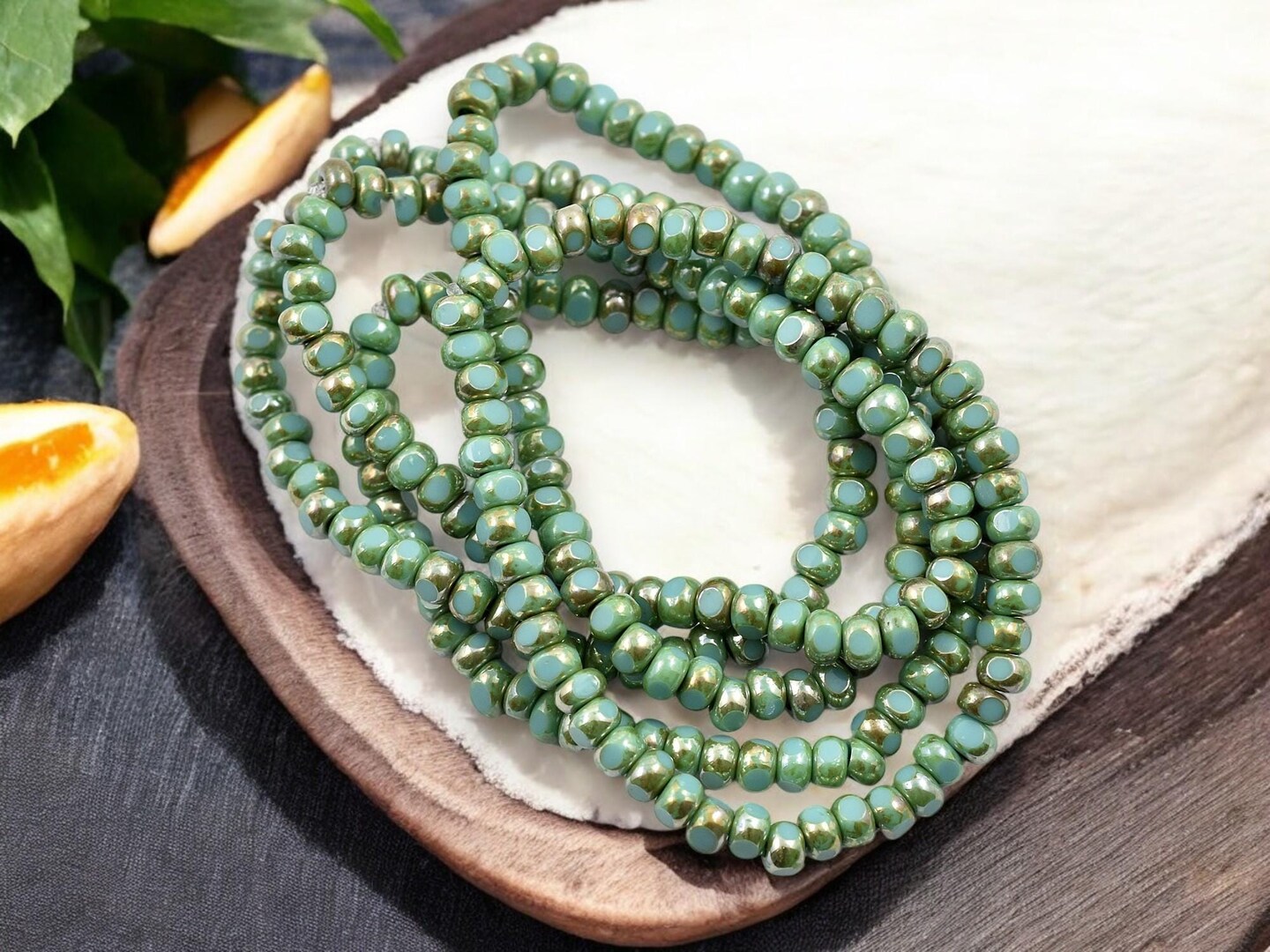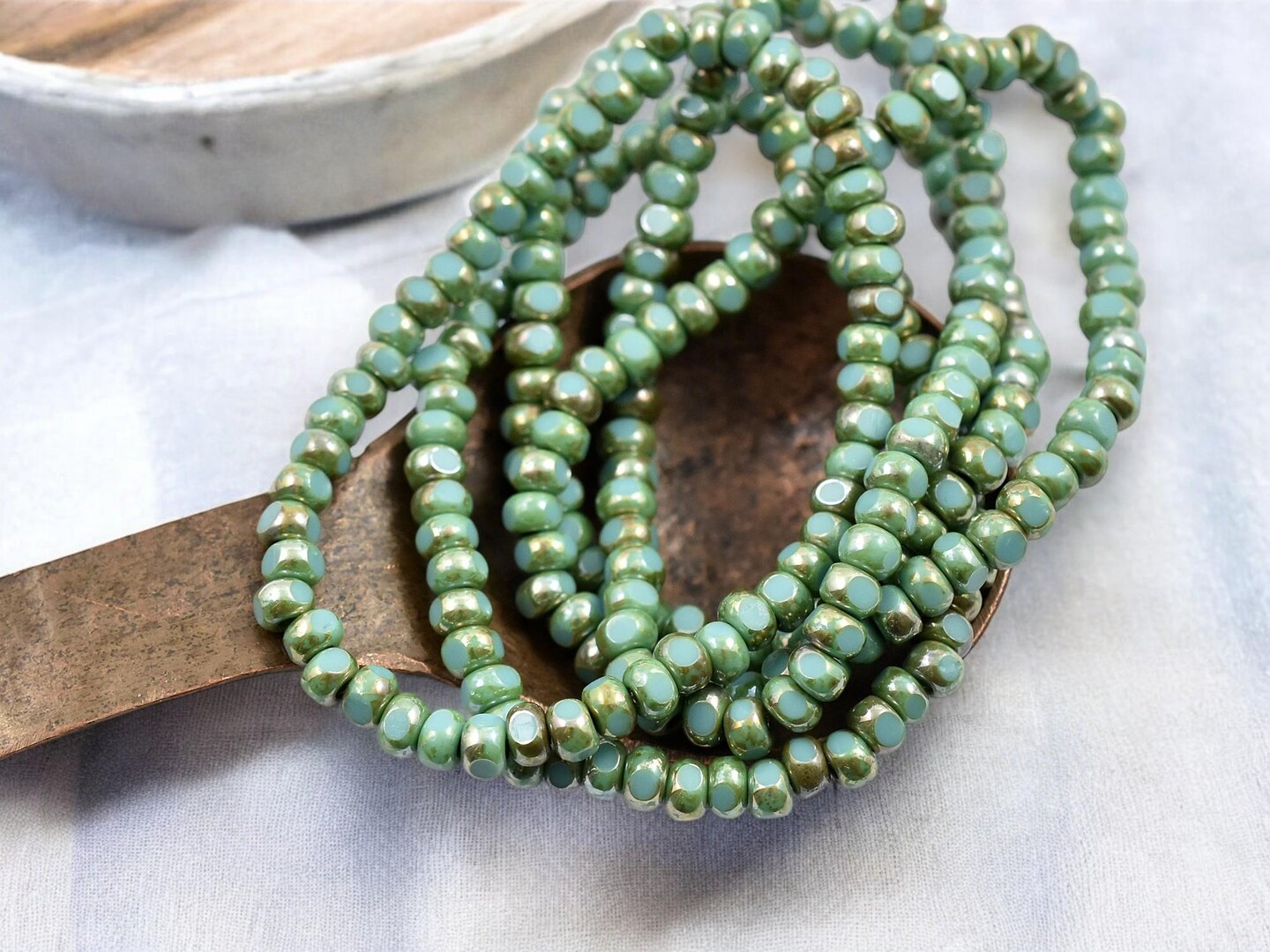 *50* 4x3mm Opaque Turquoise Picasso Luster Trica Beads