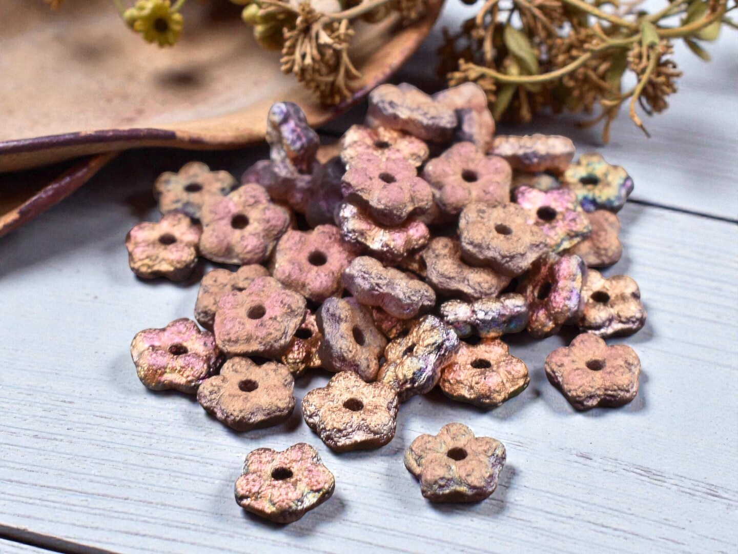 *50* 5mm Etched Copper AB Forget Me Not Rondelle Daisy Beads