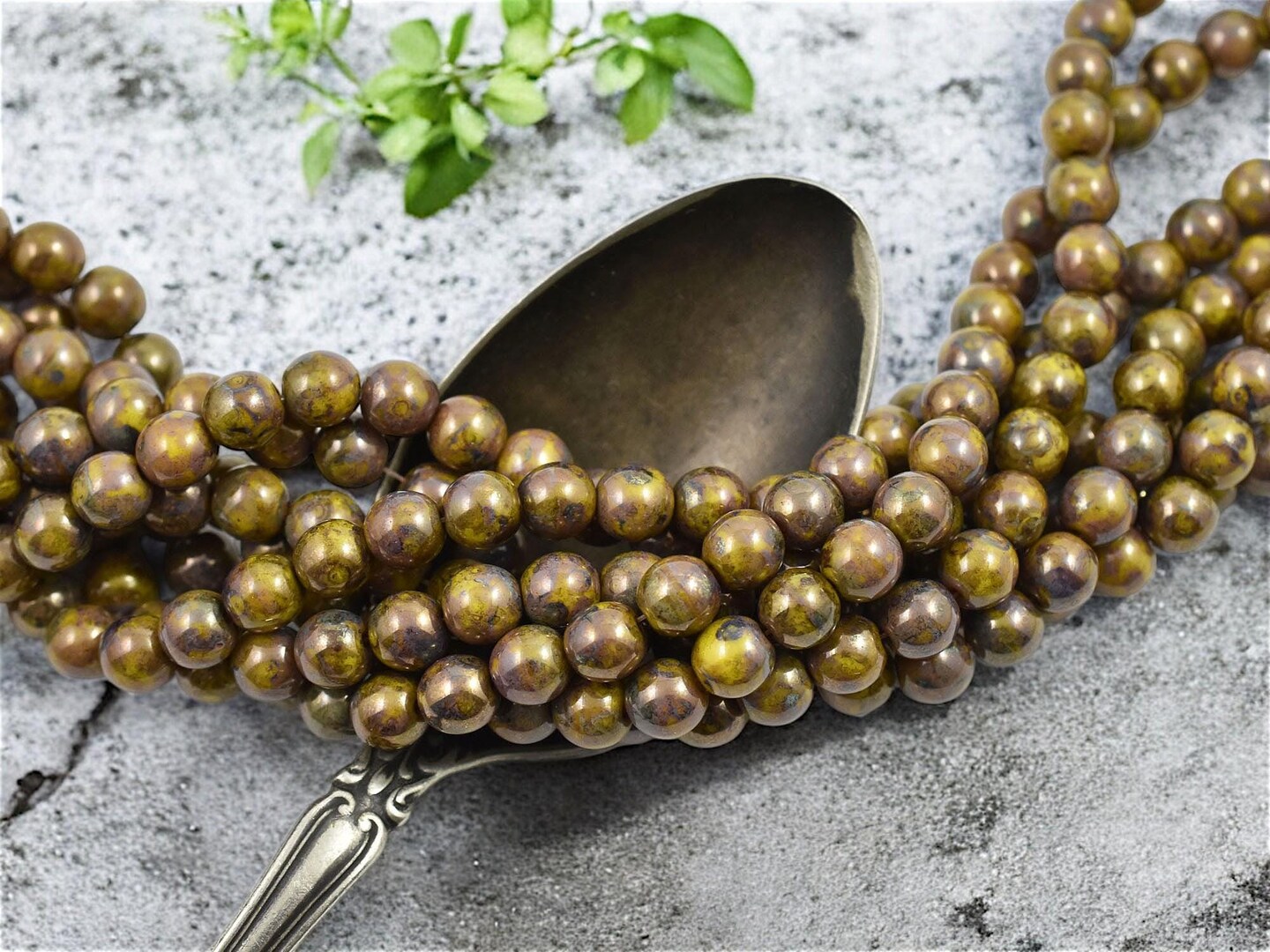 *50* 6mm Golden Yellow Bronze Picasso Round Beads