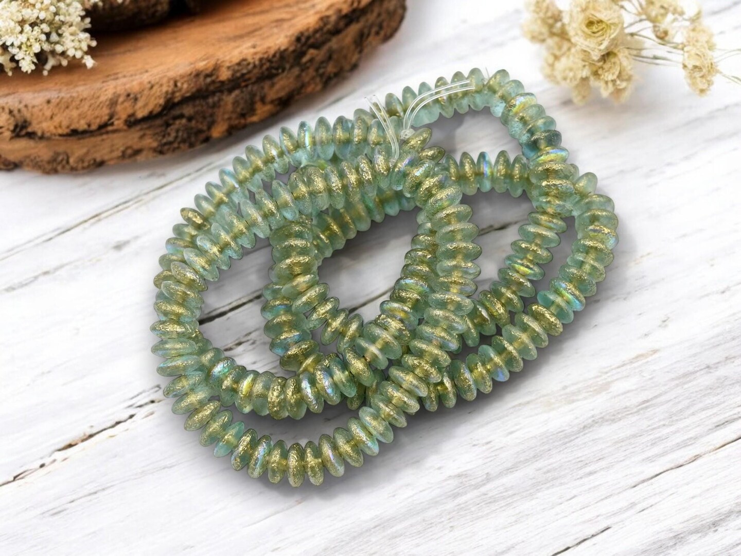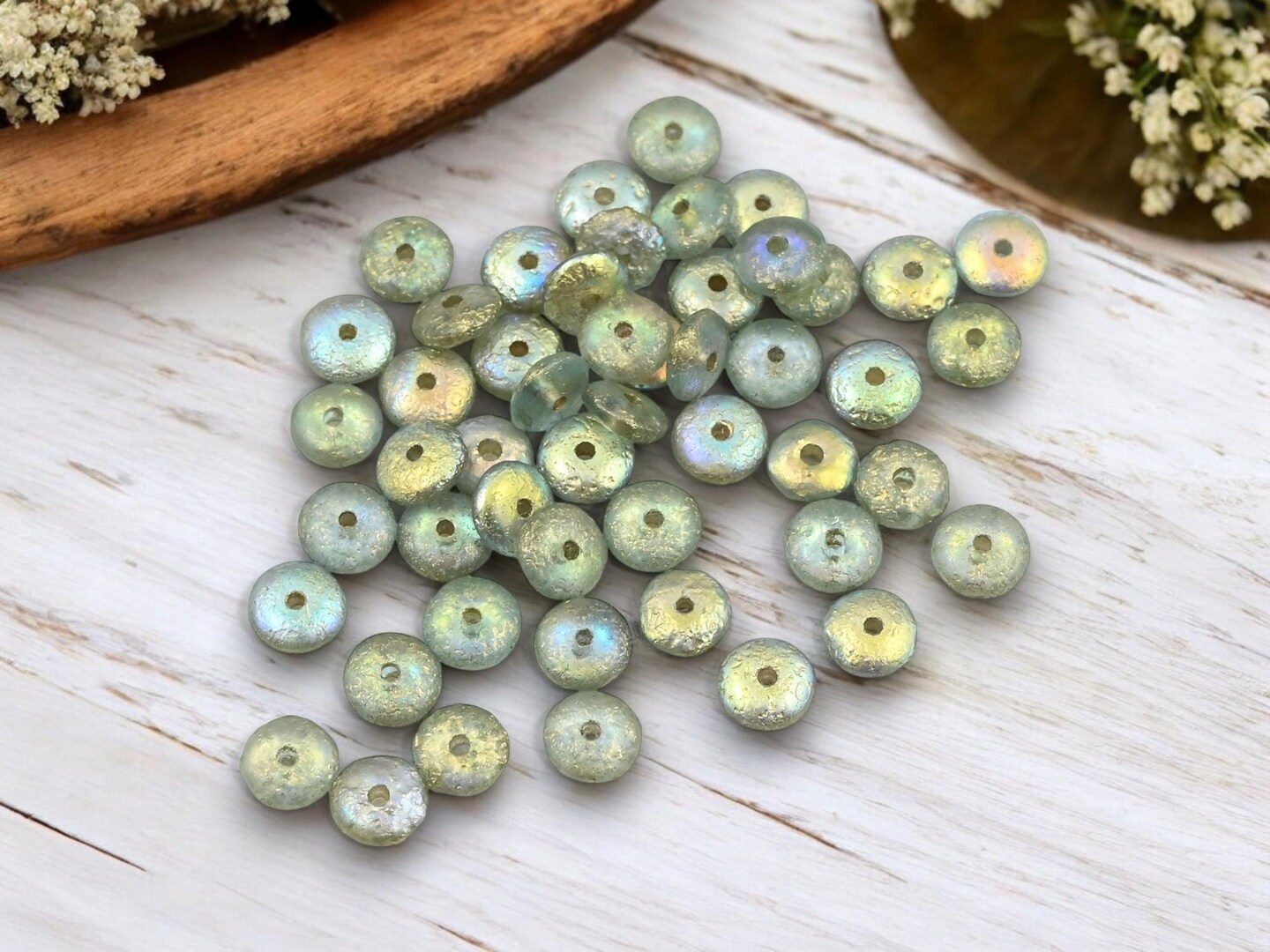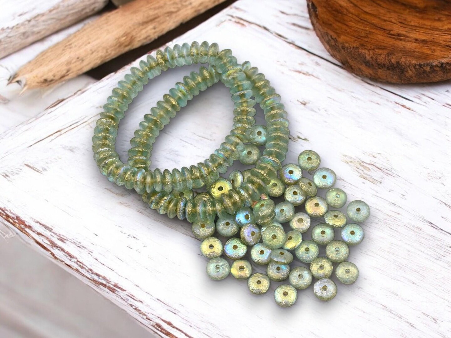 *50* 6x2mm Etched Gold Washed Pale Aqua AB Smooth Rondelle Beads