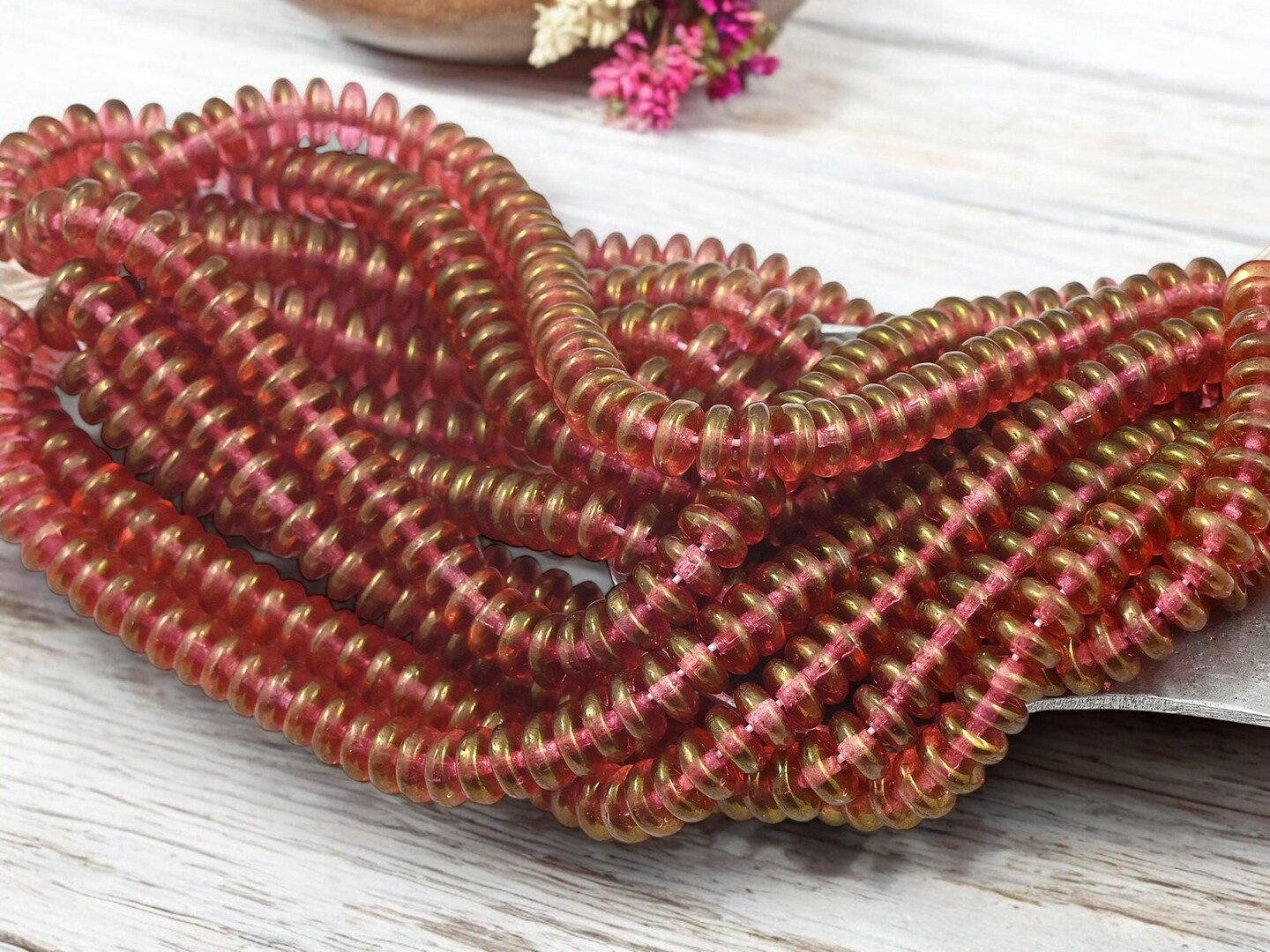 *50* 6x2mm Gold Lustered Pink Topaz Smooth Rondelle Beads