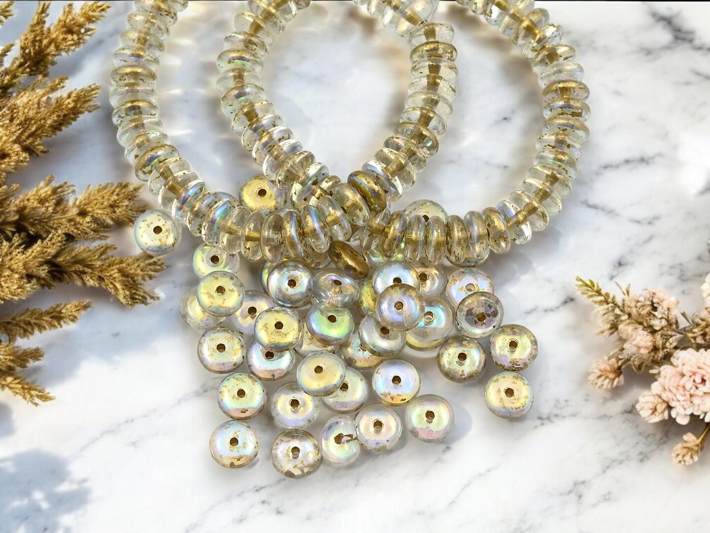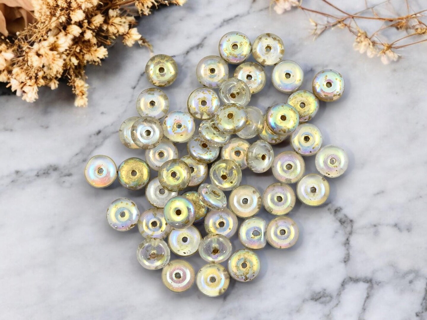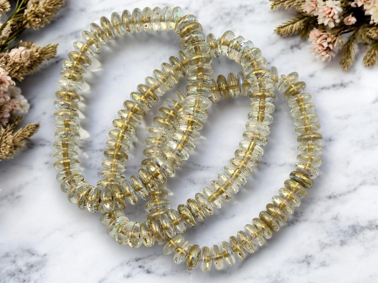 *50* 6x2mm Gold Washed Crystal AB Smooth Rondelle Beads