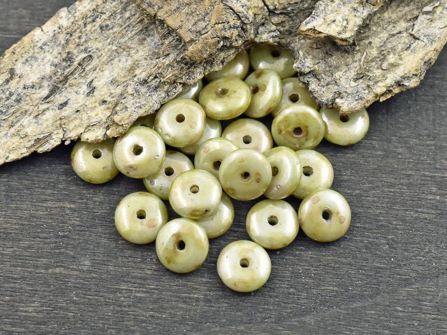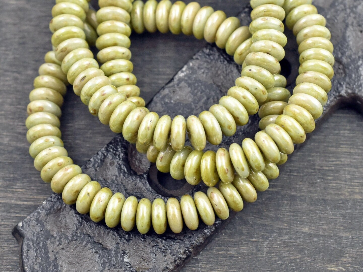 *50* 6x2mm Opaque Greenstone Picasso Smooth Rondelle Beads