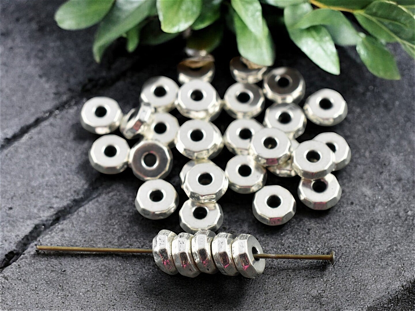 *50* 8x3mm Antique Silver Faceted Rondelle Beads
