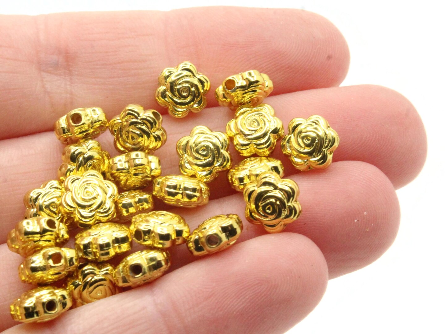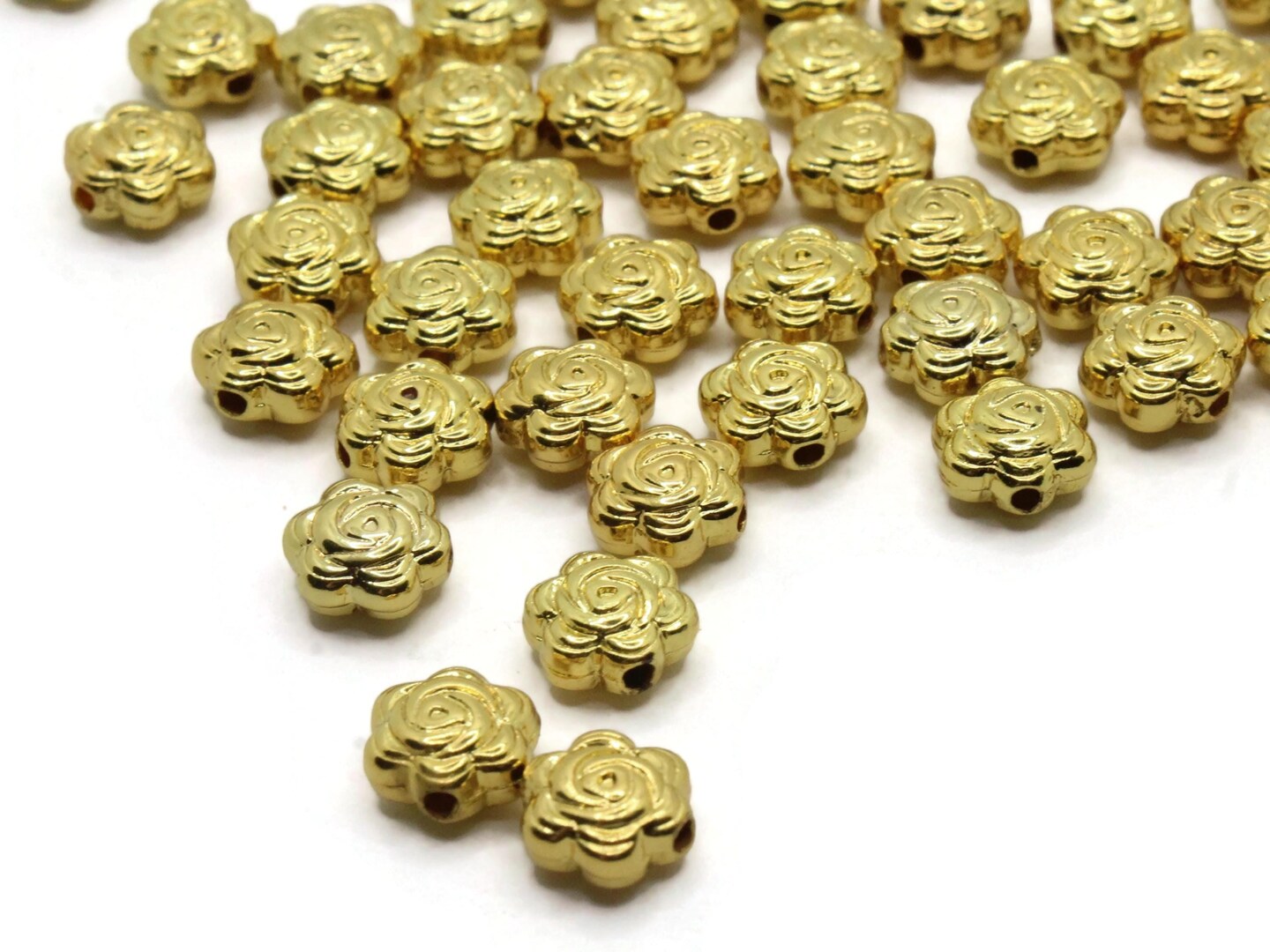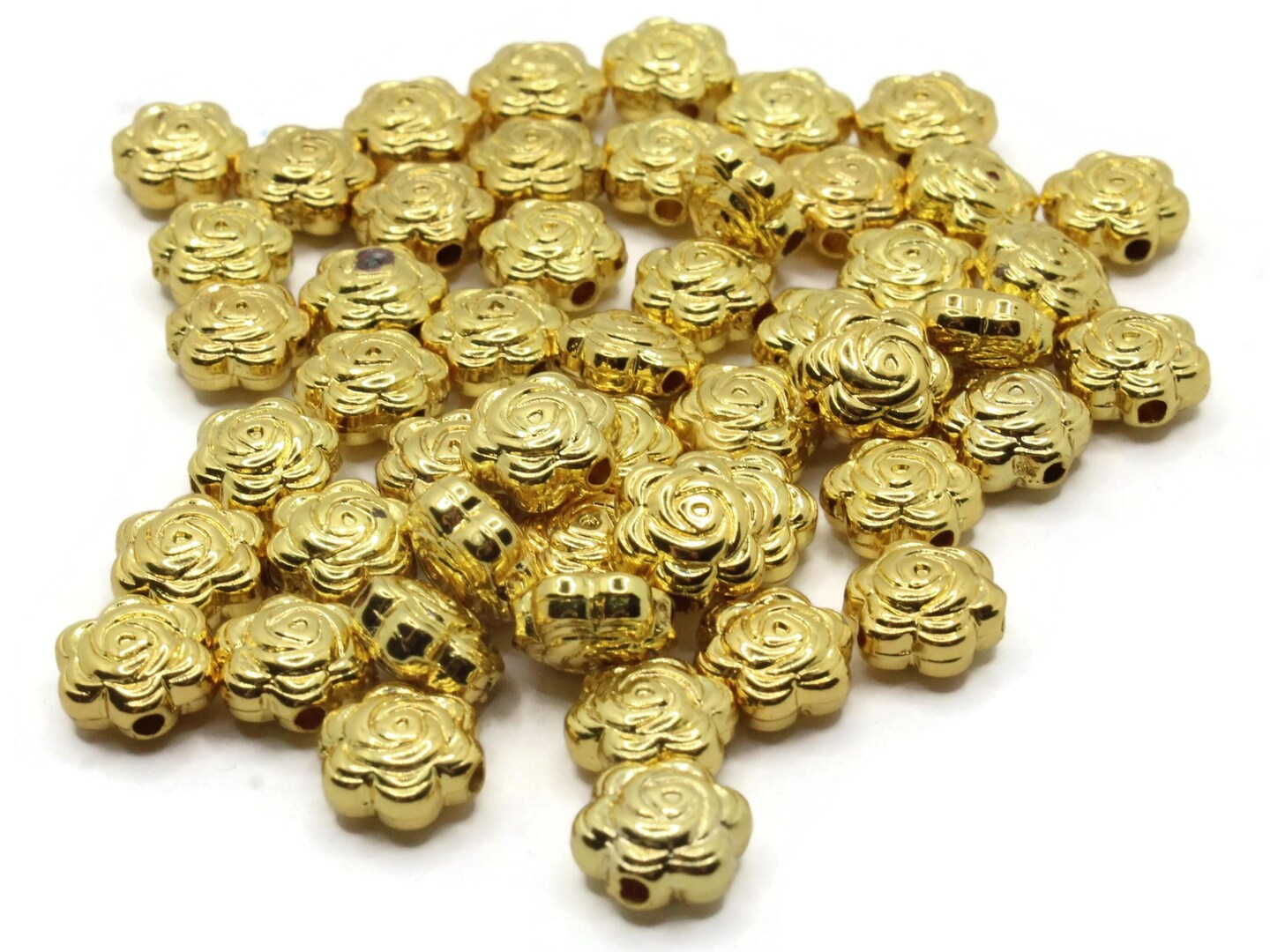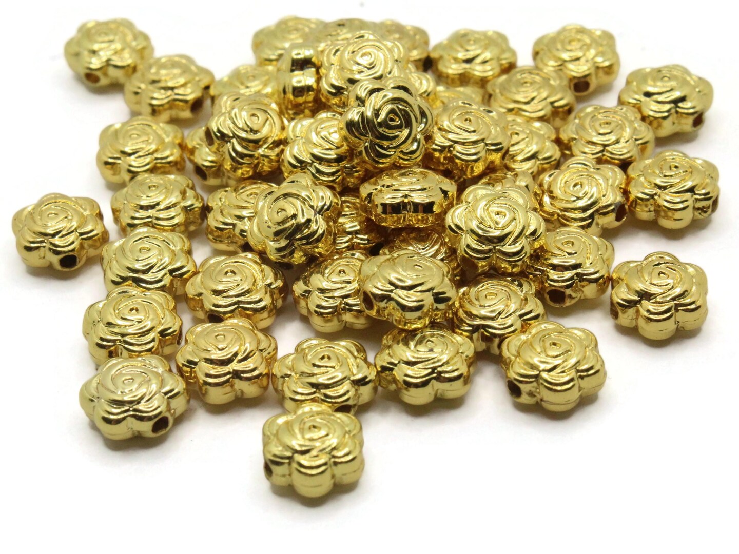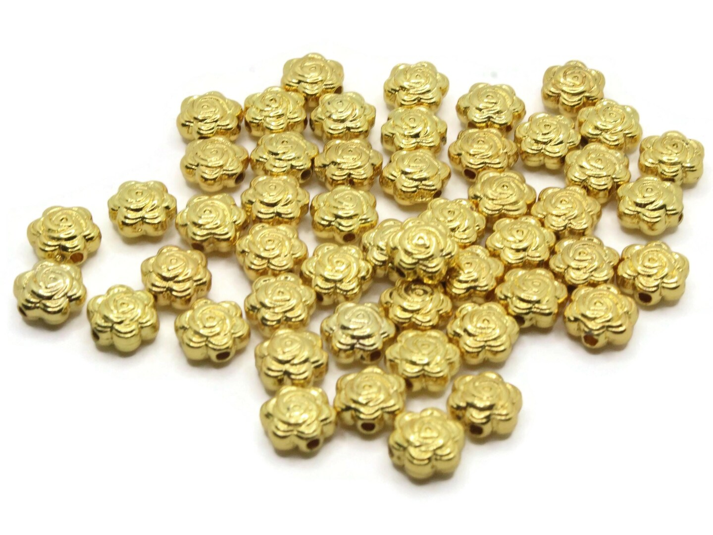 50 9mm Flower Vintage Gold Plated Plastic Spacer Beads