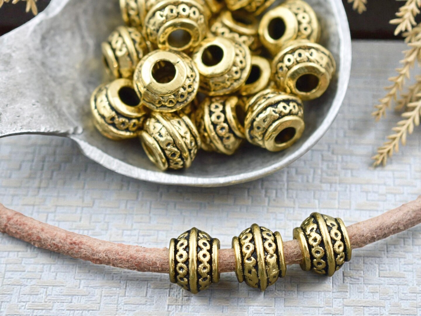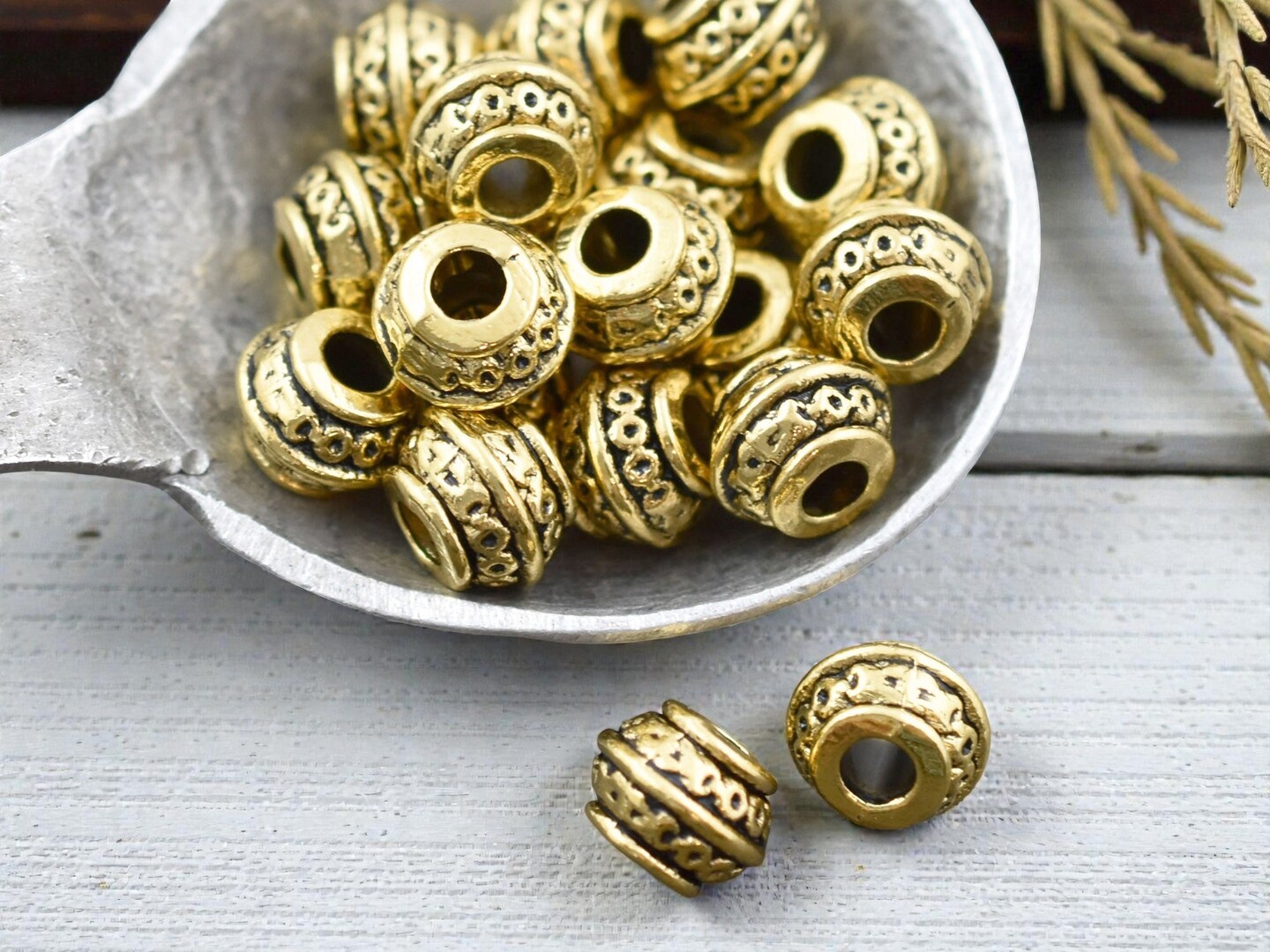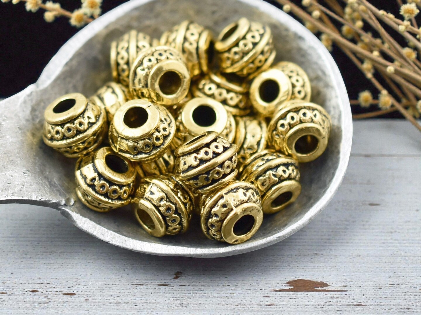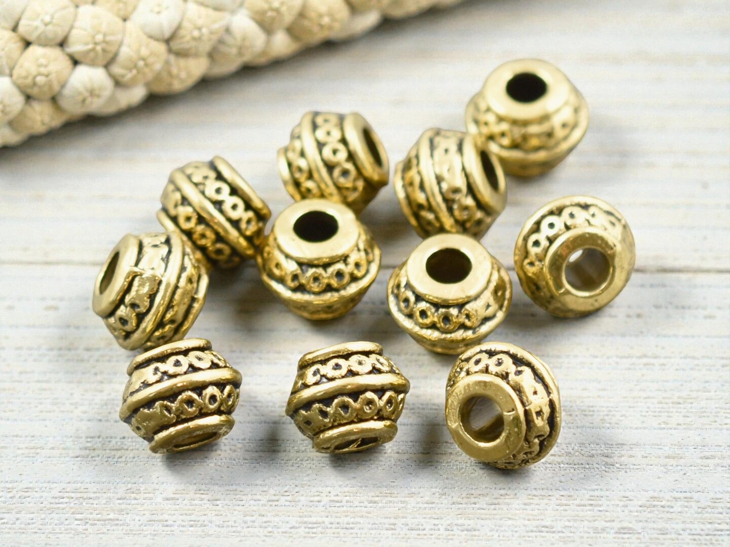 *50* 9x7mm Antique Gold Large Hole Barrel Beads
