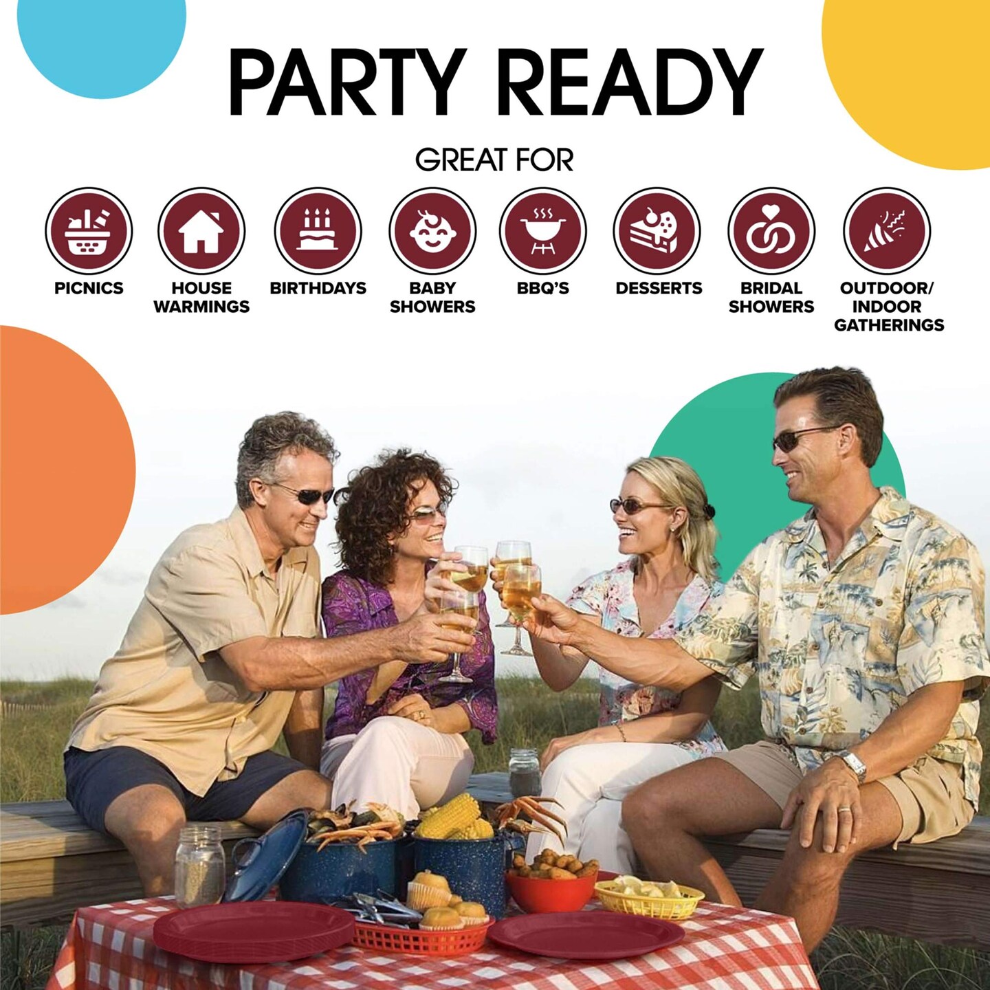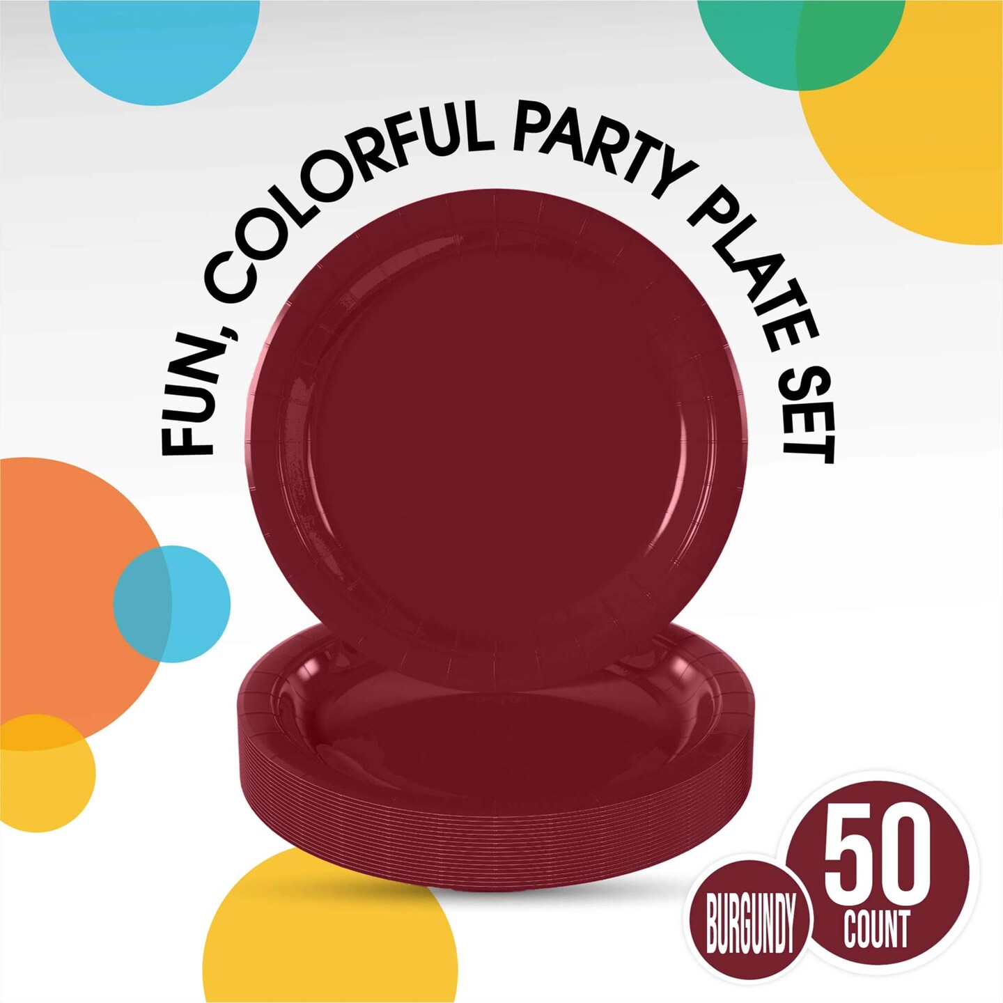 50 Count Burgundy Paper Plates Elegant Disposable Party Celebrations for Events 7"