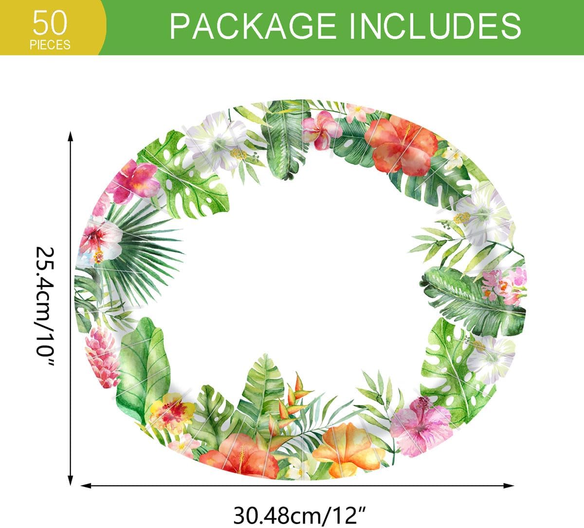 50 Count Hawaiian Luau Oval Paper Plates