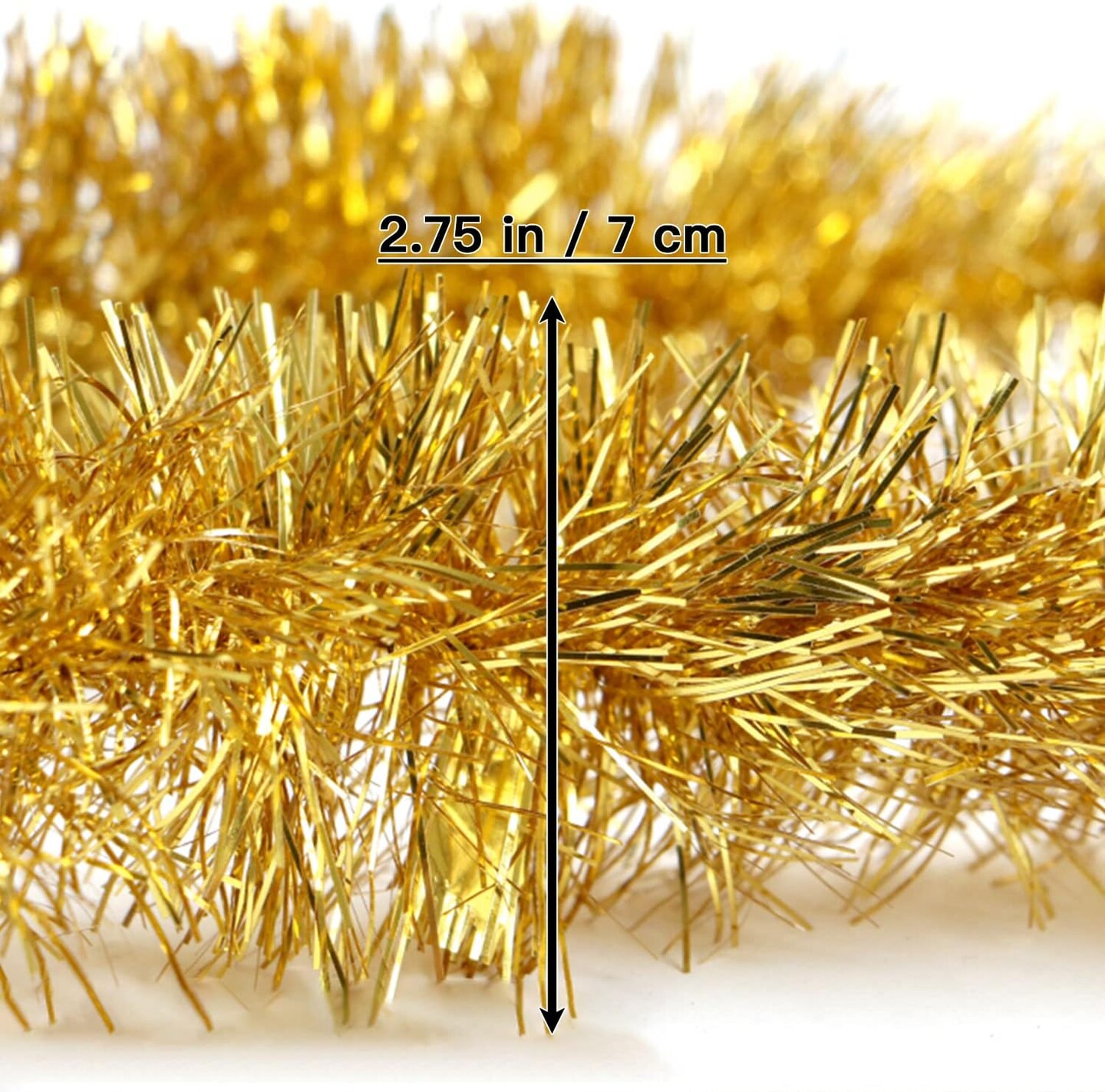 50 FT Christmas Garland Gold Tinsel Garland Christmas Tree Decorations - Non-Lit Xmas Holiday Decor Outdoor Indoor Home Garden Outside Wedding Party Artificial Thick Gold Decorative Garland
