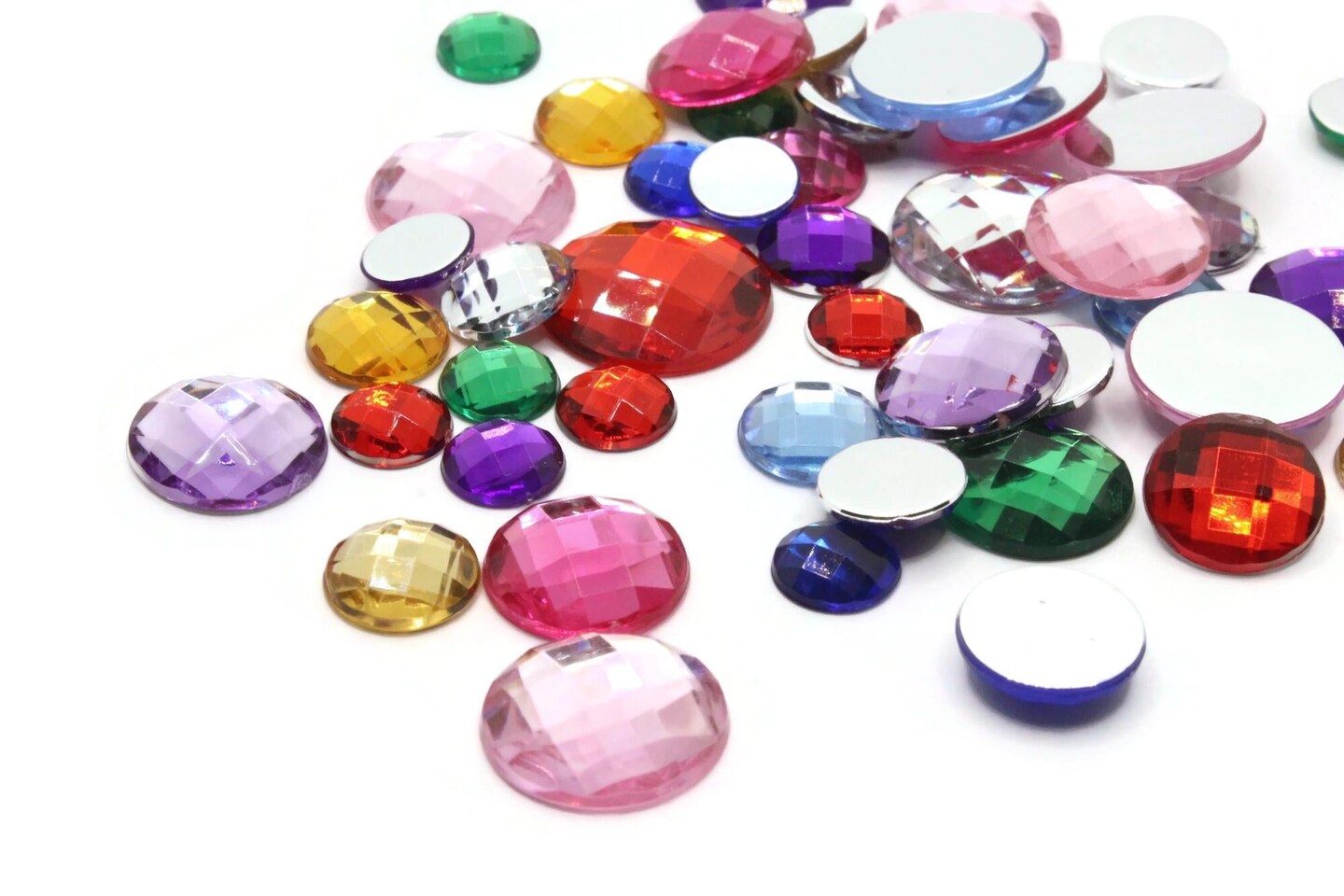 50 Mixed Size and Color Faceted Round Plastic Silver Foil Flatback Rhinestone Cabochons