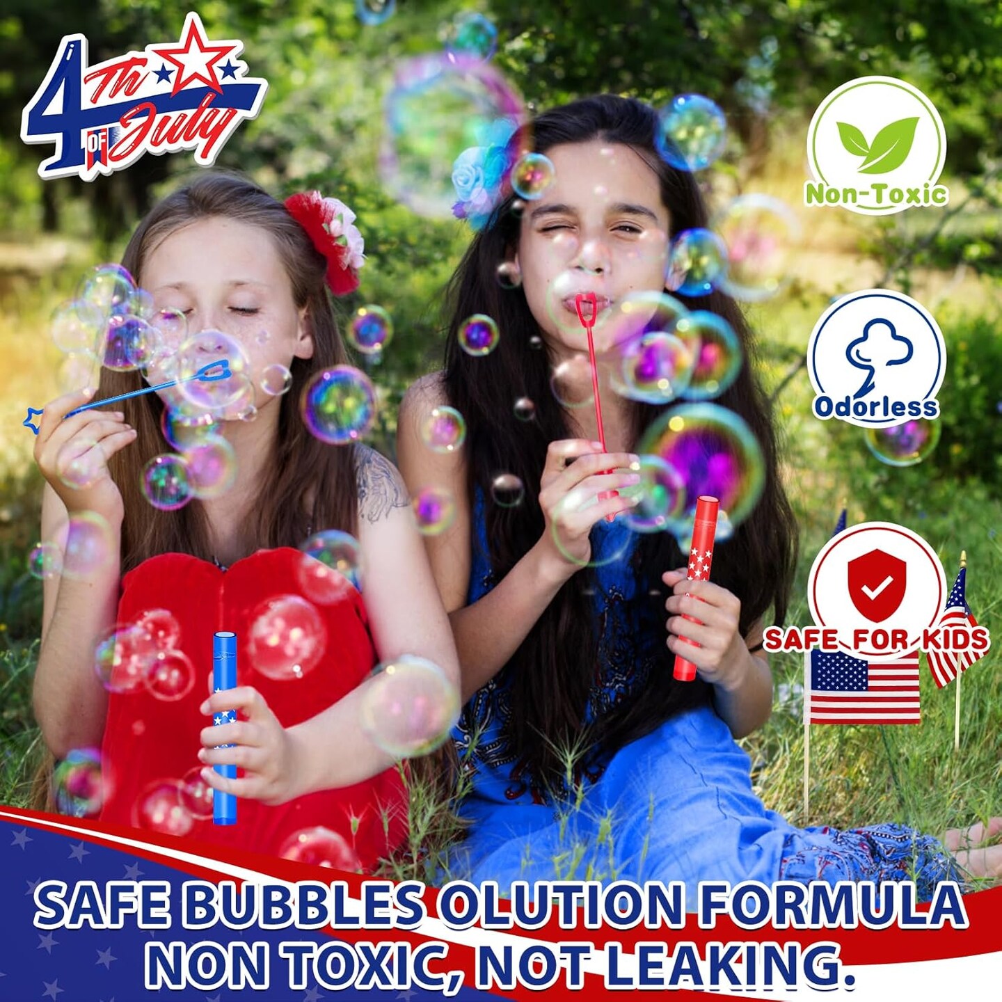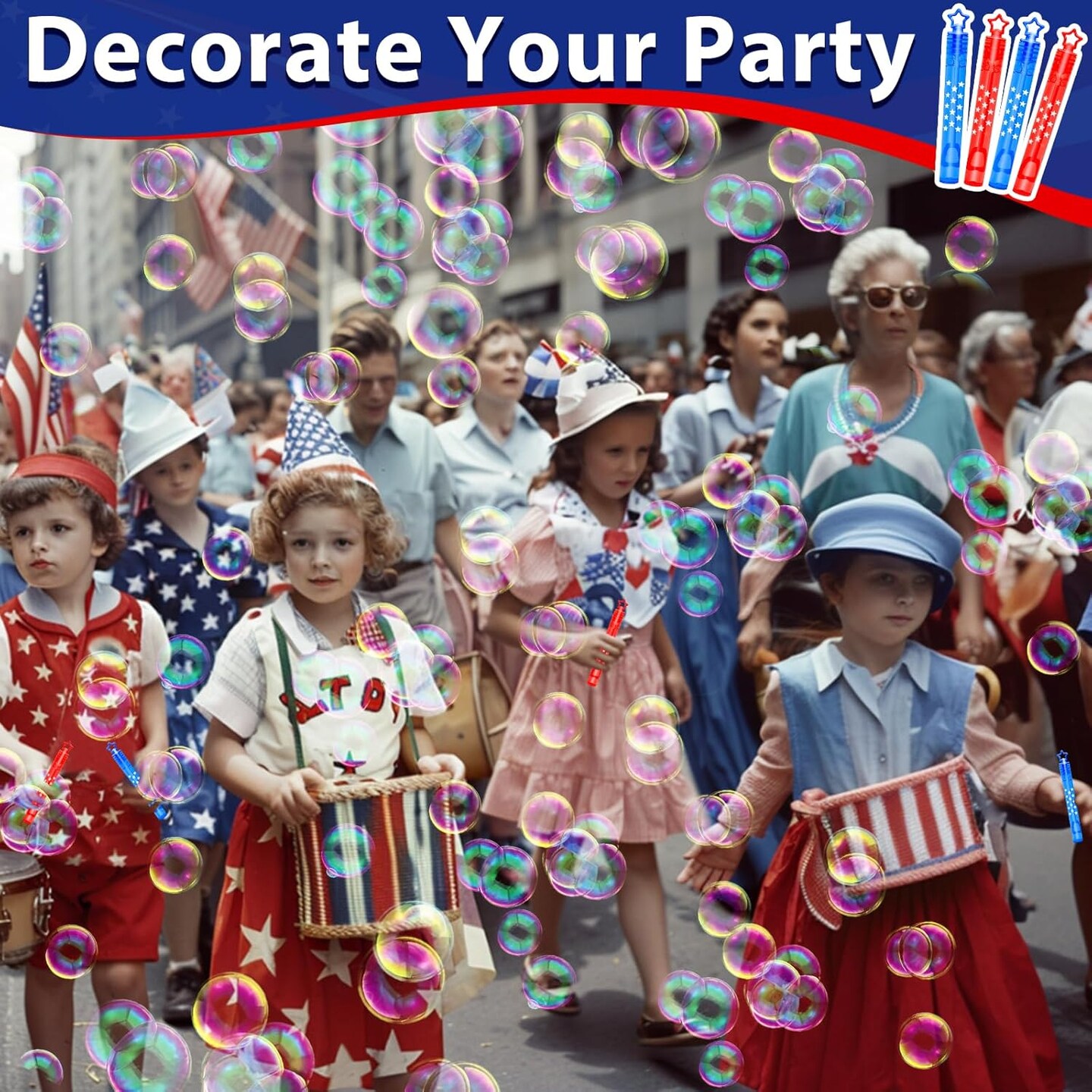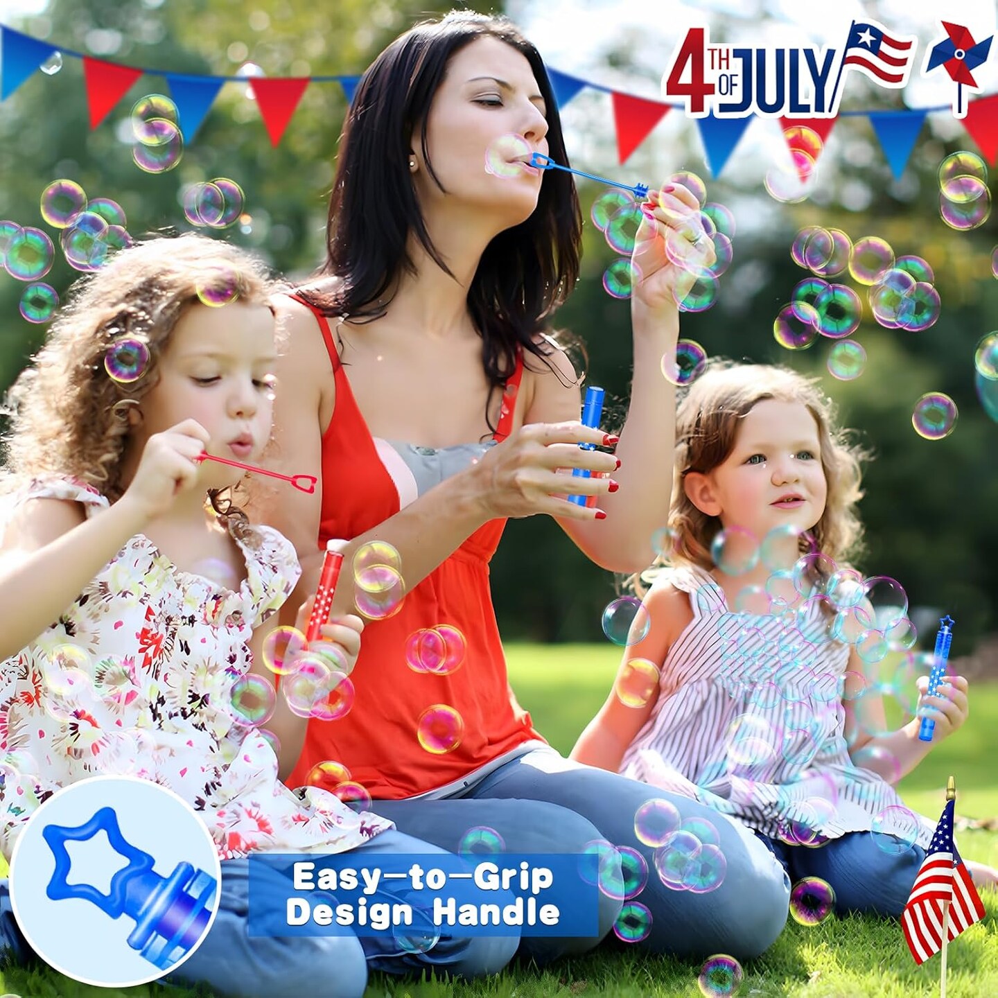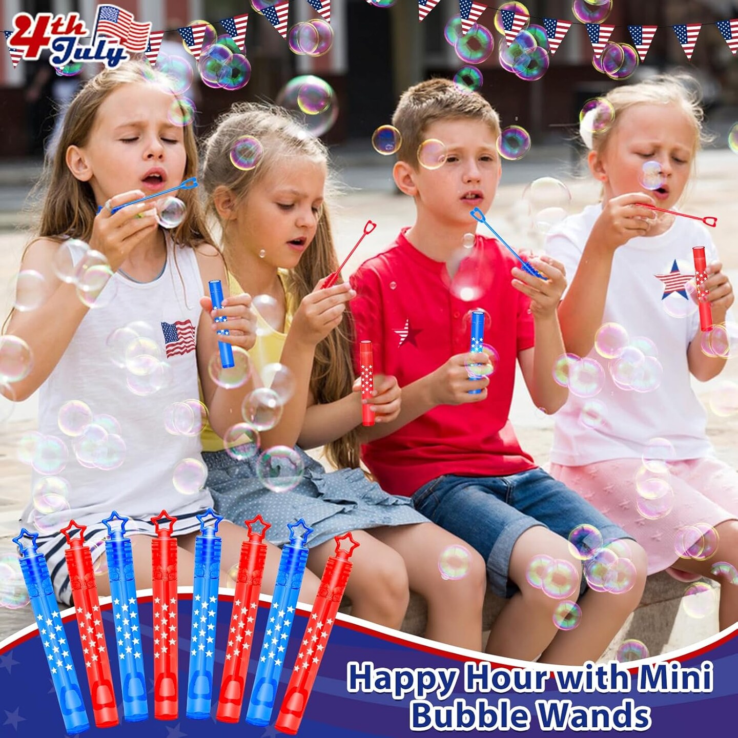 50 Pack 4th of July Party Favors Mini Bubble Wands, Patriotic Red White Blue Star Bubbles