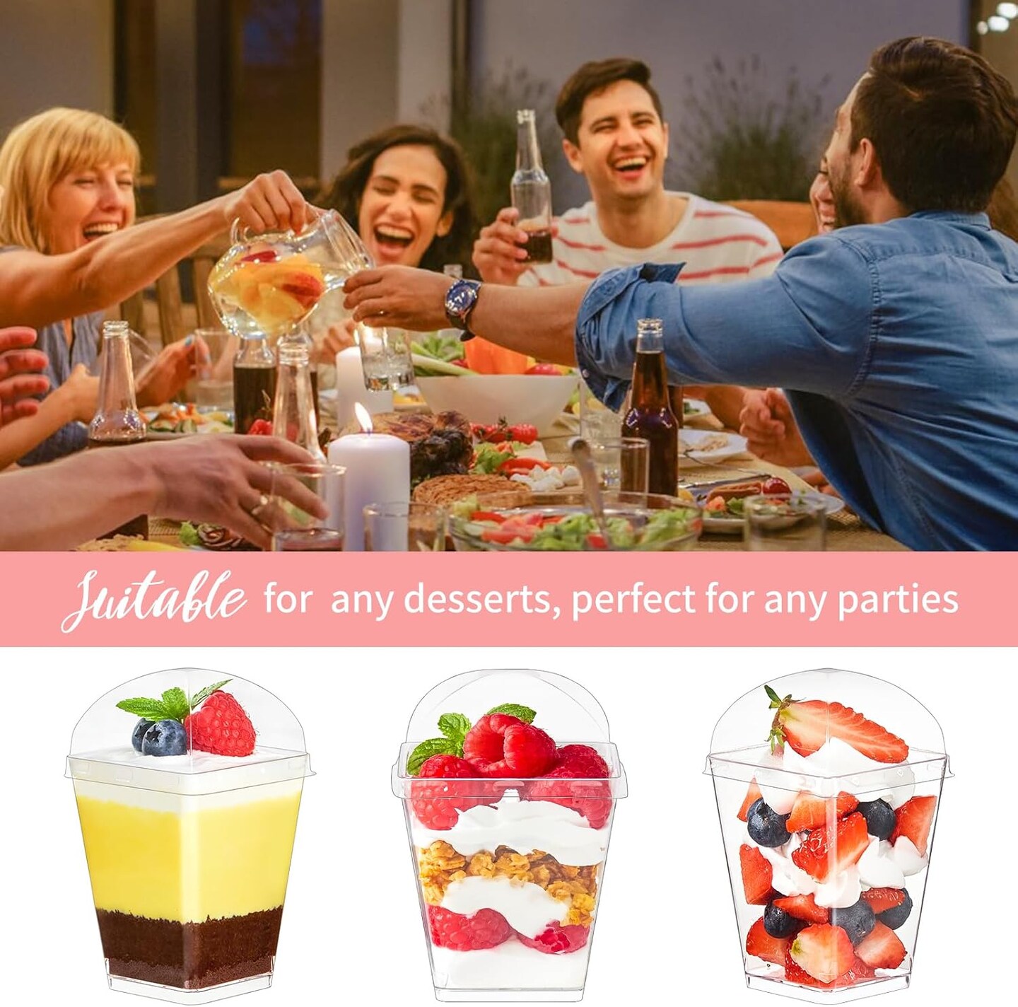 50 Pack 5 oz Dessert Cups with Lids and Spoons, Clear Plastic Parfait Appetizer Cups Dessert Shooters Party Serving Cups for Pudding Fruit Mousse and Yogurt