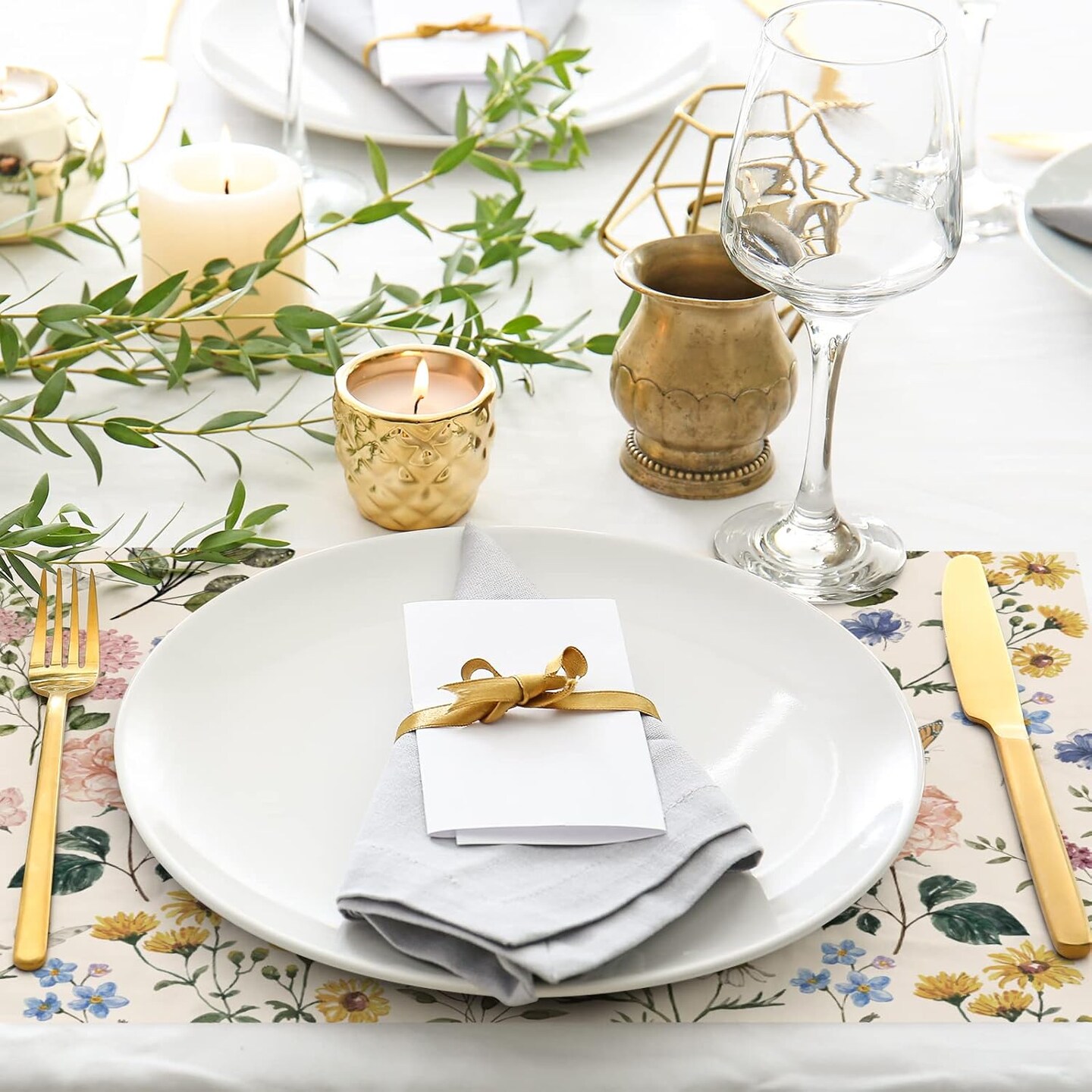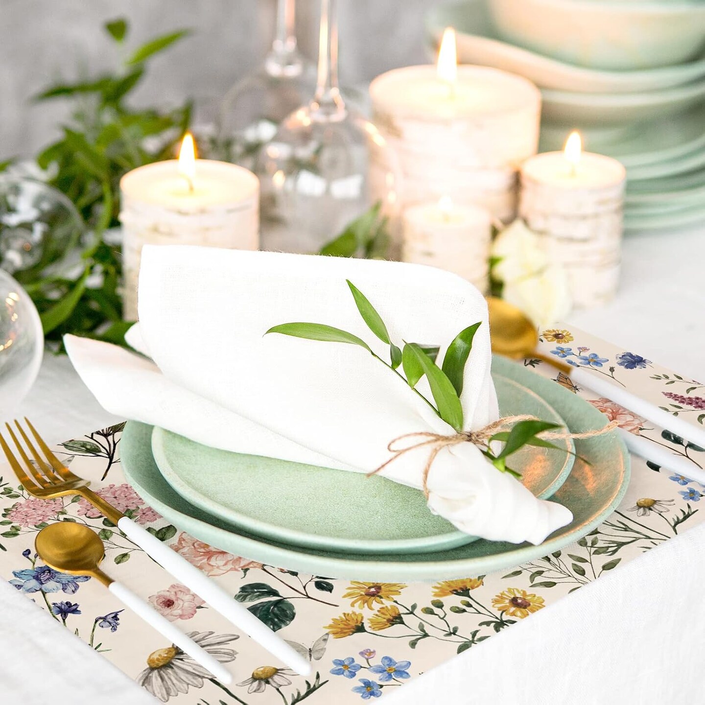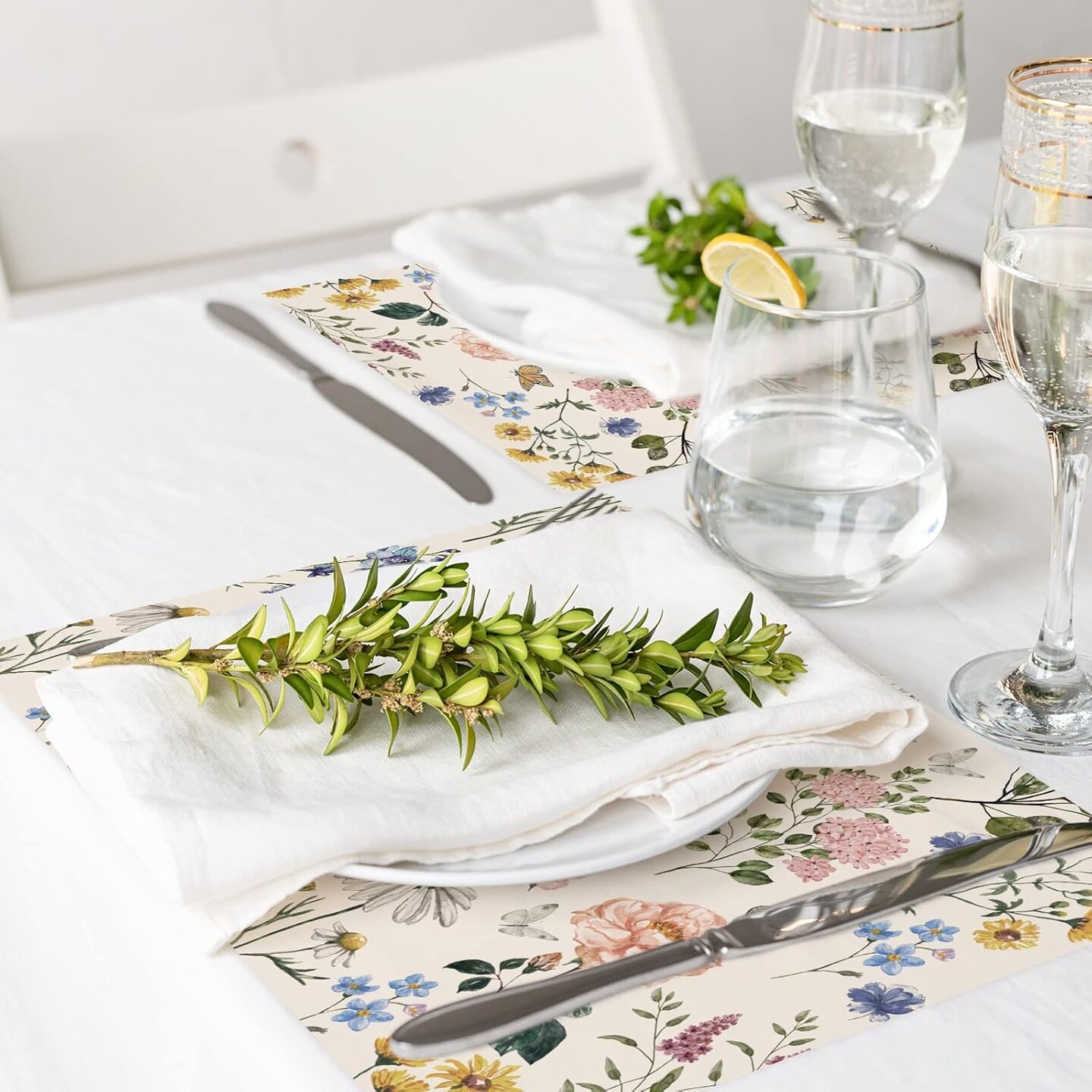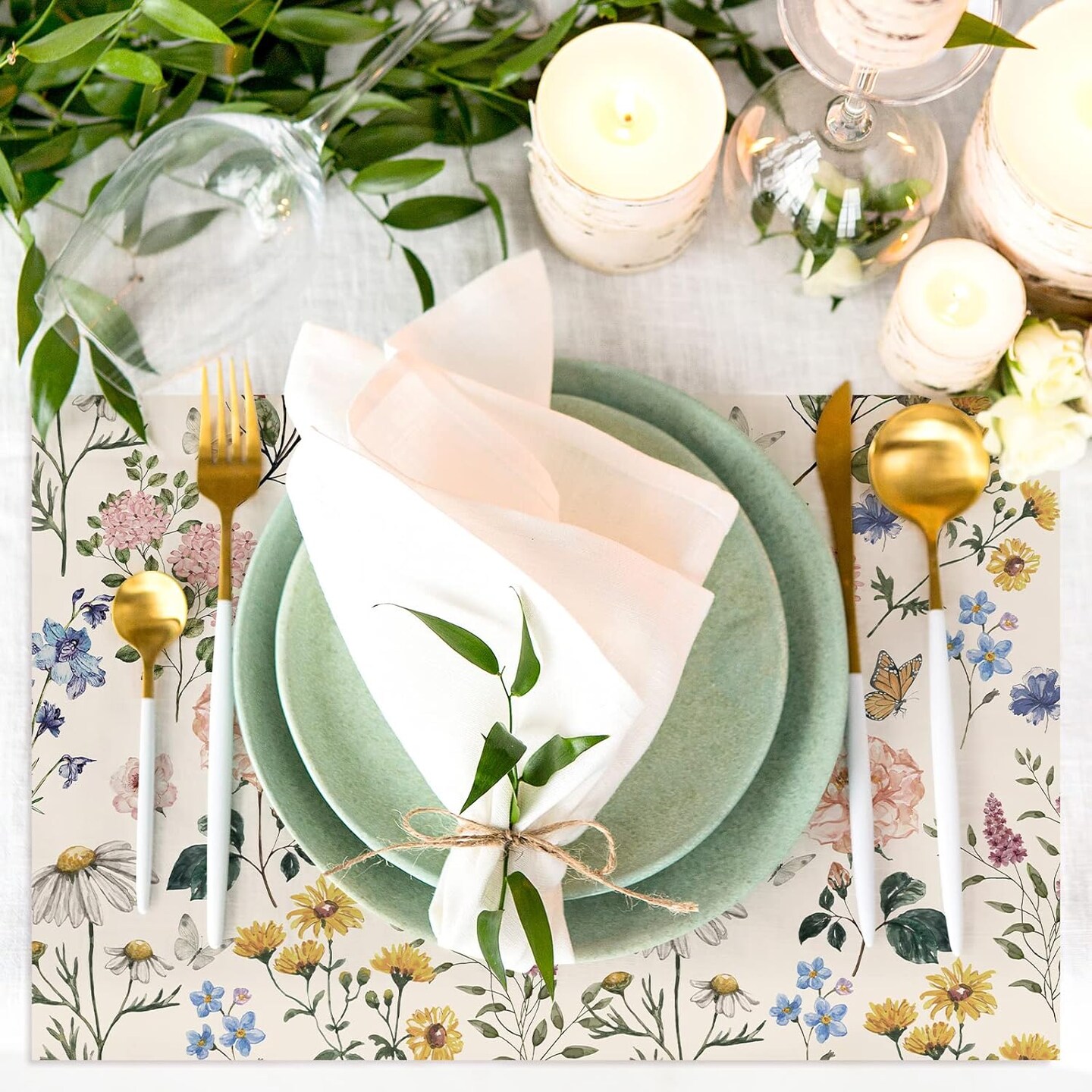 50 Pack Floral Paper Place Mats Disposable Vintage Wild Flower Placemat 11 x 17 Inch Flower Butterfly Decorative Paper Table Mats