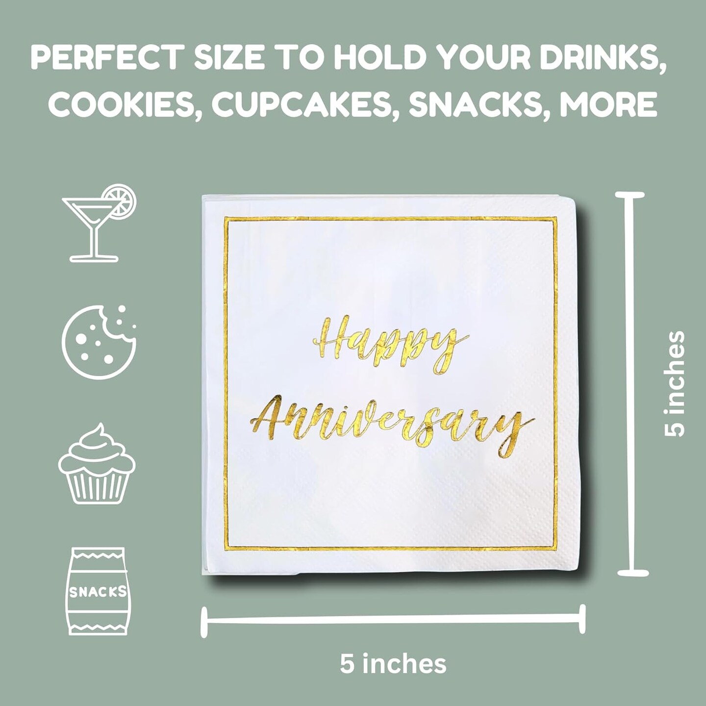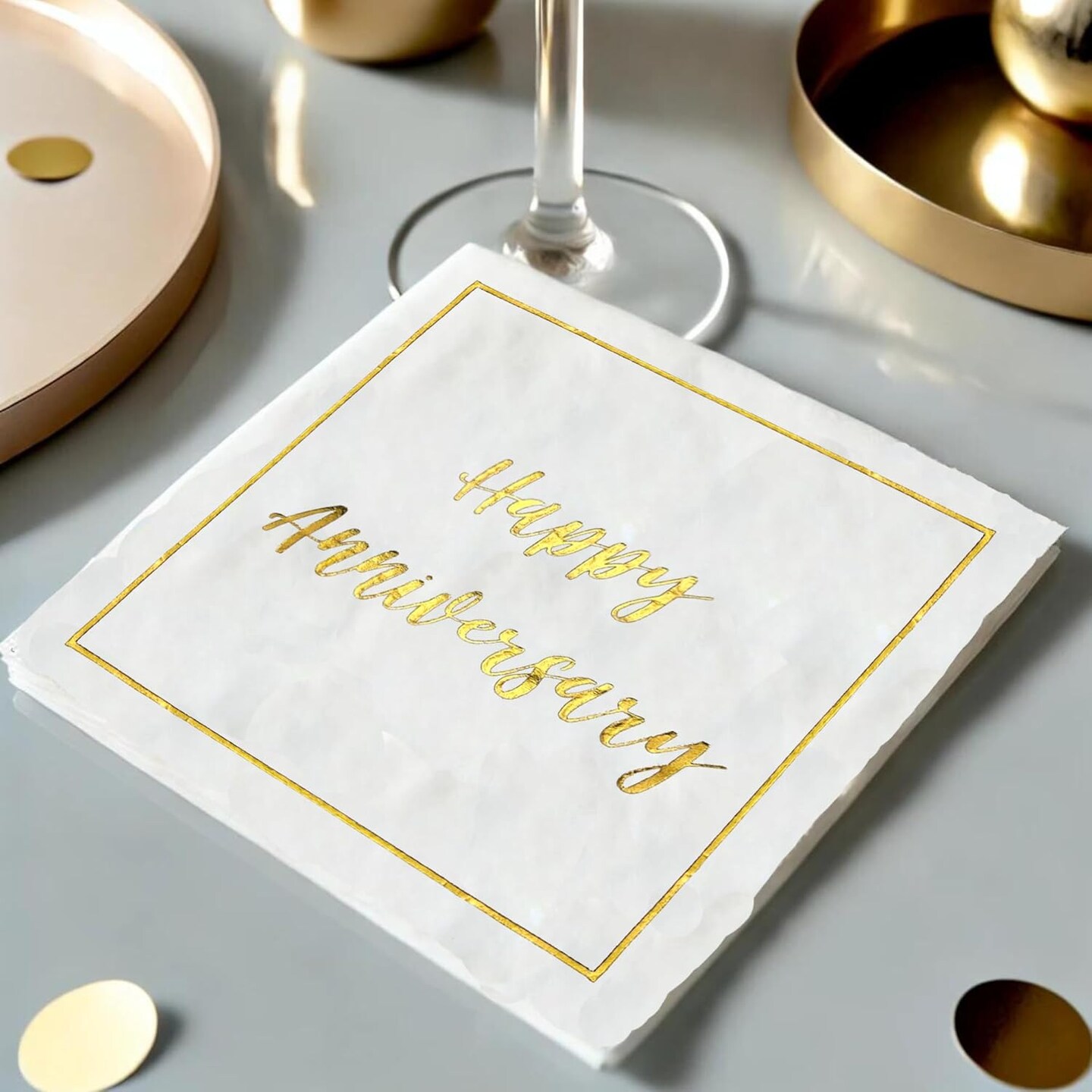 50 Pack Gold Foil Happy Anniversary Cocktail Napkins (Metallic Gold) 5" x 5"