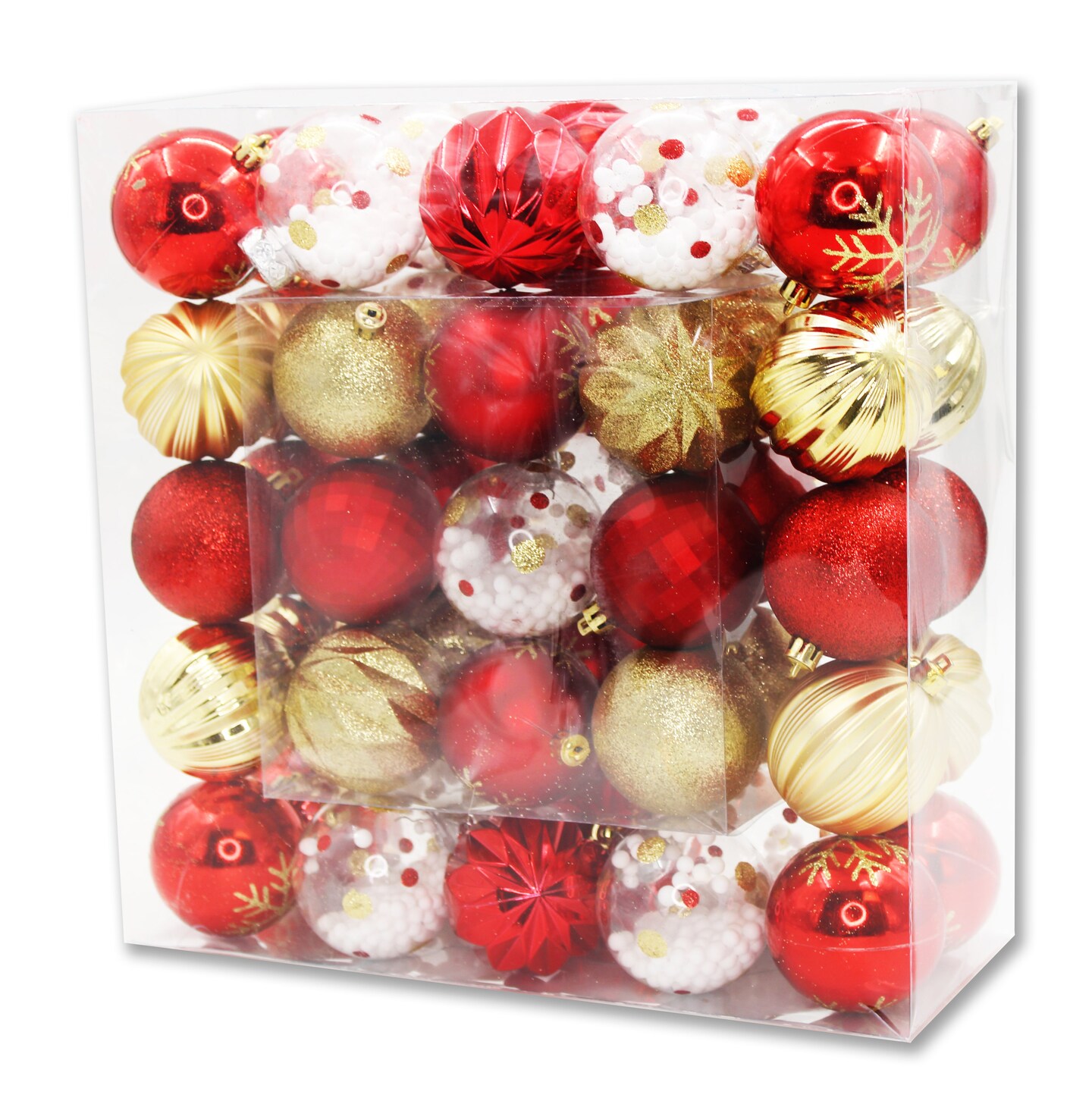 50 Pack Red, Gold and Clear Assorted Ball Ornaments
