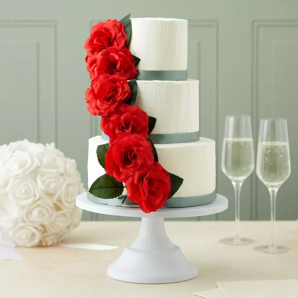 50 Pack Red Roses Artificial Flowers Bulk, 3" Stemless Fake Silk Roses