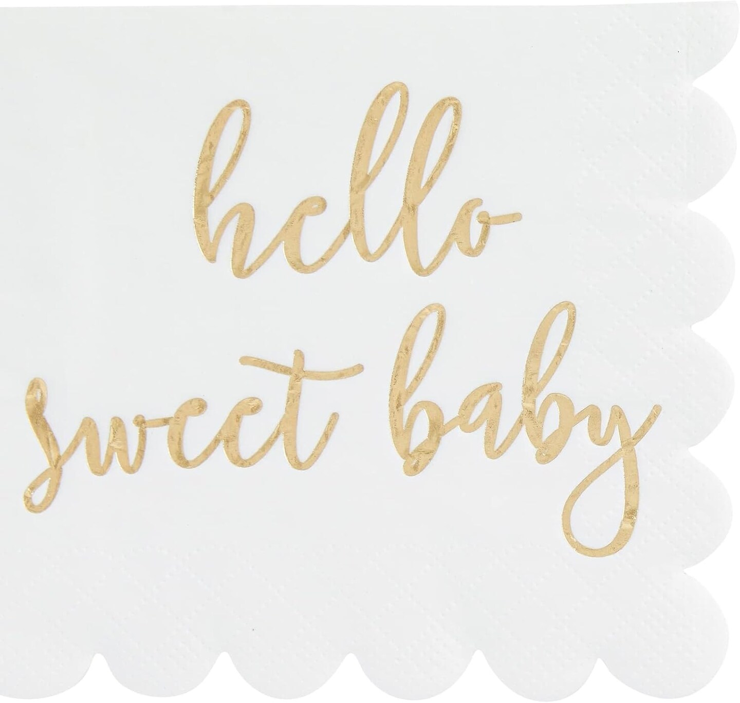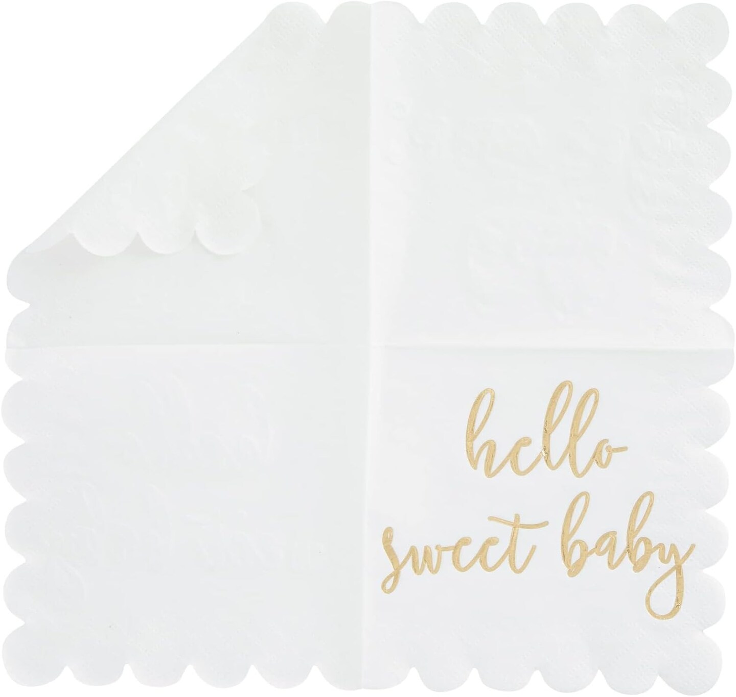 50 Pack White Scalloped Baby Shower Napkins for Girls and Boys, Gold Foil Hello Sweet Baby Decorations (5 x 5 In Scalloped Napkins)