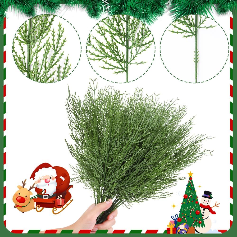 50 PCS Artificial Pine Branches Christmas Faux Pine Greenery Stems (Green1-50pcs) 5.51"D x 14.17"W x 2.36"H