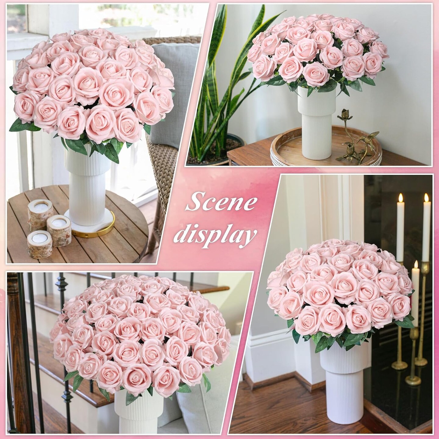 50 PCS Artificial Roses with Stems – Realistic Blush Silk Flowers for DIY Wedding Bouquets, Centerpieces, Baby Shower, Birthday & Home Decor