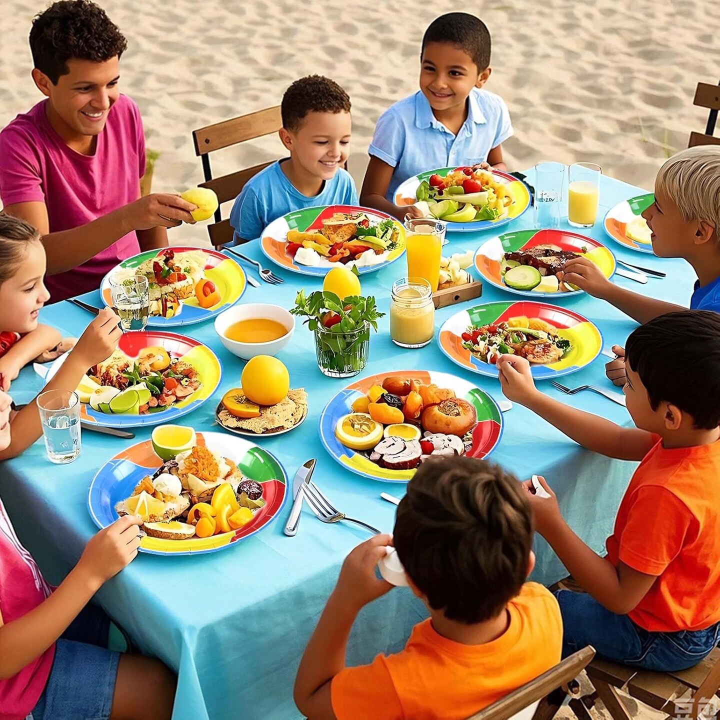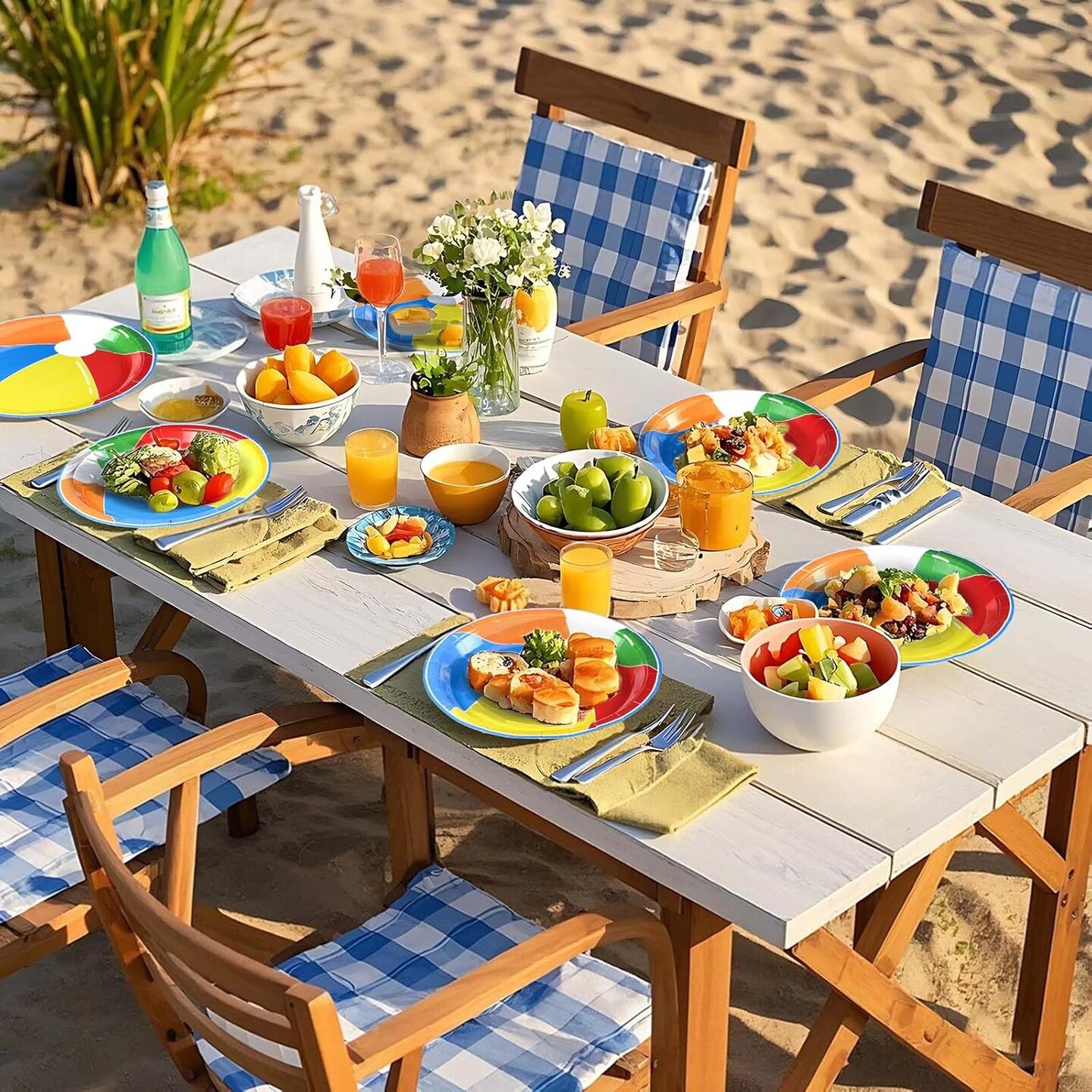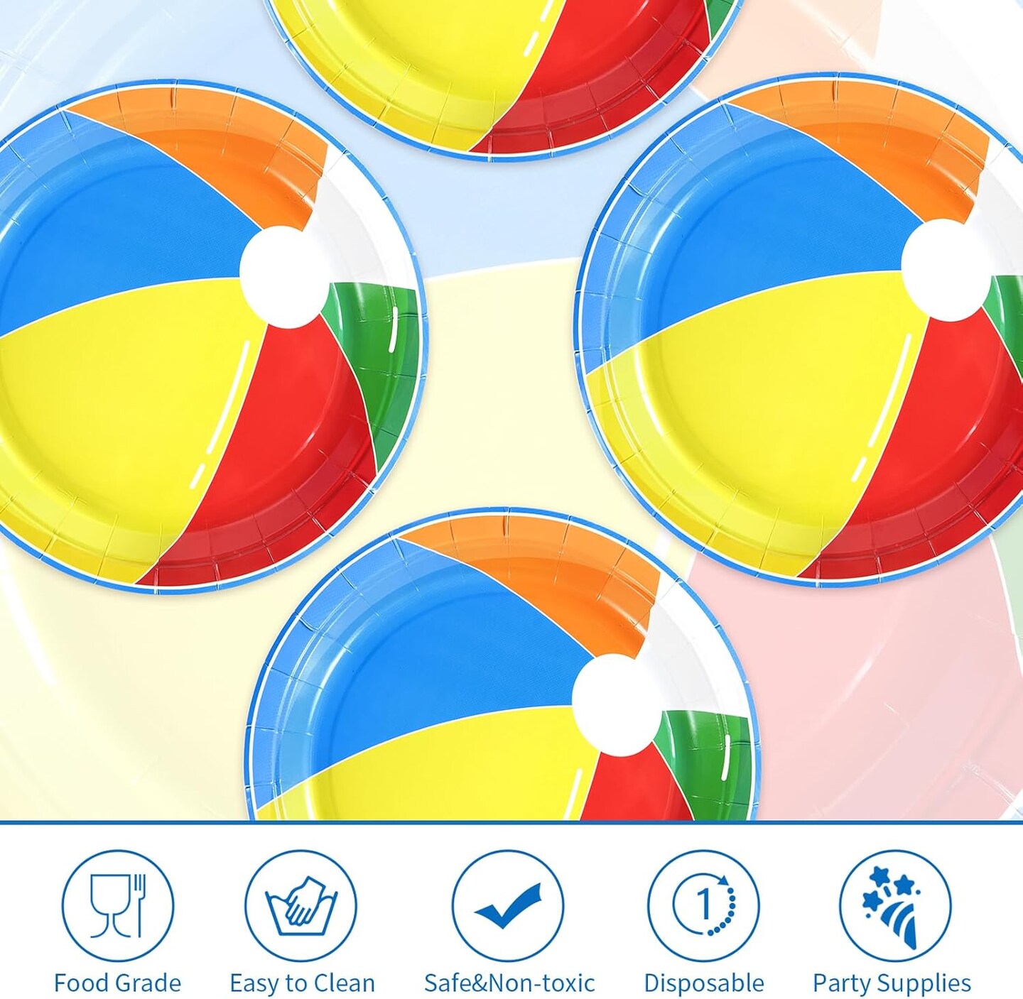 50 Pcs Beach Ball Paper Plates 10" Large Summer Pool Party Plates