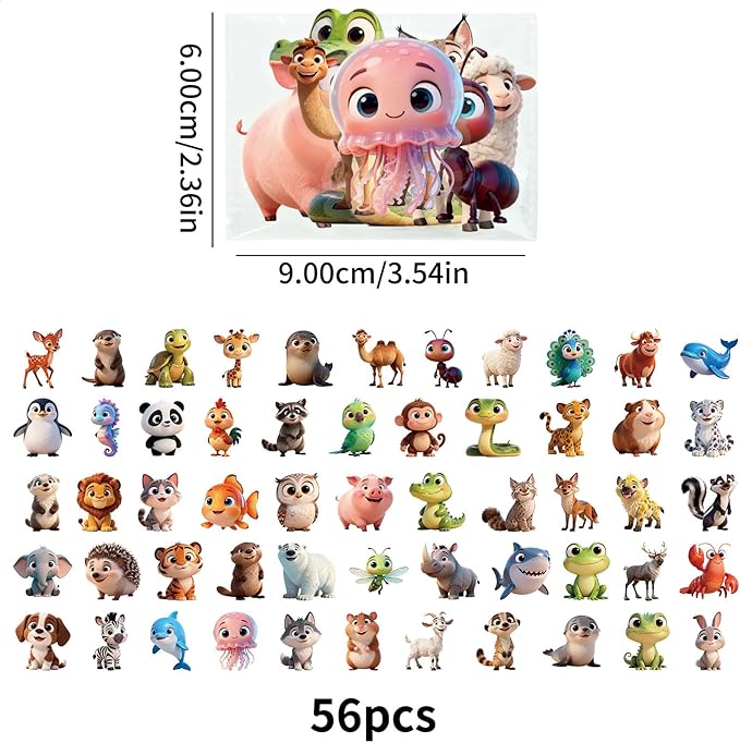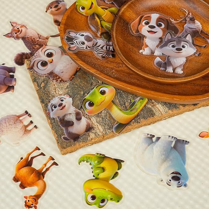 50 Pcs Cute Animal Transparent PET Stickers Pack, Waterproof Vinyl Nature Stickers for Scrapbook, Water Bottle, Laptop, Journaling & Party Favor Gifts