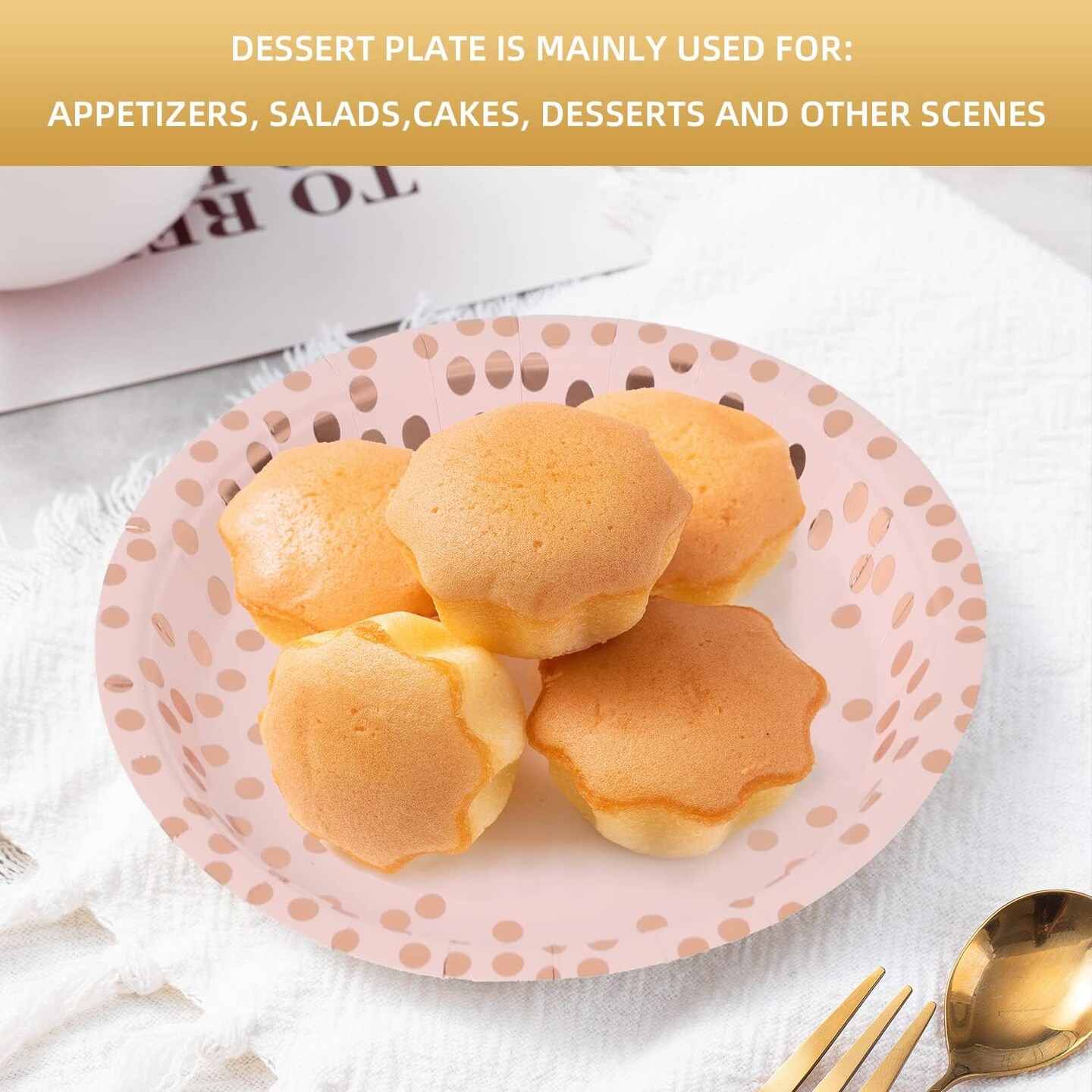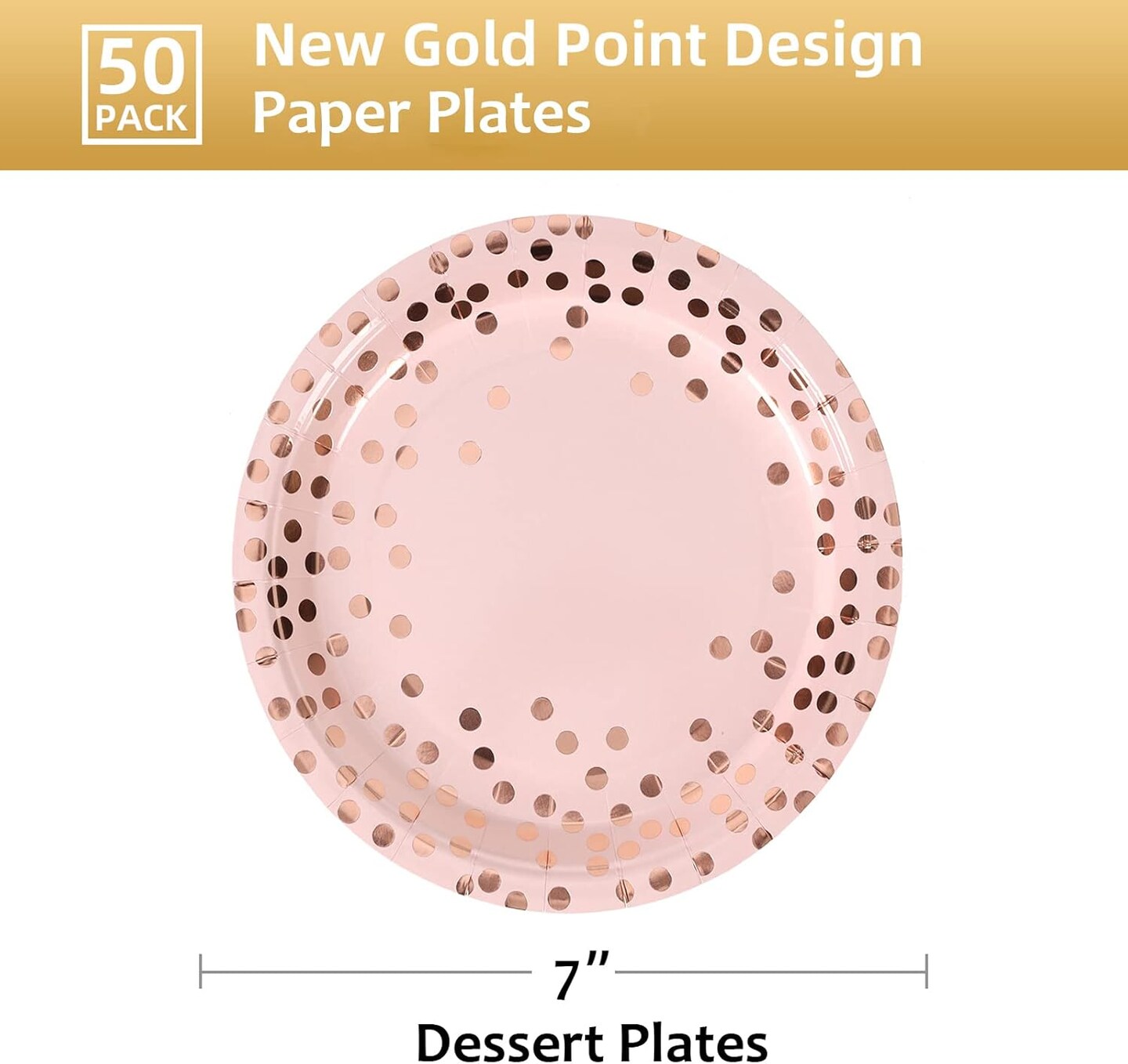 50 PCS Disposable Party Paper Plates - Pink & Rose Gold (7 inches)