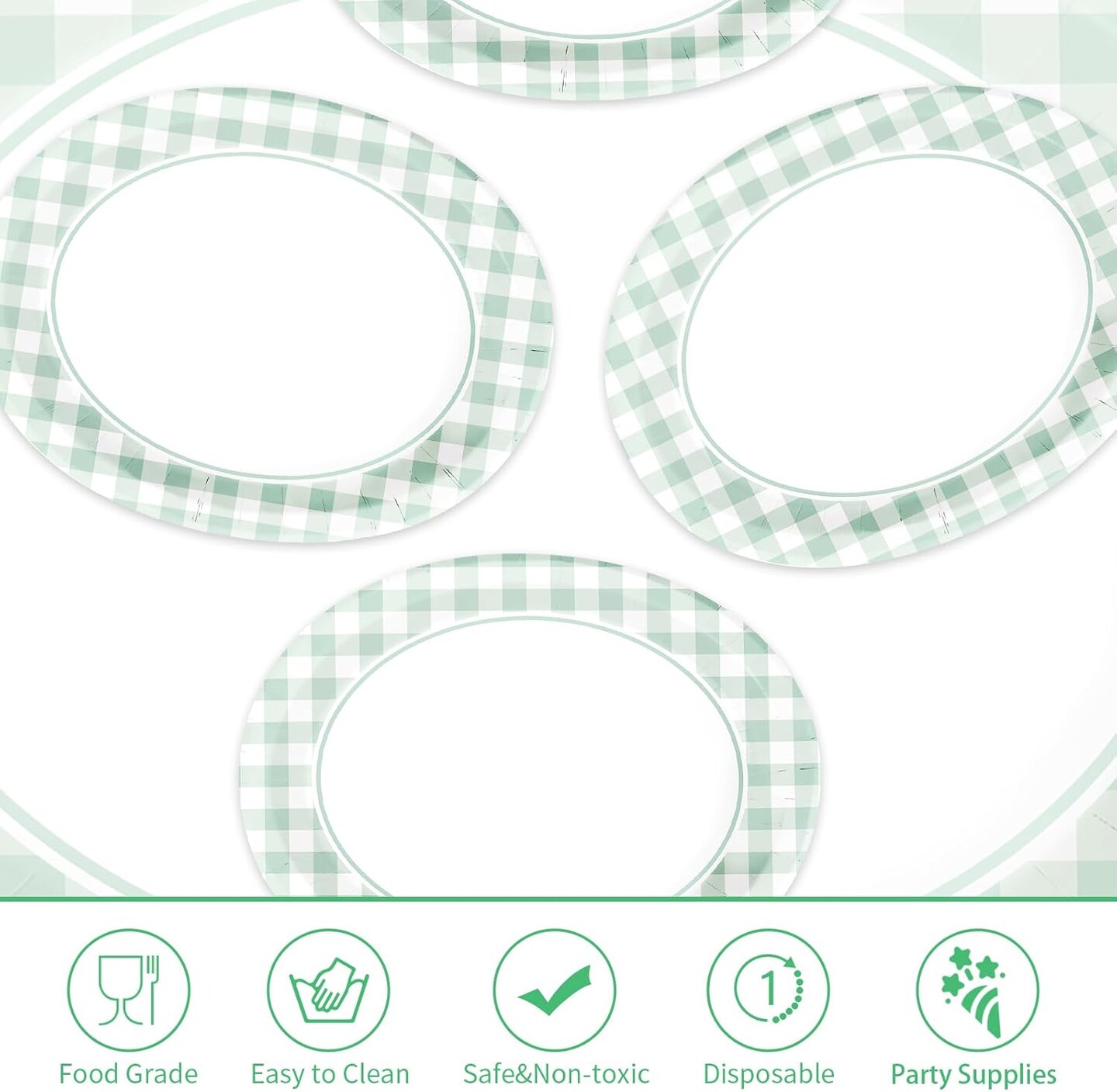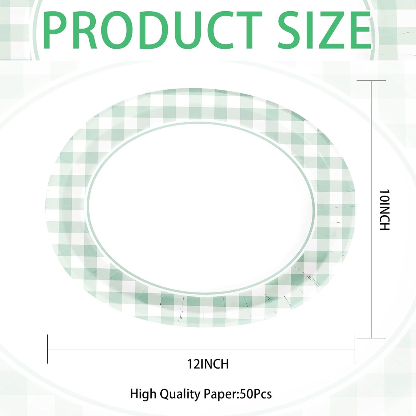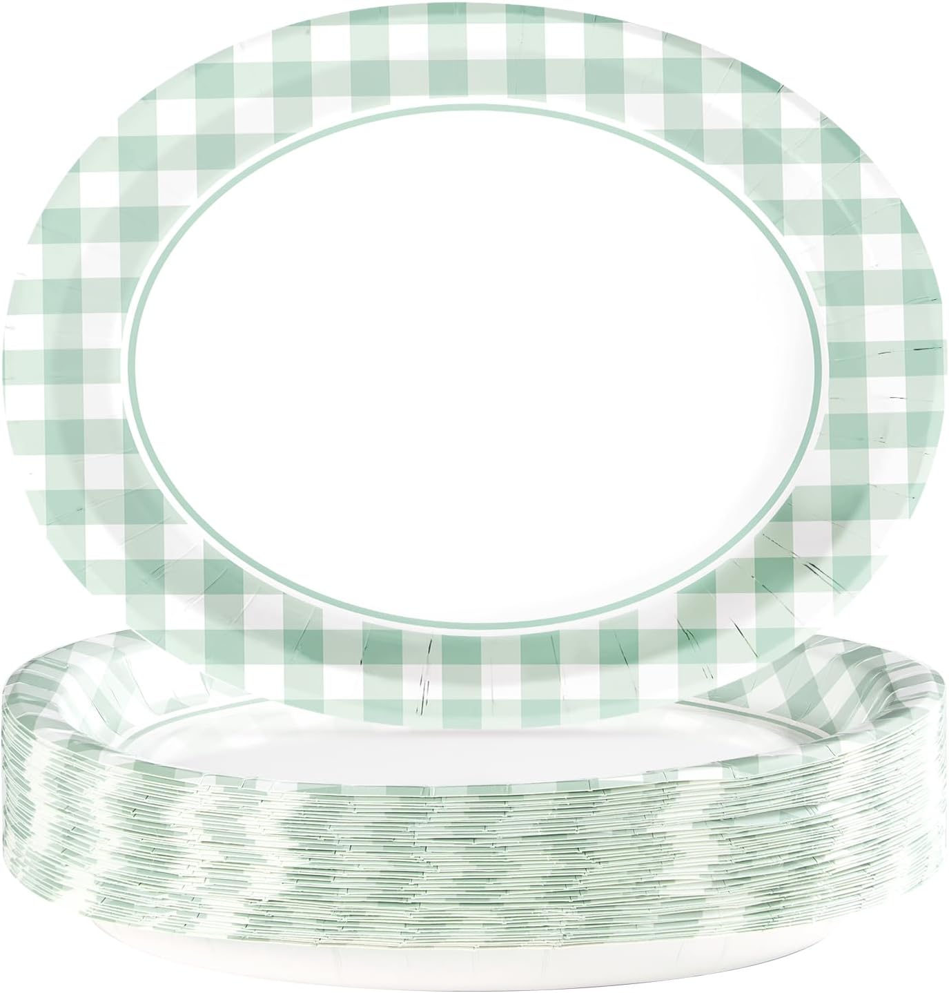 50 Pcs Gingham Party Supplies 10"x12" Large Sage Green (Green Gingham Oval Plates)