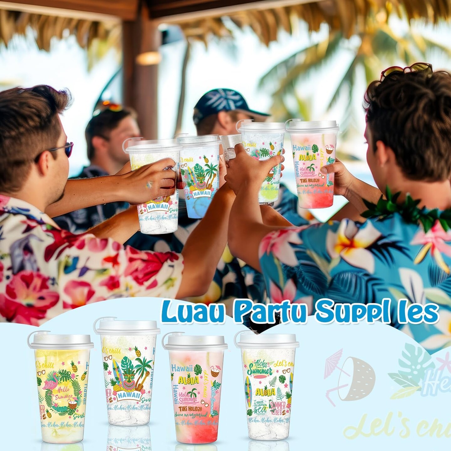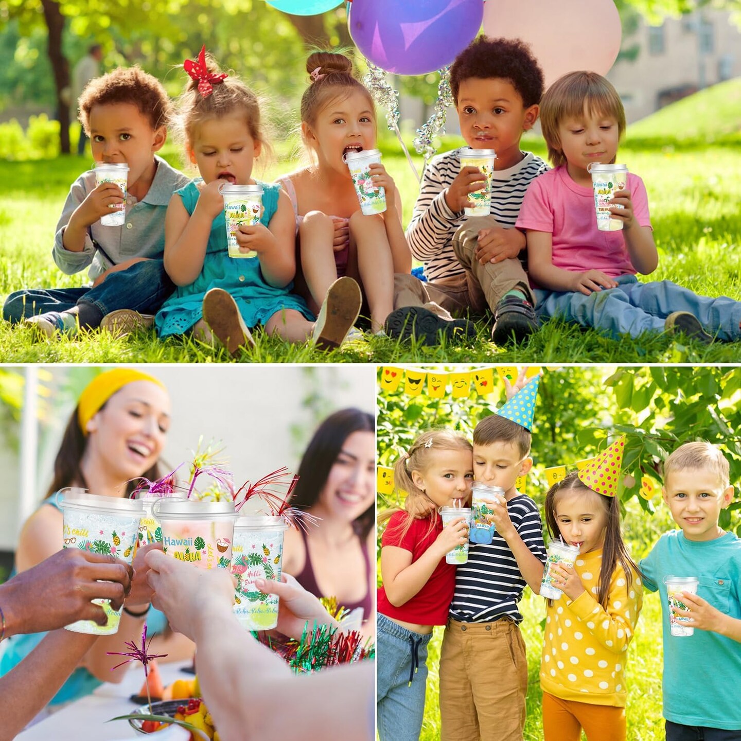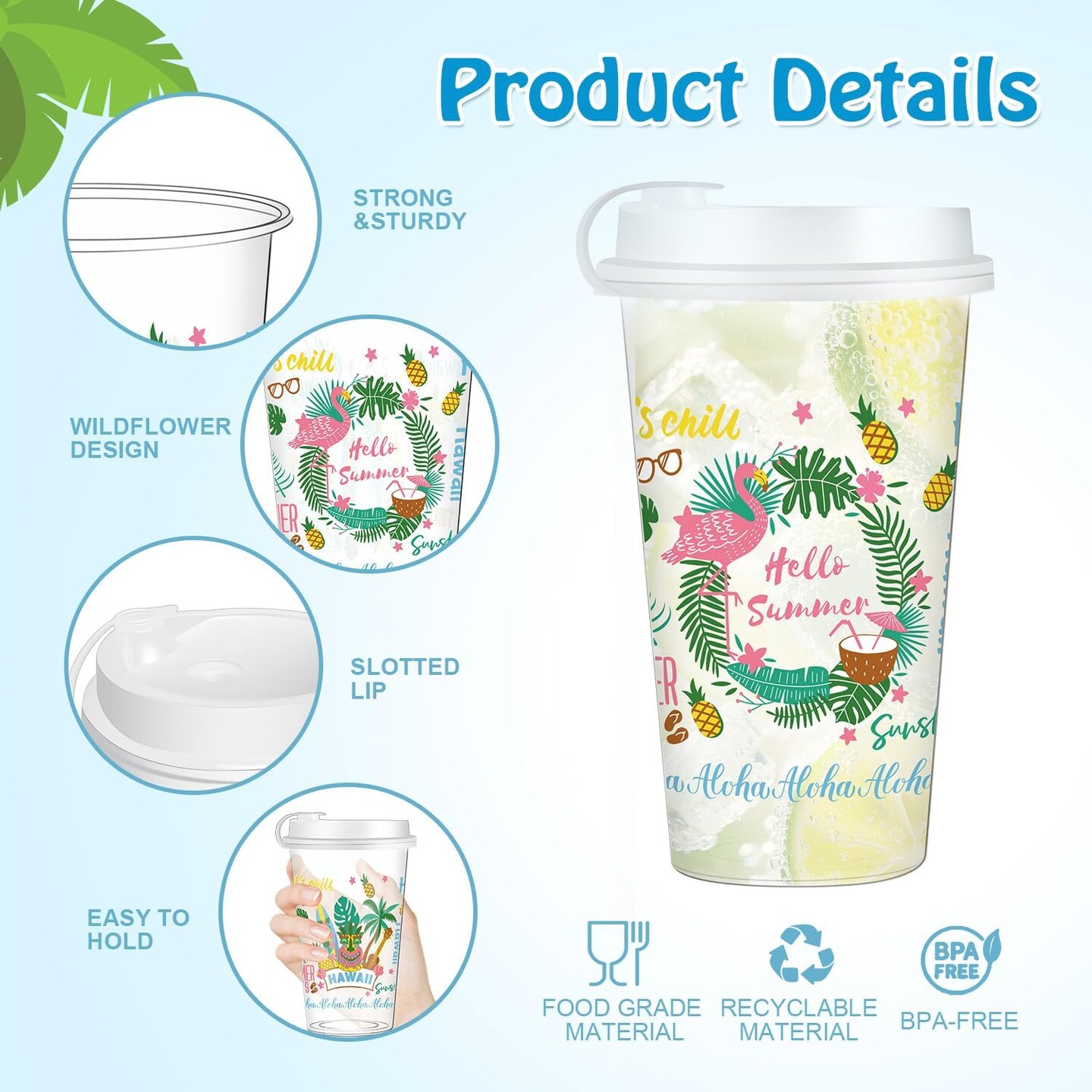 50 Pcs Hawaiian Luau Party Cups 16 oz Summer Disposable Plastic Cups with Lids, Tropical Floral Hibiscus Palm Tree Flamingo Tiki Drinking Cups for Hawaii Beach Pool Birthday Party Drinkware Supplies