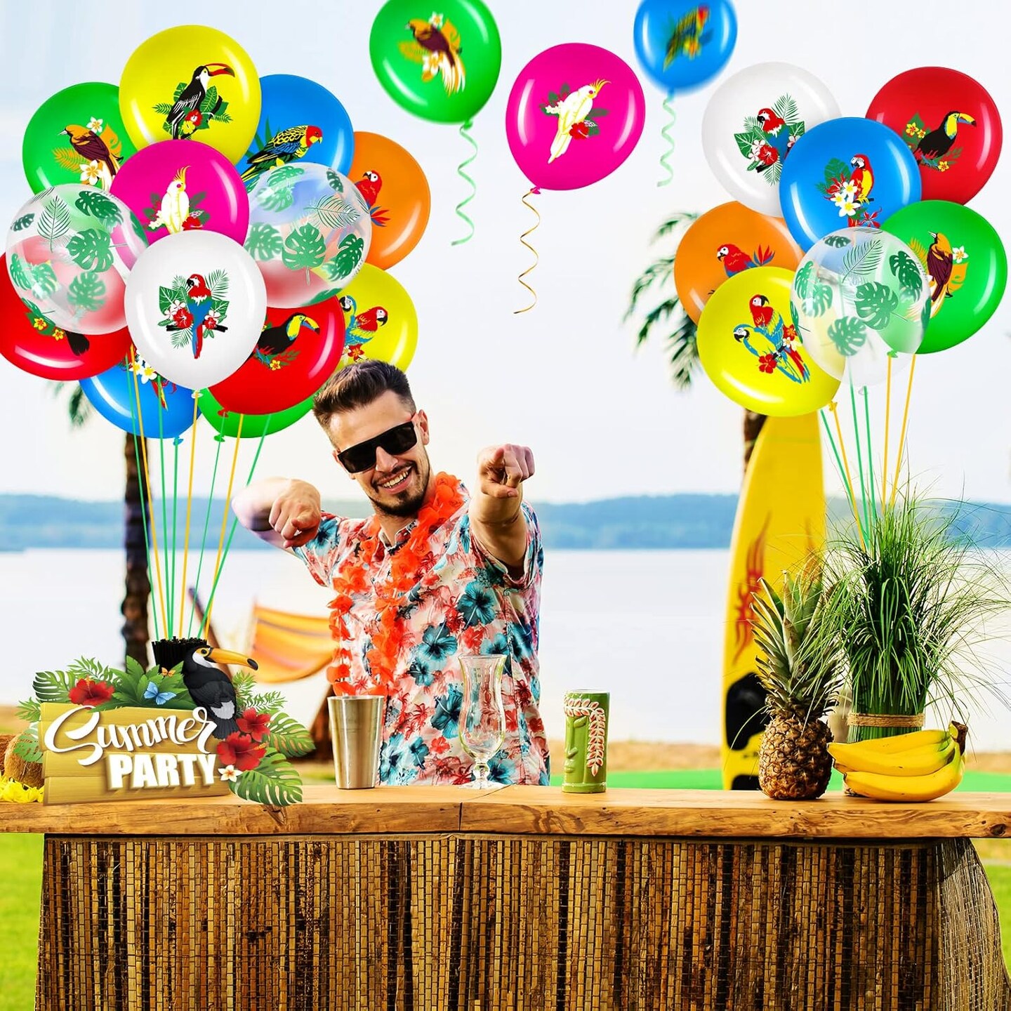 50 Pcs Hawaiian Party Balloon Decorations, Aloha Tropical Luau Latex Balloons