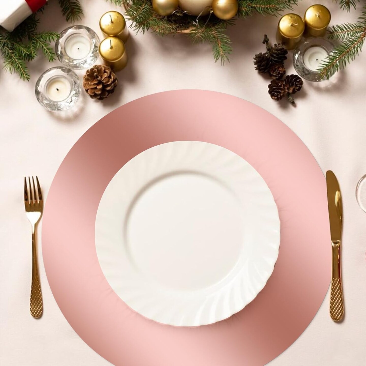 50 Pcs Round Rose Gold Placemats,13.3" Mirror Foil Decorative Place Mats Mirrored Disposable Paper Placemats