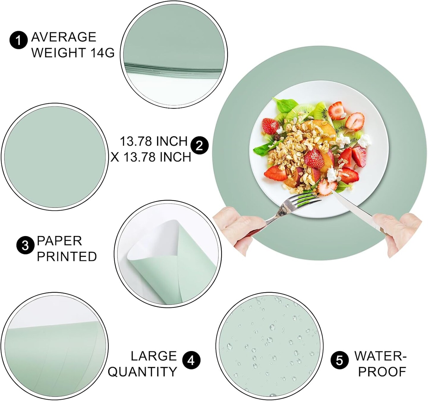 50 Pcs Sage Geen Disposable Paper Placemats Sage Round Paper Table Mats Green Paper Doilies Decorative Placemats Bulk Paper Charger for Wedding Banquet Party Dining Table Decor